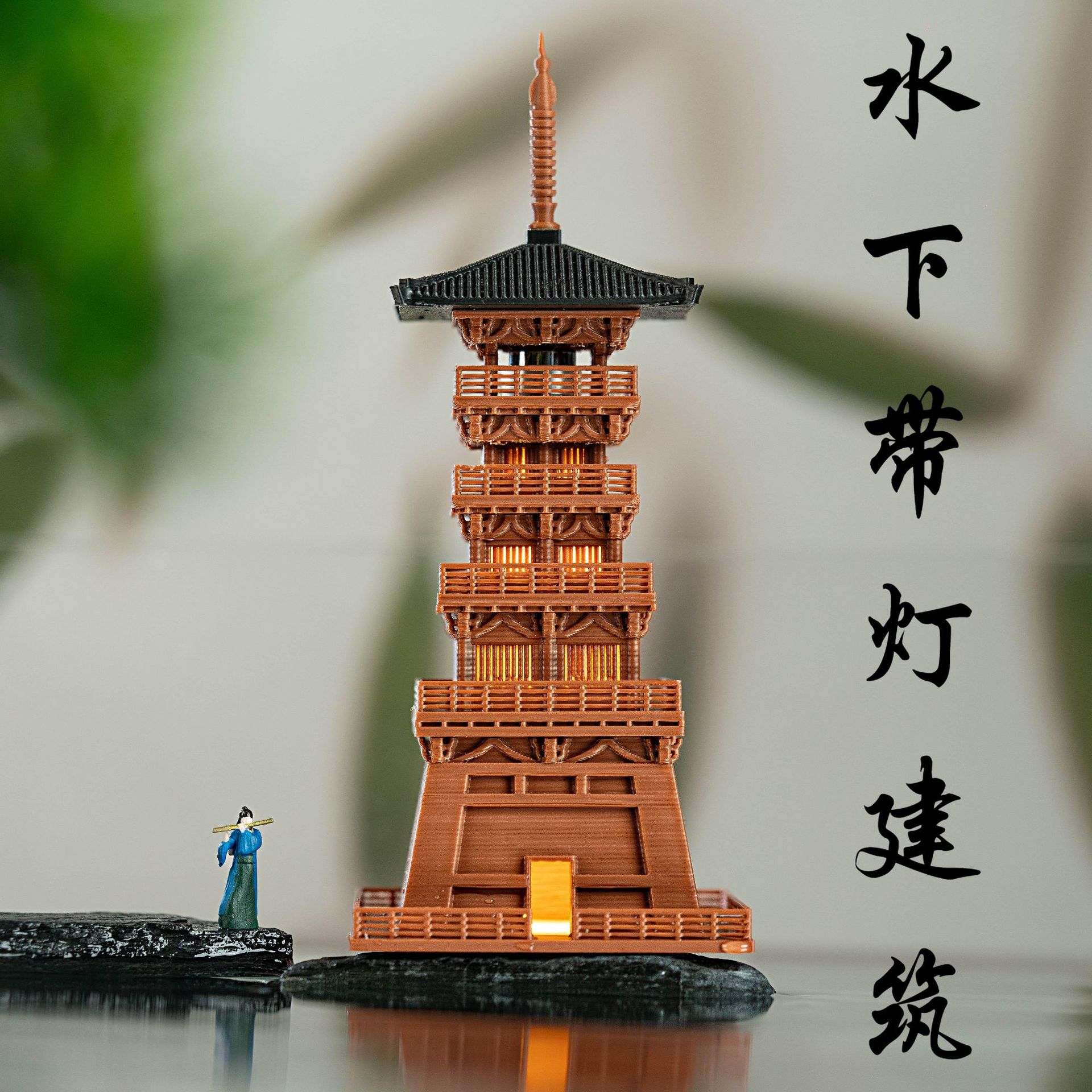 탑 조경 미니어처 수륙양용 어항 장식품 3D 프린팅 건축 모델 조립식 분재 야경 레이펑탑