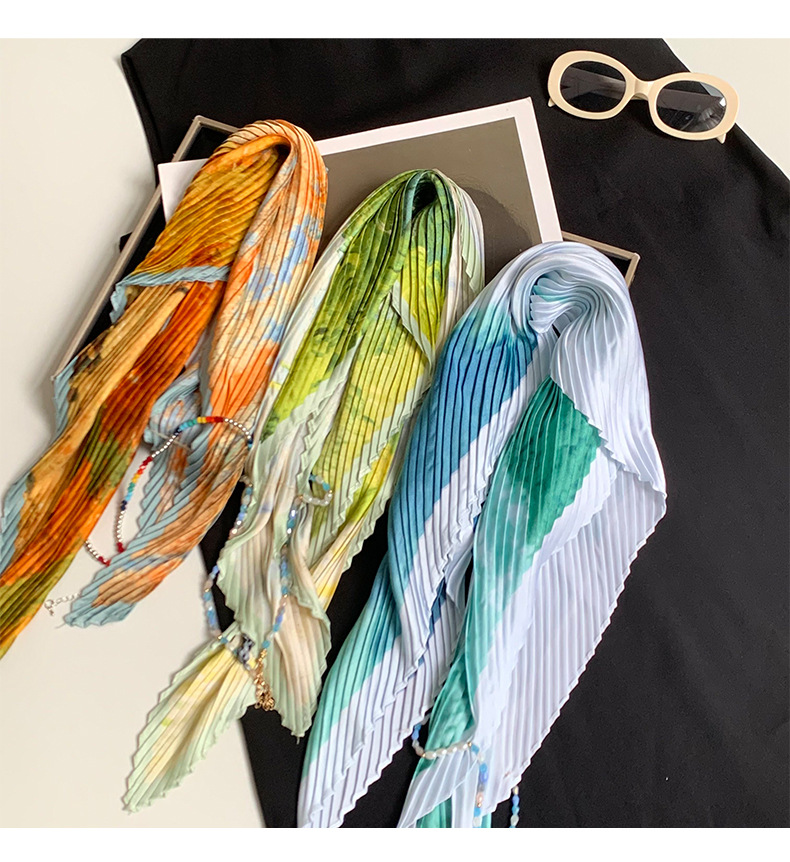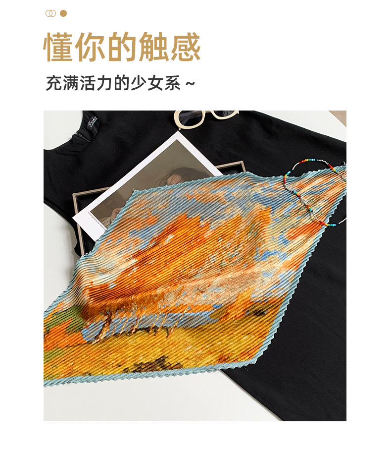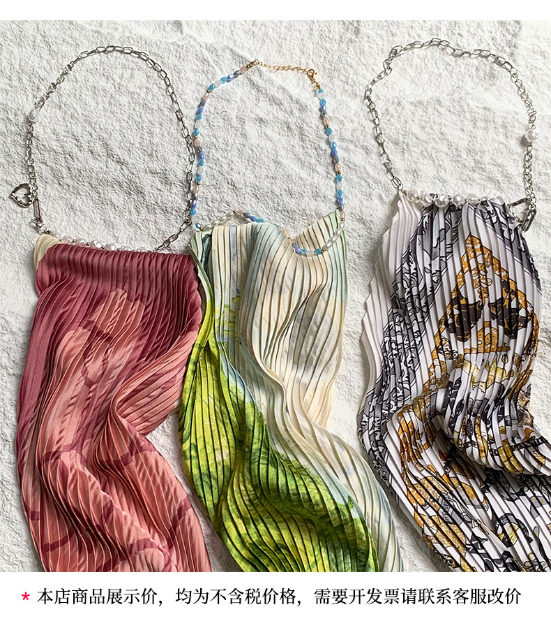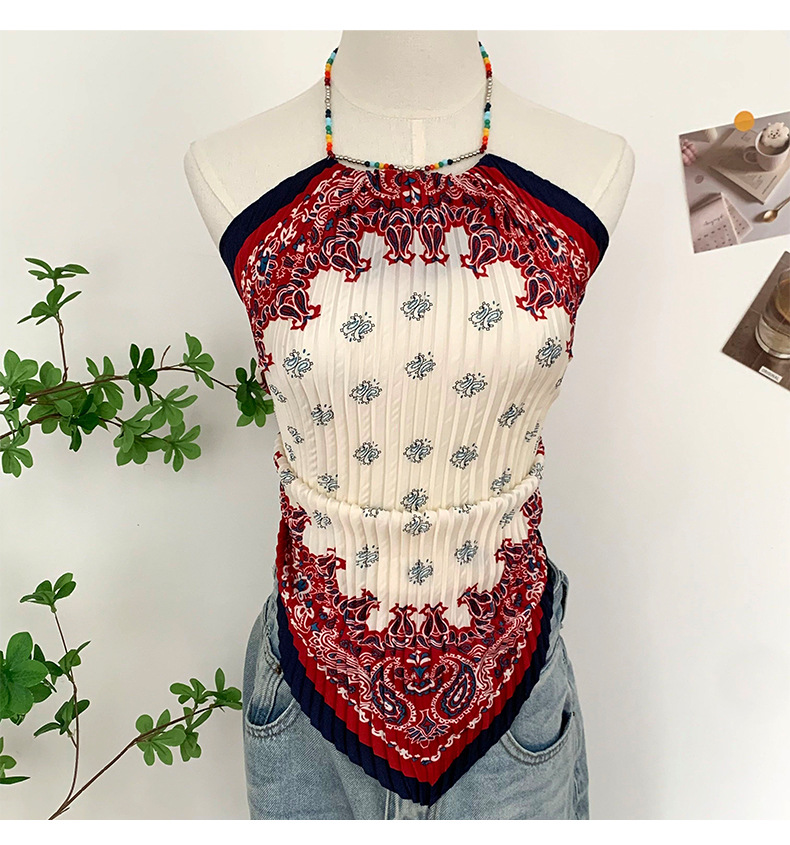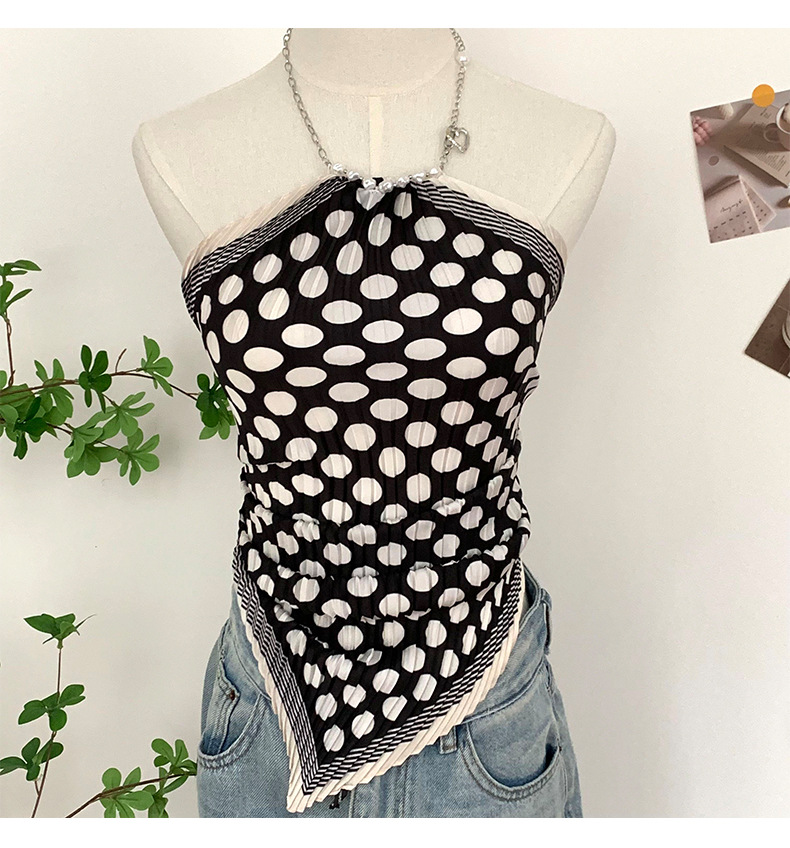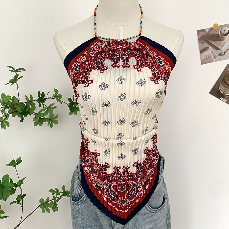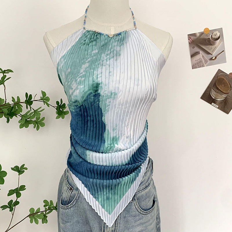 주름 실크 스카프, 고급 여름 의상, 유화 짧은 조끼, 여성 틈새 디자인, 튜브탑, 홀터넥, 작은 멜빵스토어 가기