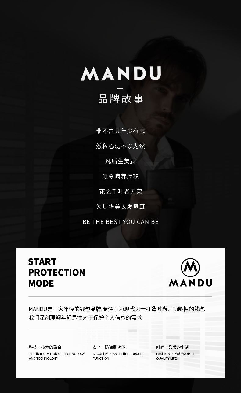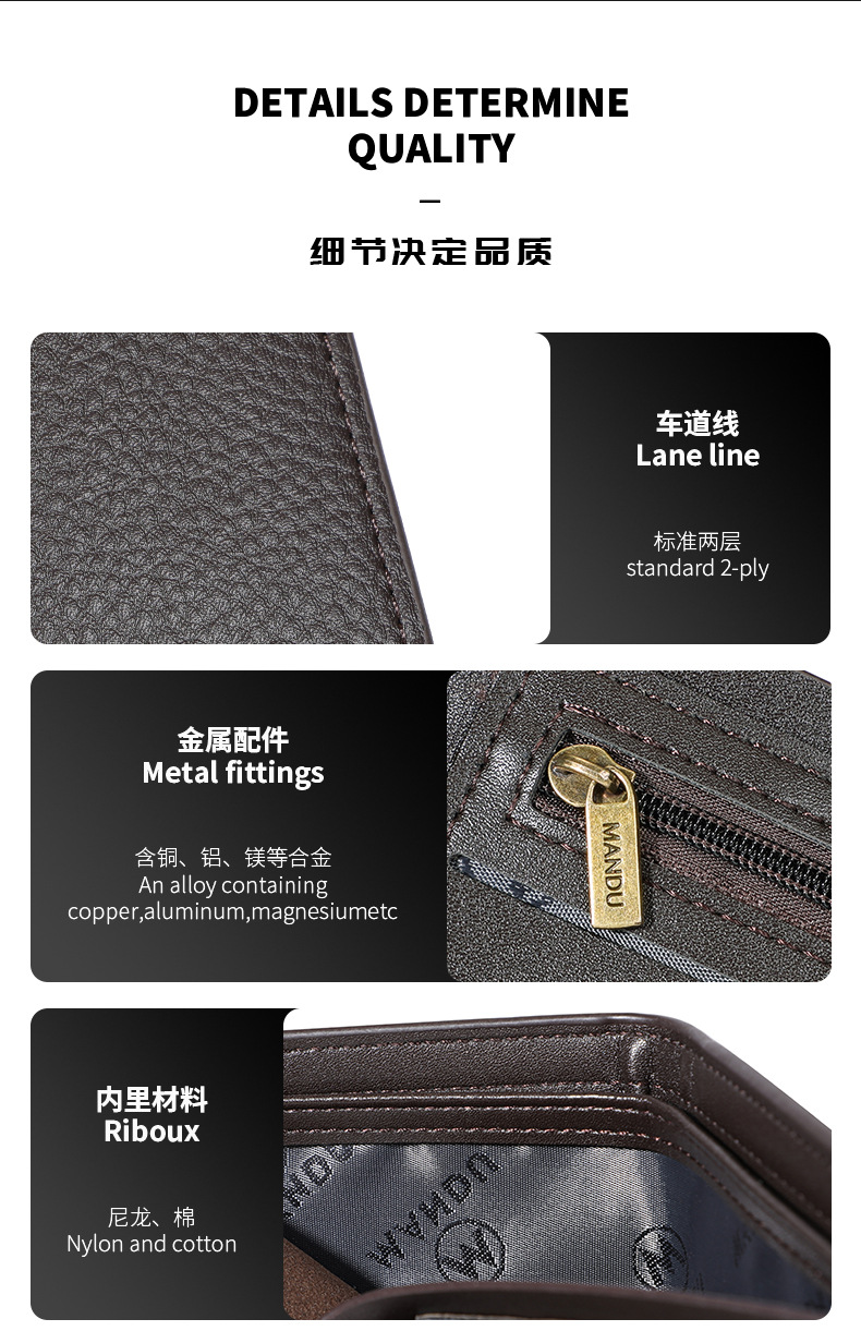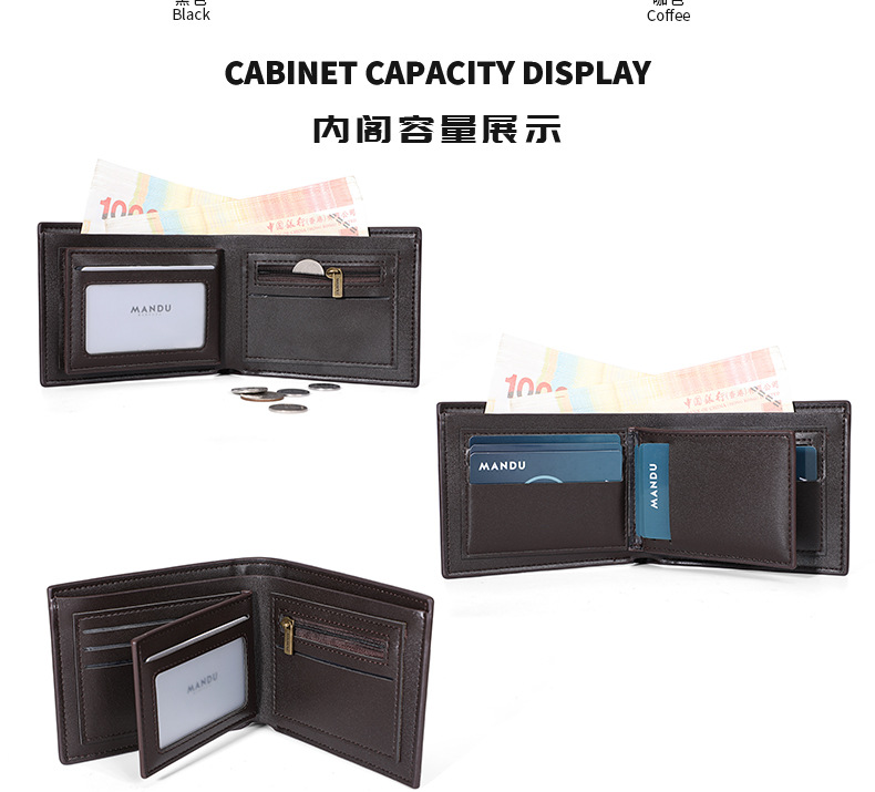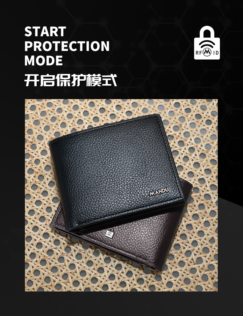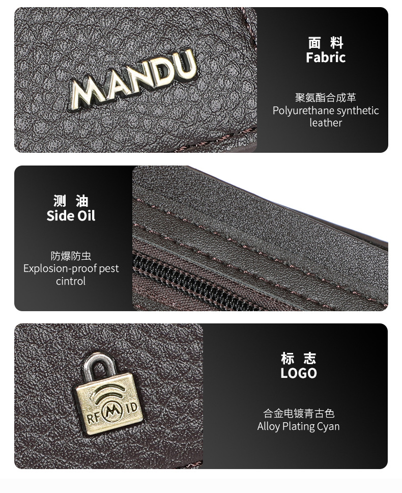 MANDU 크로스보더 클래식 남성 지갑 숏 스타일 도난방지 PU 리치 패턴 다기능 지갑 남성용 동전 지갑