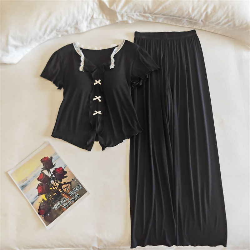 • 33052.3#Yujie 퓨어 블랙 (고정 가슴 패드 포함) 반팔 + 바지