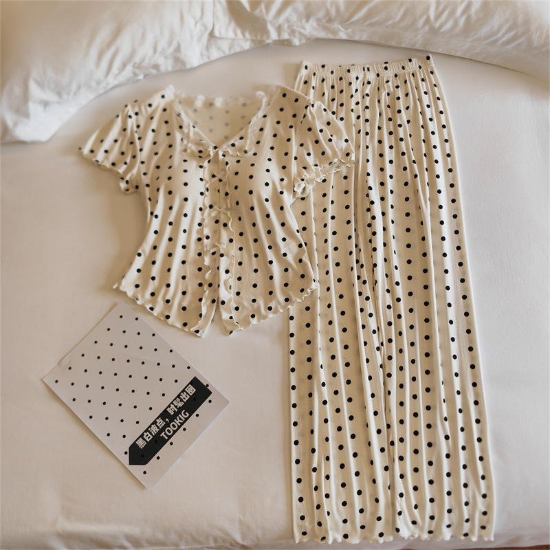 • 33052.3#폴카 도트 밀키 화이트(고정 가슴 패드 포함) 반팔 + 바지