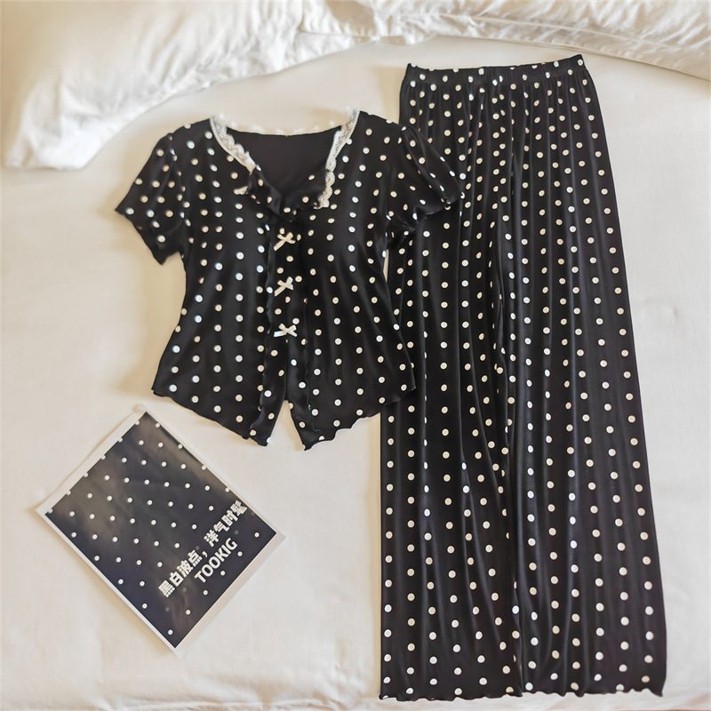 • 33052.3#폴카 도트 레트로 블랙(고정 가슴 패드 포함) 반팔 + 바지