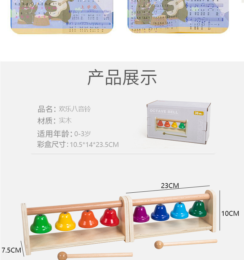 Orff 어린이 타악기 컬러 벨 멜로디 벨 8 음 클릭 벨 벨 회전 벨 딸랑이 수업 벨 장난감스토어 가기