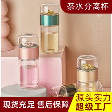 茶水分离玻璃杯双层加厚耐热便携水杯夏季网红高颜值女学生泡茶杯