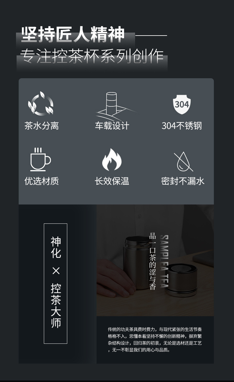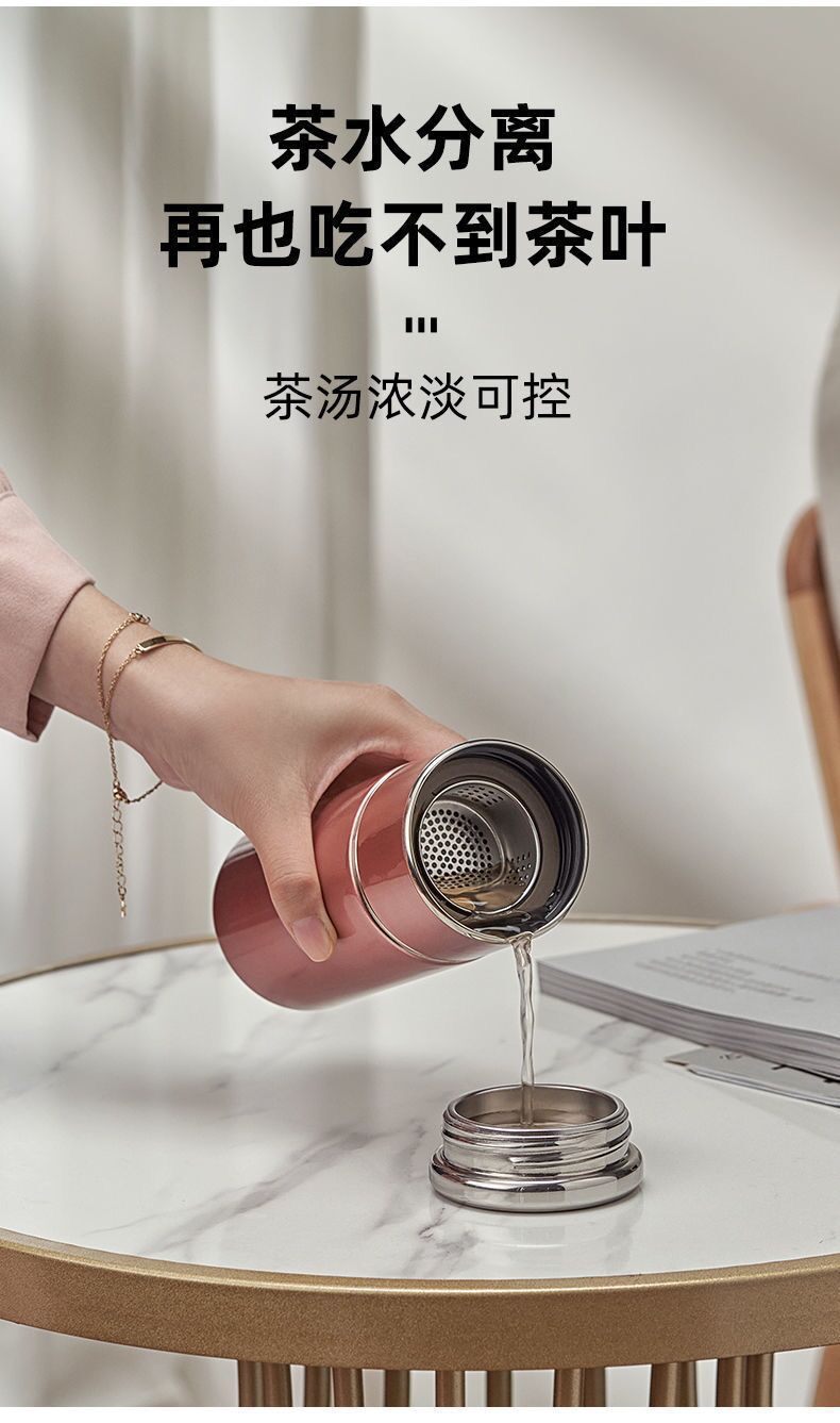 新款茶水分离保温杯 男士316不锈钢水杯便携式茶杯旅行车载泡茶杯
