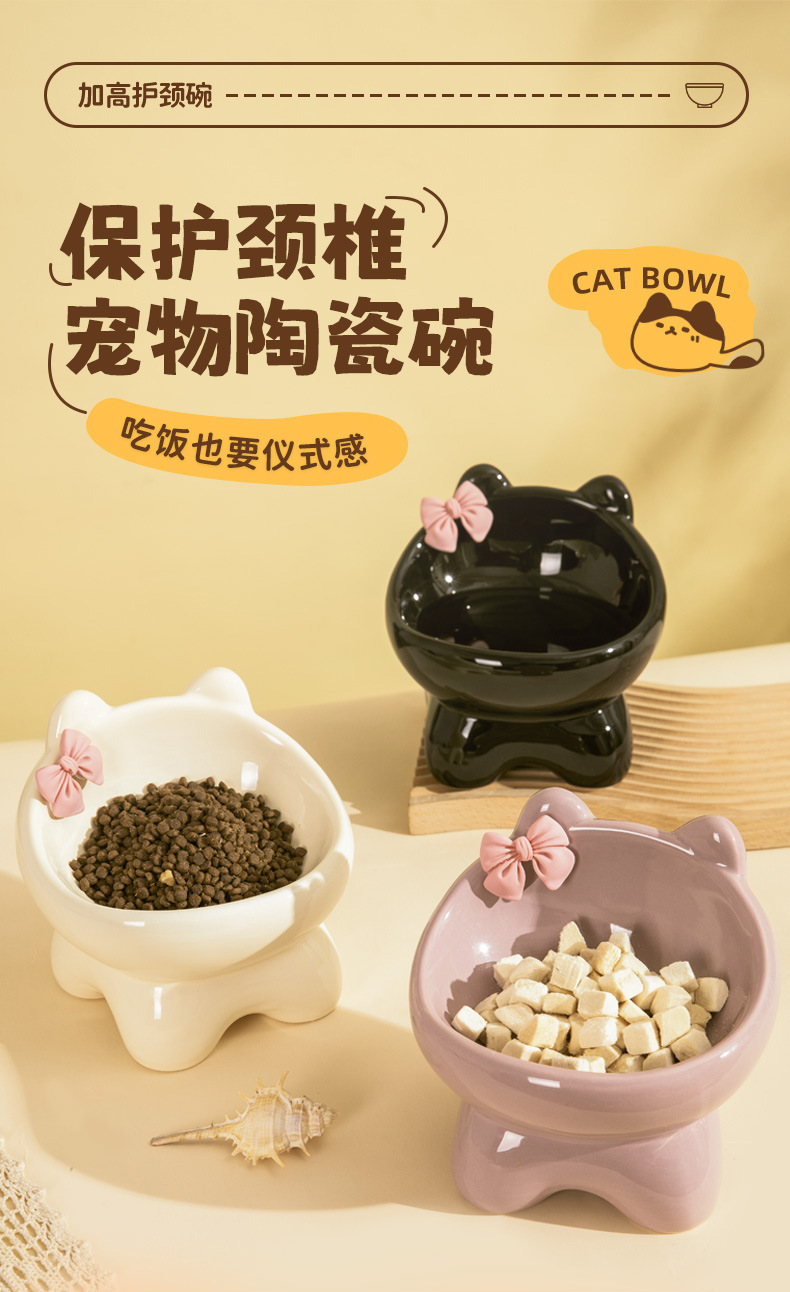 고양이 세라믹 그릇, 귀여운 나비 매듭, 키가 큰 애완 동물 그릇, 먹고 마시는 목 보호 고양이 그릇, 개 그릇, 맞춤형 가공스토어 가기