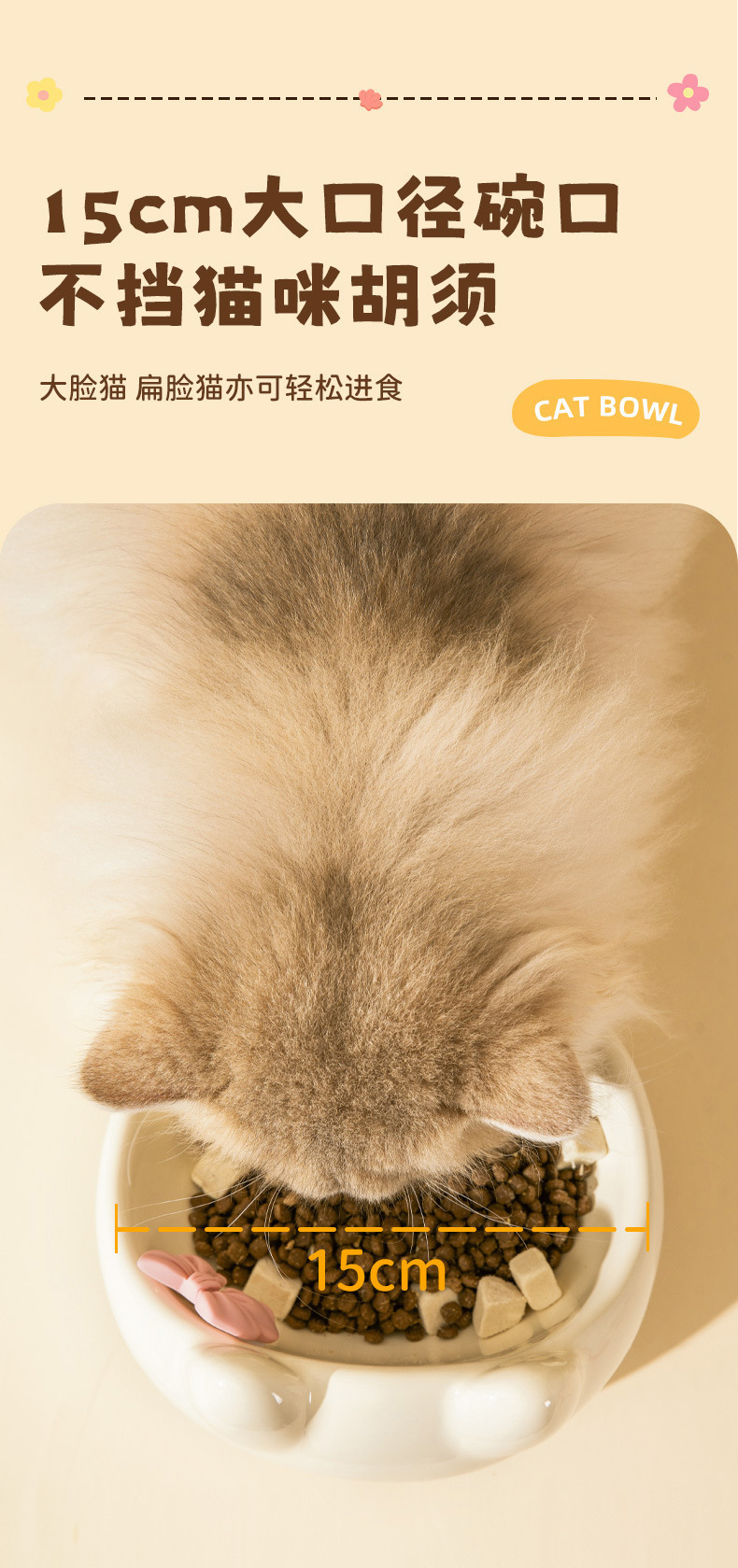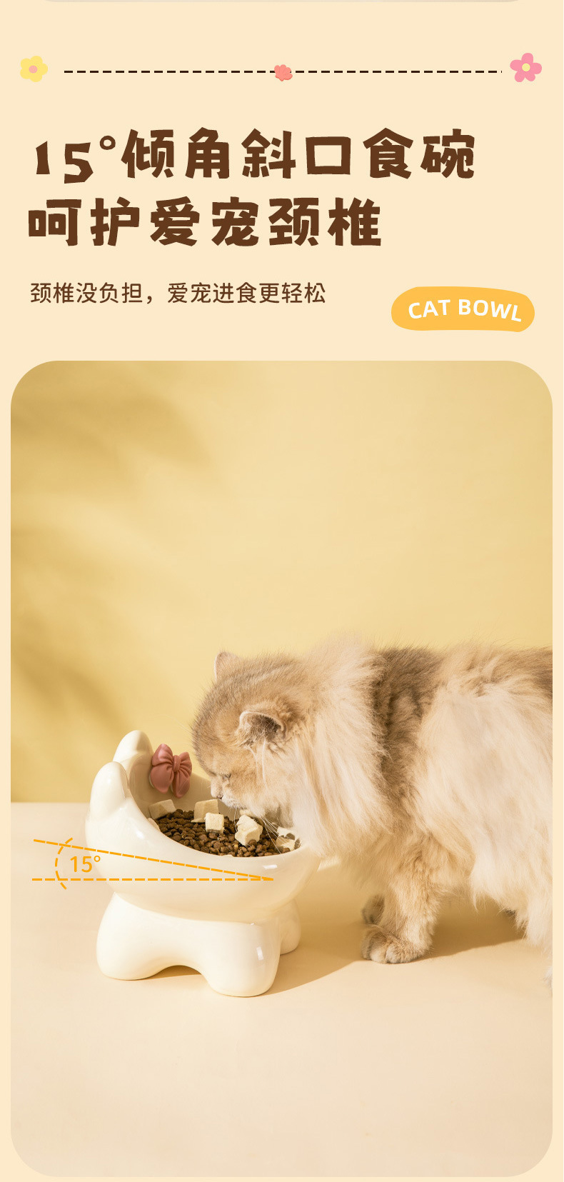 고양이 세라믹 그릇, 귀여운 나비 매듭, 키가 큰 애완 동물 그릇, 먹고 마시는 목 보호 고양이 그릇, 개 그릇, 맞춤형 가공