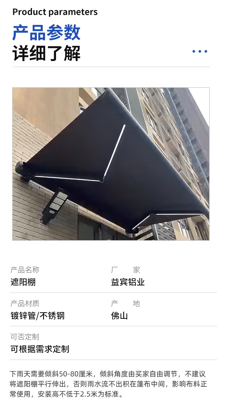 태양 그늘 접이식 개폐식 전기 수축 천막 야외 안뜰 문 두꺼운 방풍 및 비 차양 도매
