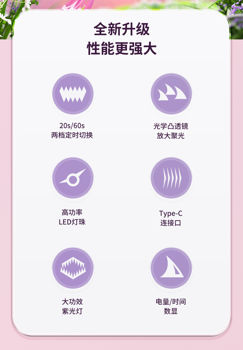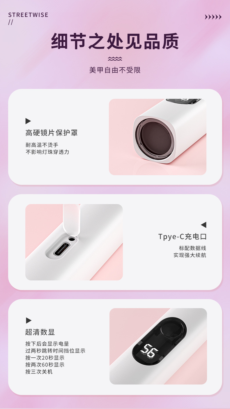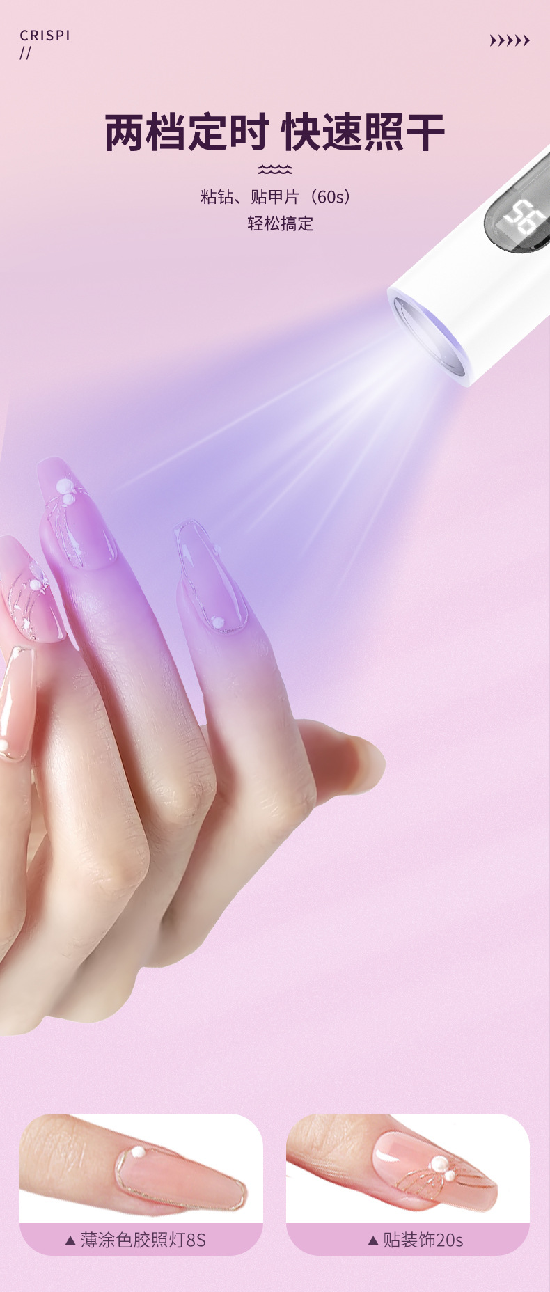 핸드 헬드 네일 아트 한 단어 램프 스포트라이트 2 기어 타이밍 디지털 디스플레이 퍼플 라이트 USB 충전 빠른 건조 네일 아트 램프