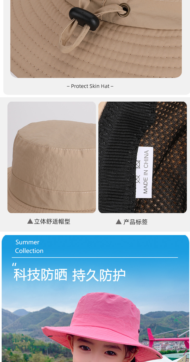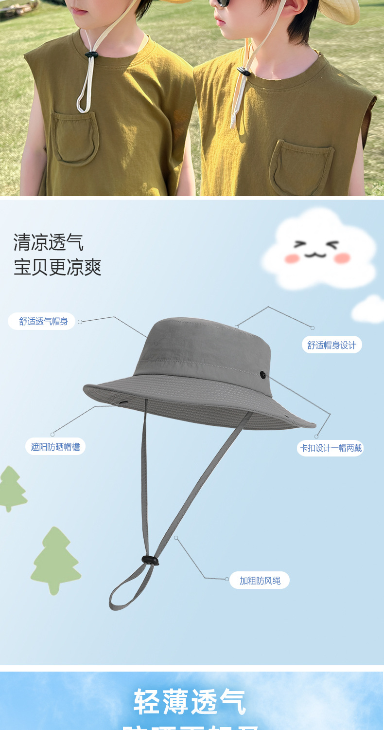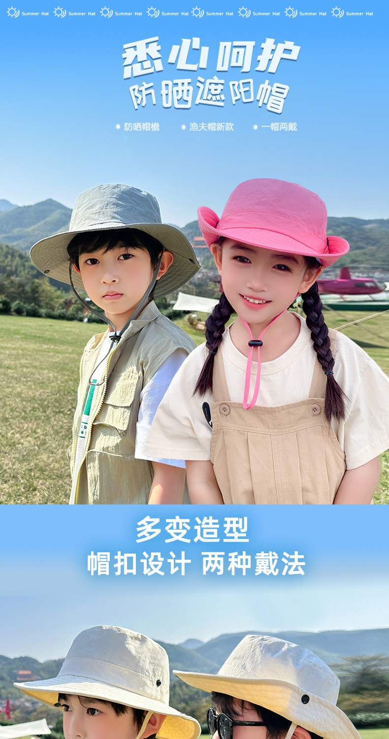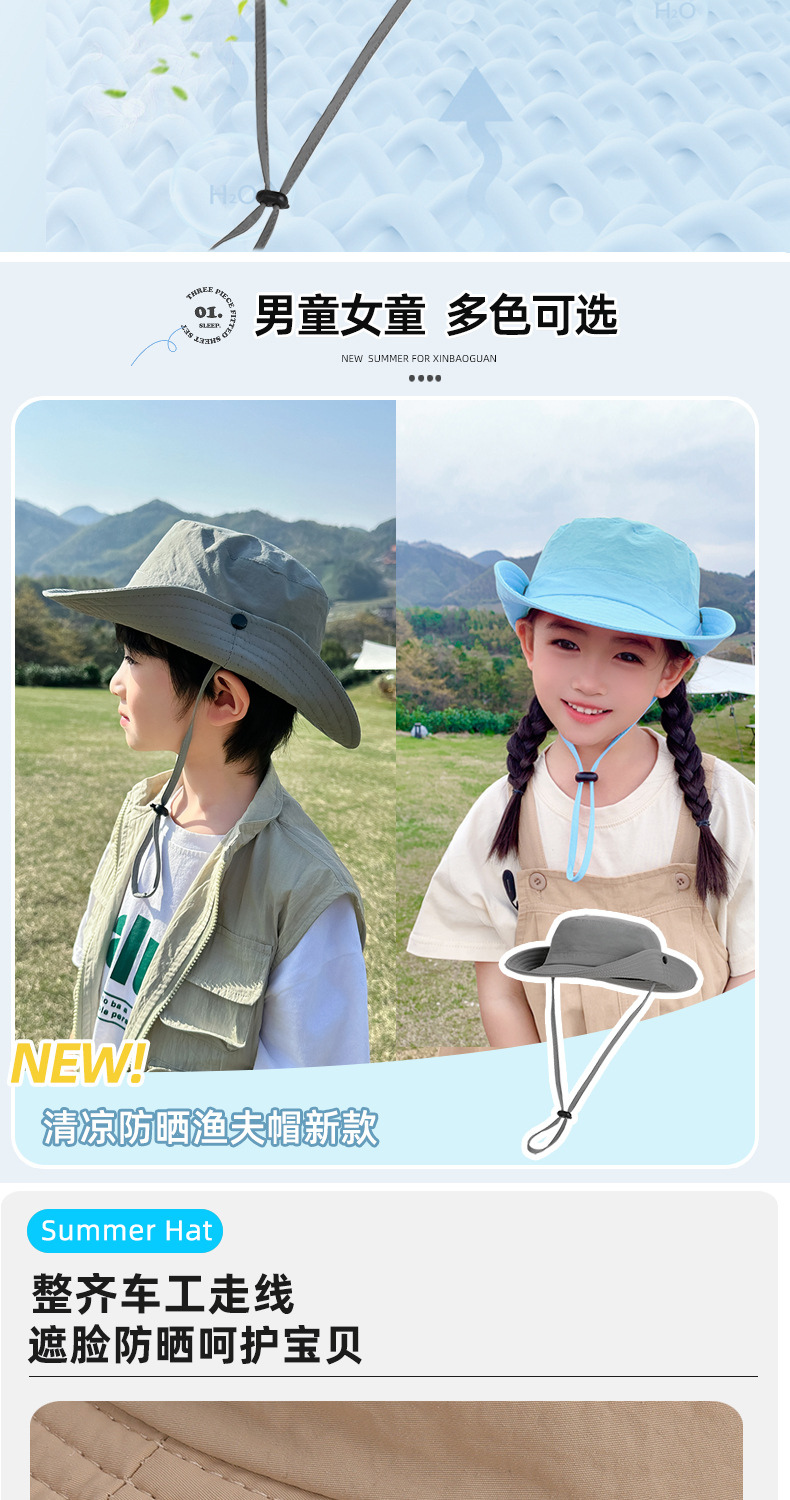 어린이 모자 여름 남성과 여성의 아기 야외 태양 보호 모자 빠른 건조 방수 통기성 태양 모자 큰 챙 어부 모자