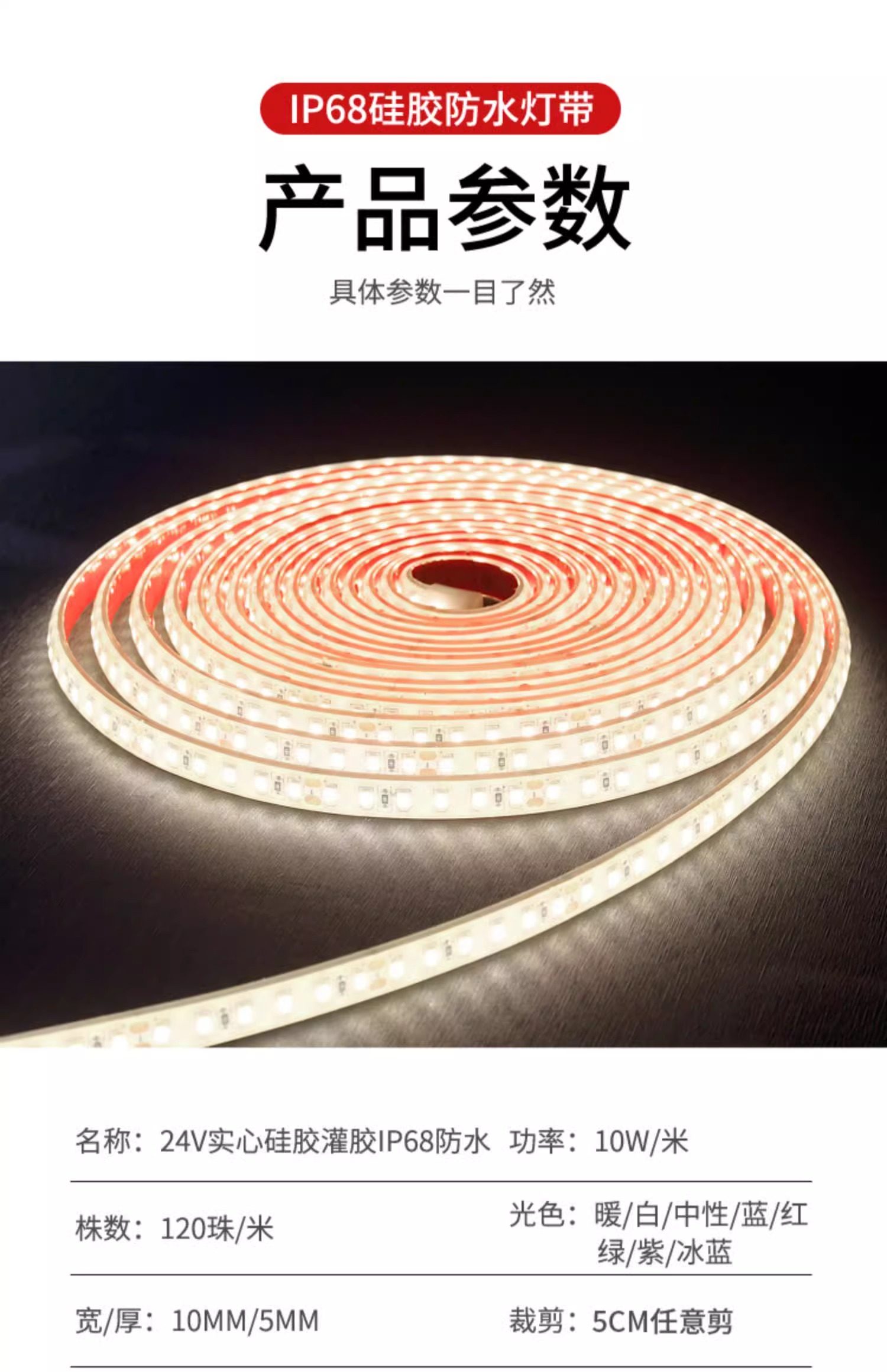 • 백색광 고체 접착제로 채워진 방수 라이트 스트립, 24V, 엔지니어링 유형