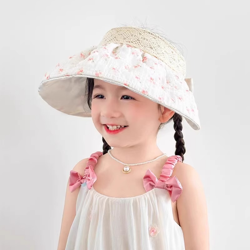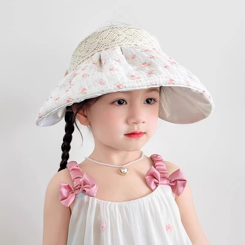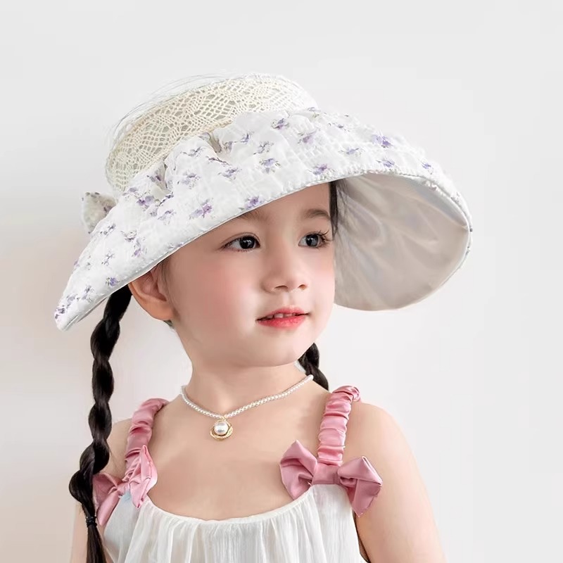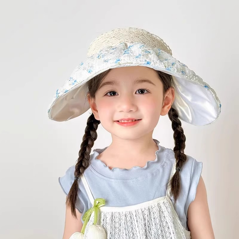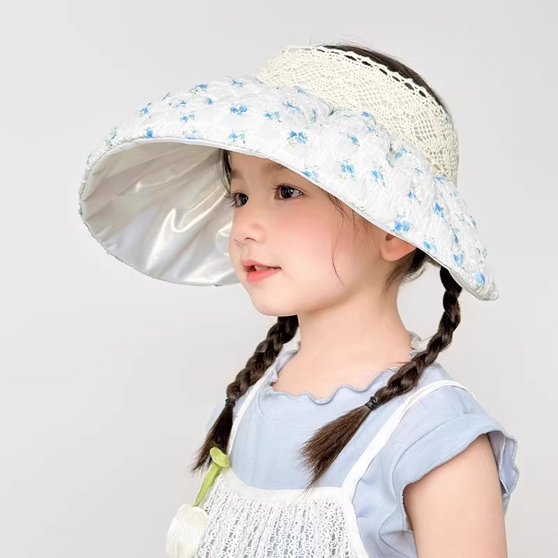 어린이용 빈 탑 태양 모자, 소녀 여름 자외선 방지 대형 챙 야외 여행 캠핑 태양 모자 태양 쉘 모자