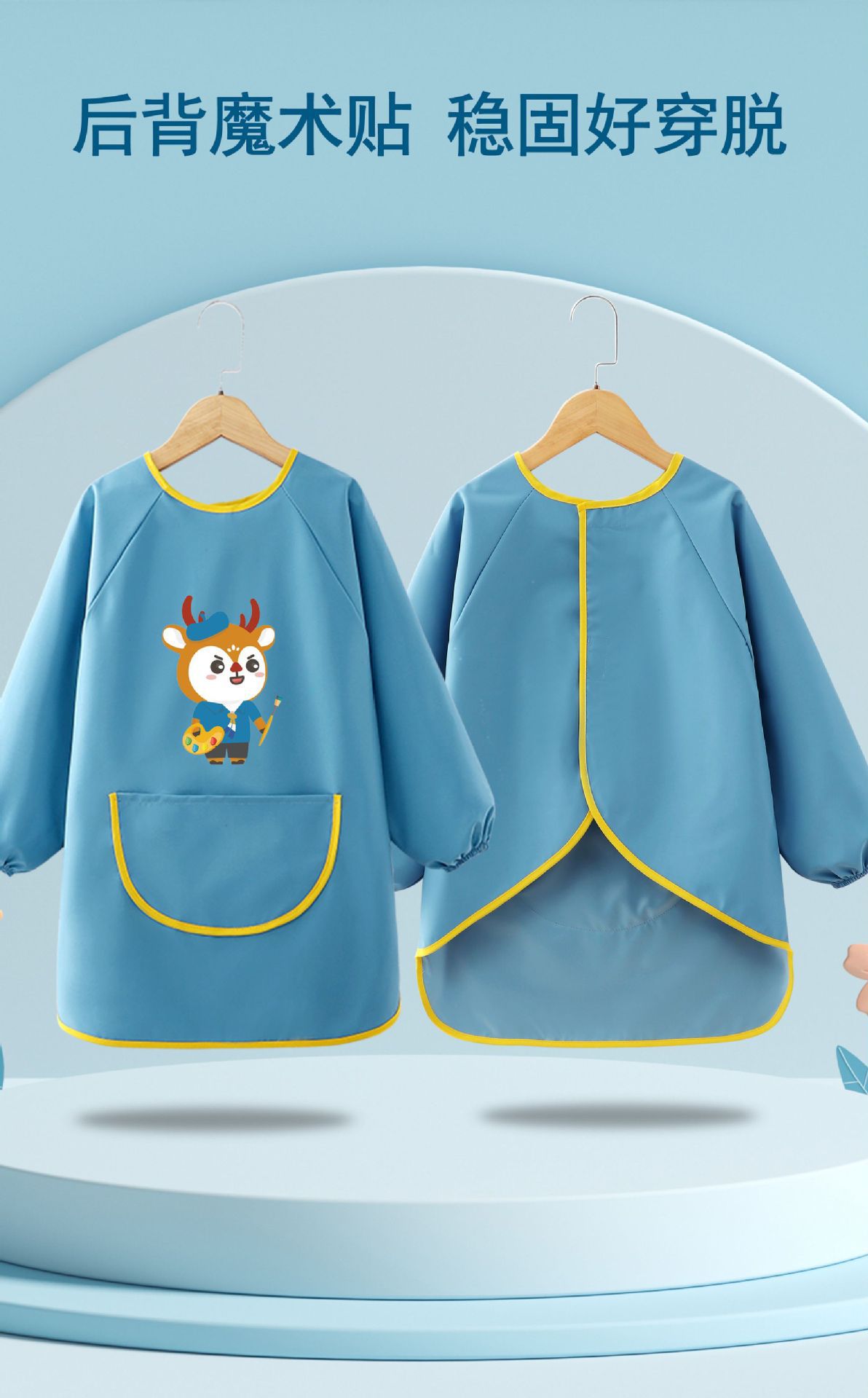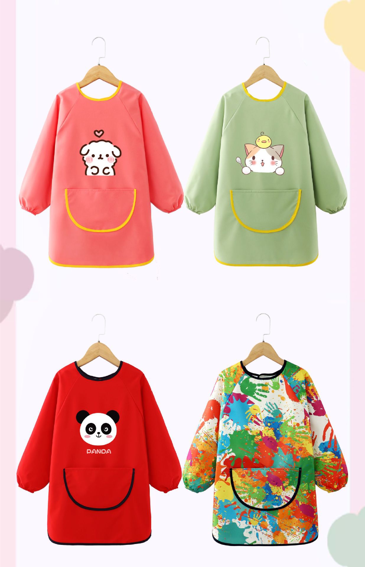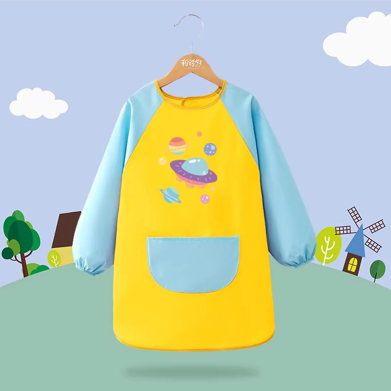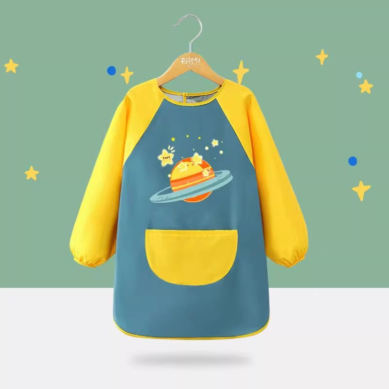 어린이 앞치마 그림 옷 유치원 스튜디오 아트 벨크로 긴팔 방수 및 더러운 방지 턱받이 작업복 역방향 착용