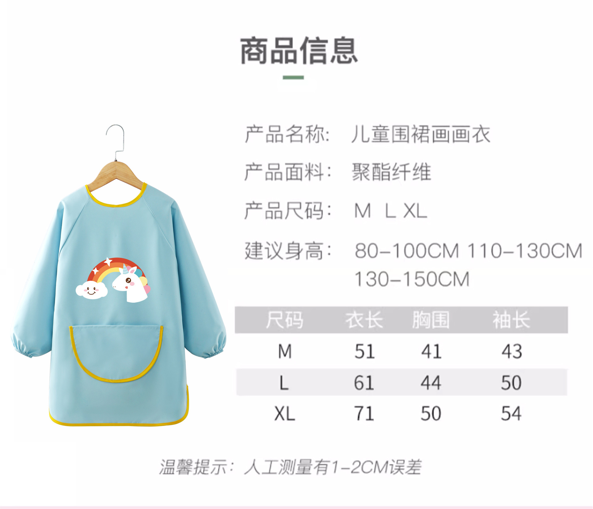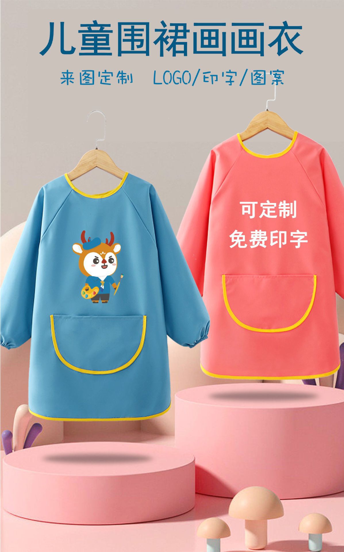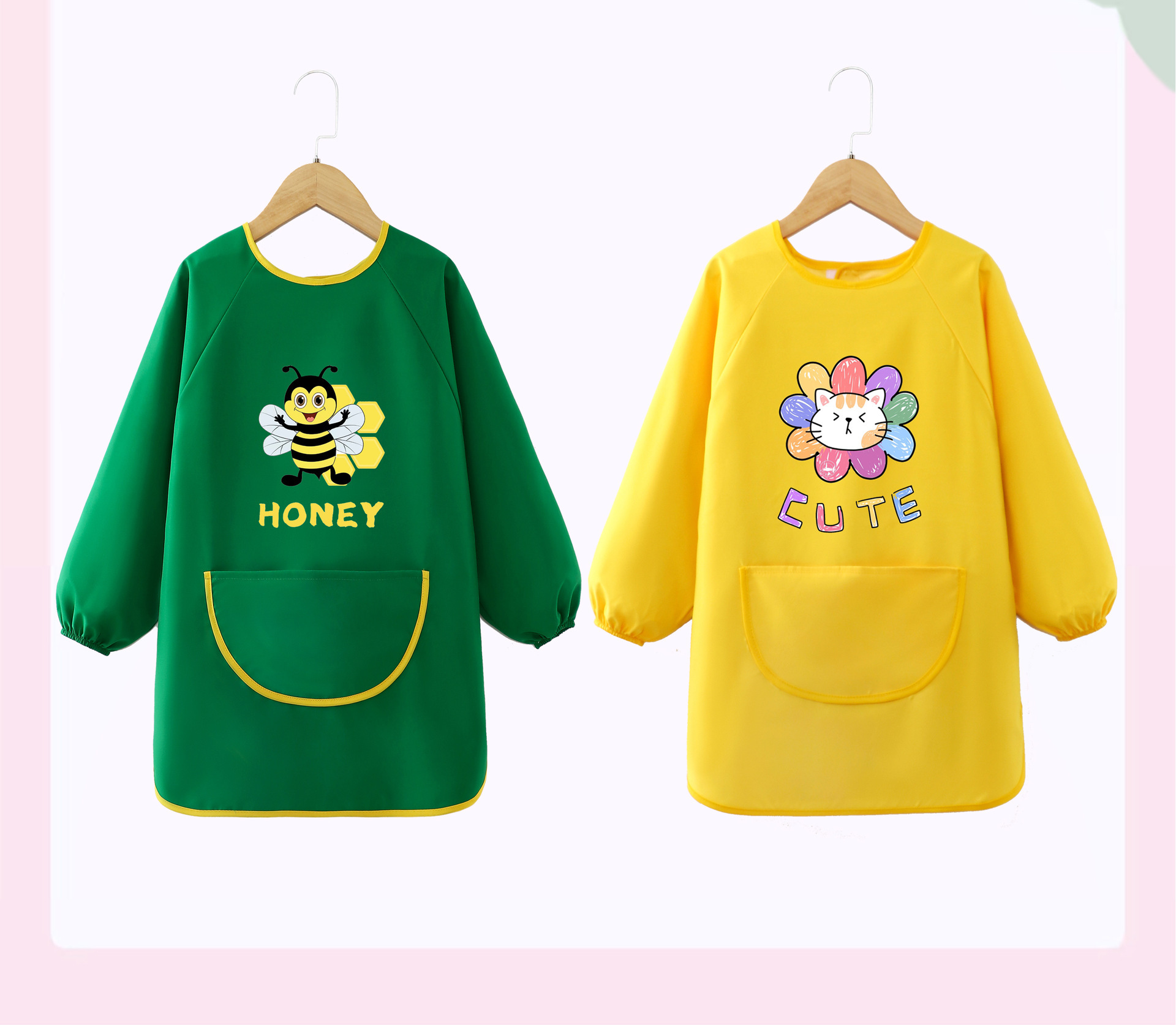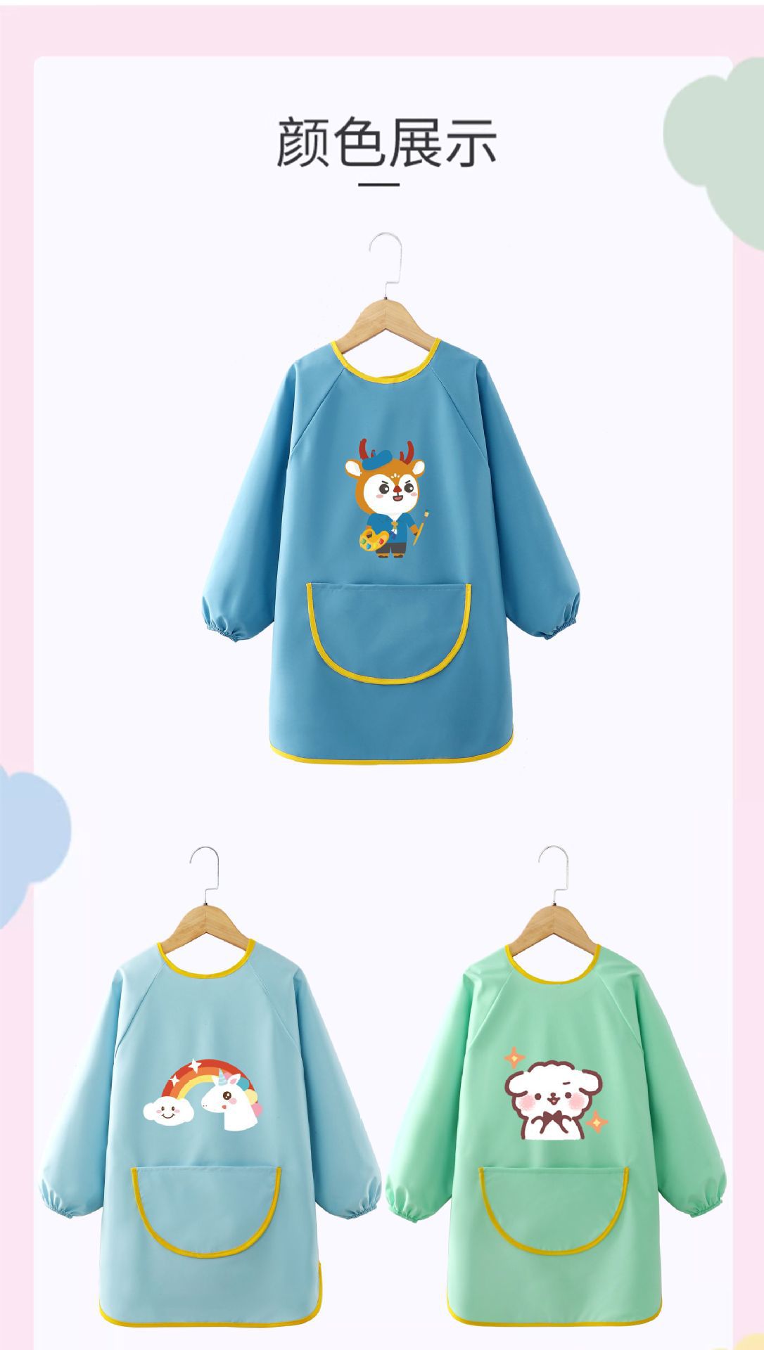 어린이 앞치마 그림 옷 유치원 스튜디오 아트 벨크로 긴팔 방수 및 더러운 방지 턱받이 작업복 역방향 착용