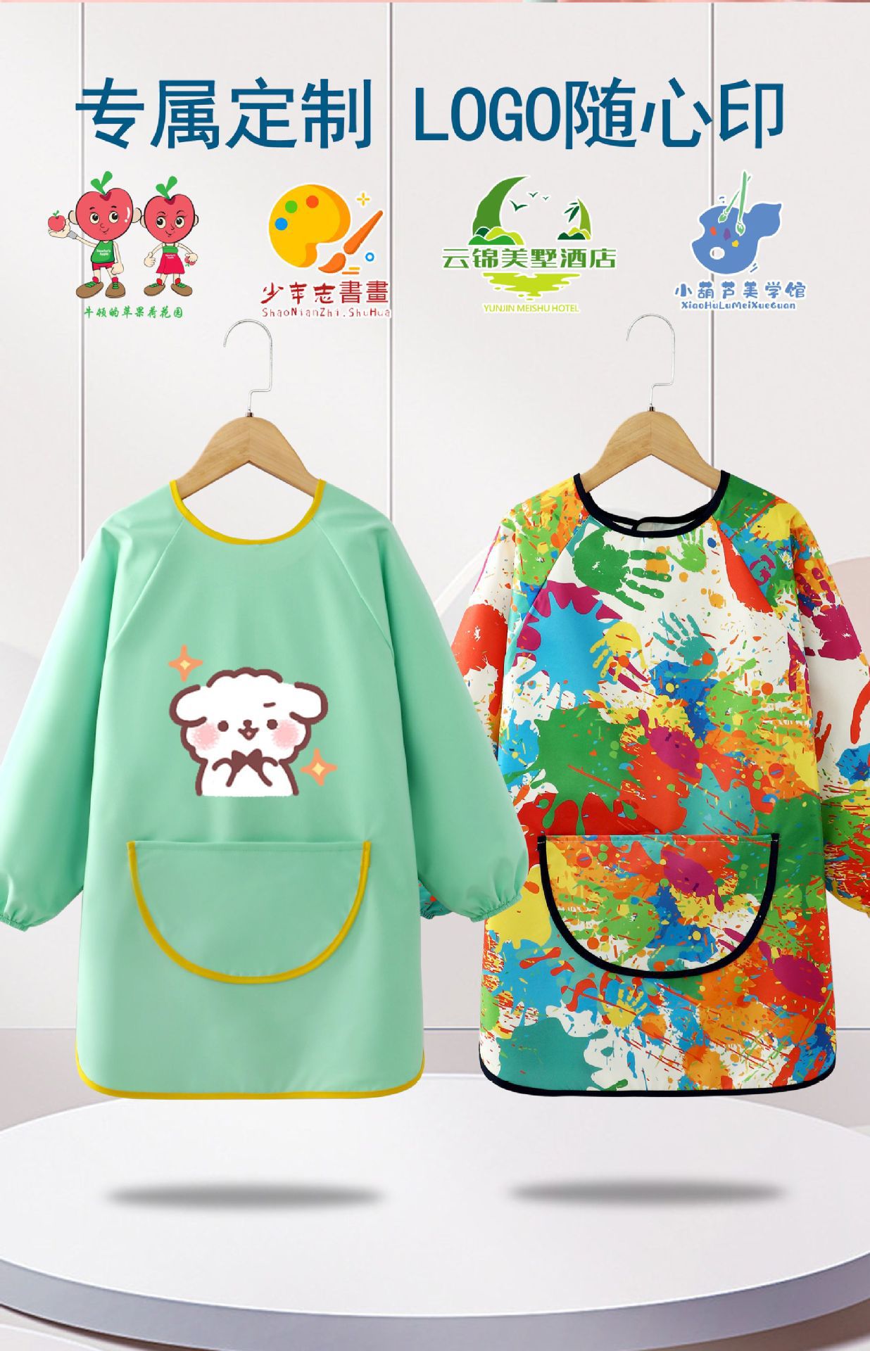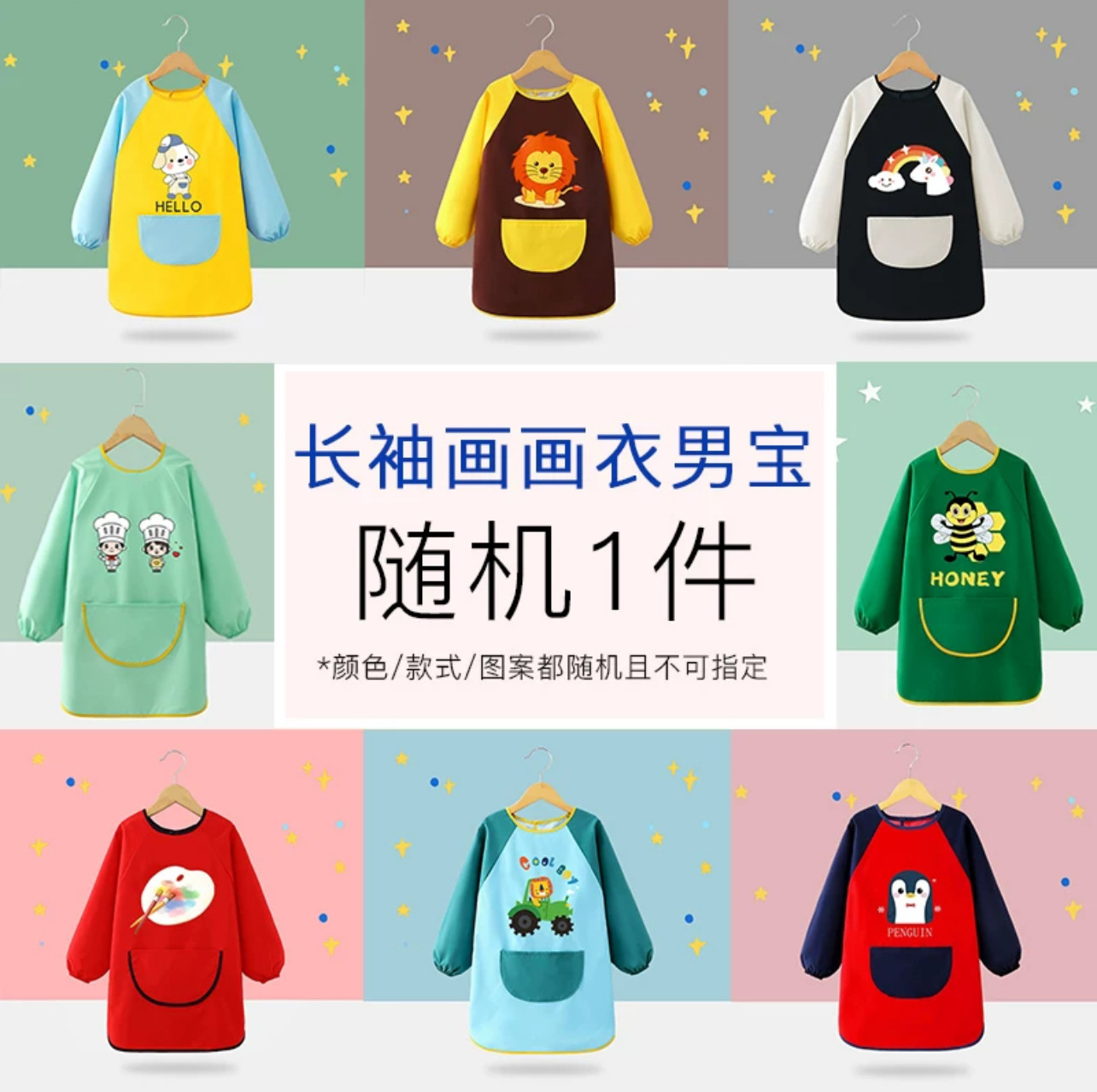 어린이 앞치마 그림 옷 유치원 스튜디오 아트 벨크로 긴팔 방수 및 더러운 방지 턱받이 작업복 역방향 착용스토어 가기