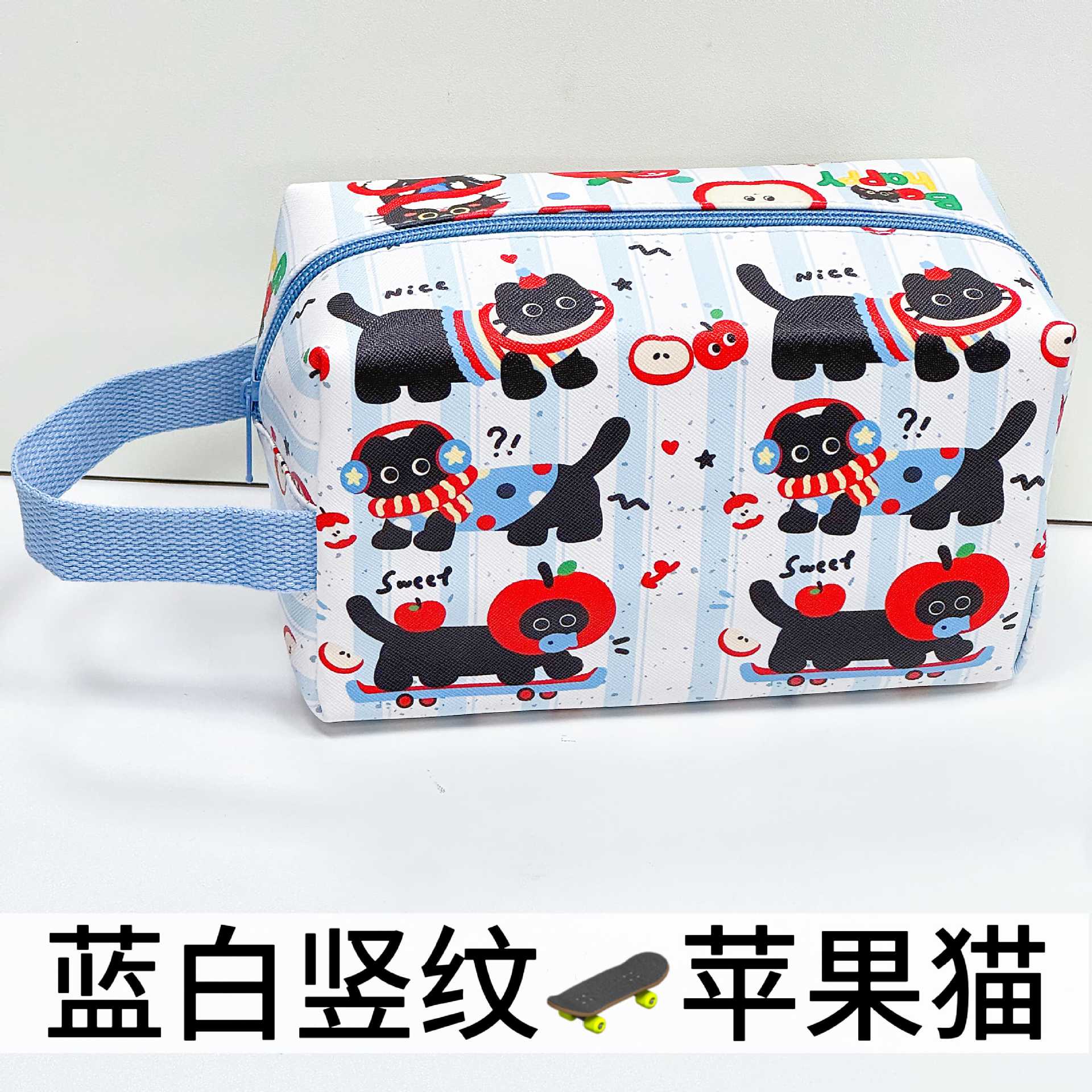 • 수납 파우치 - 블루 & 화이트 스트라이프 애플 고양이
