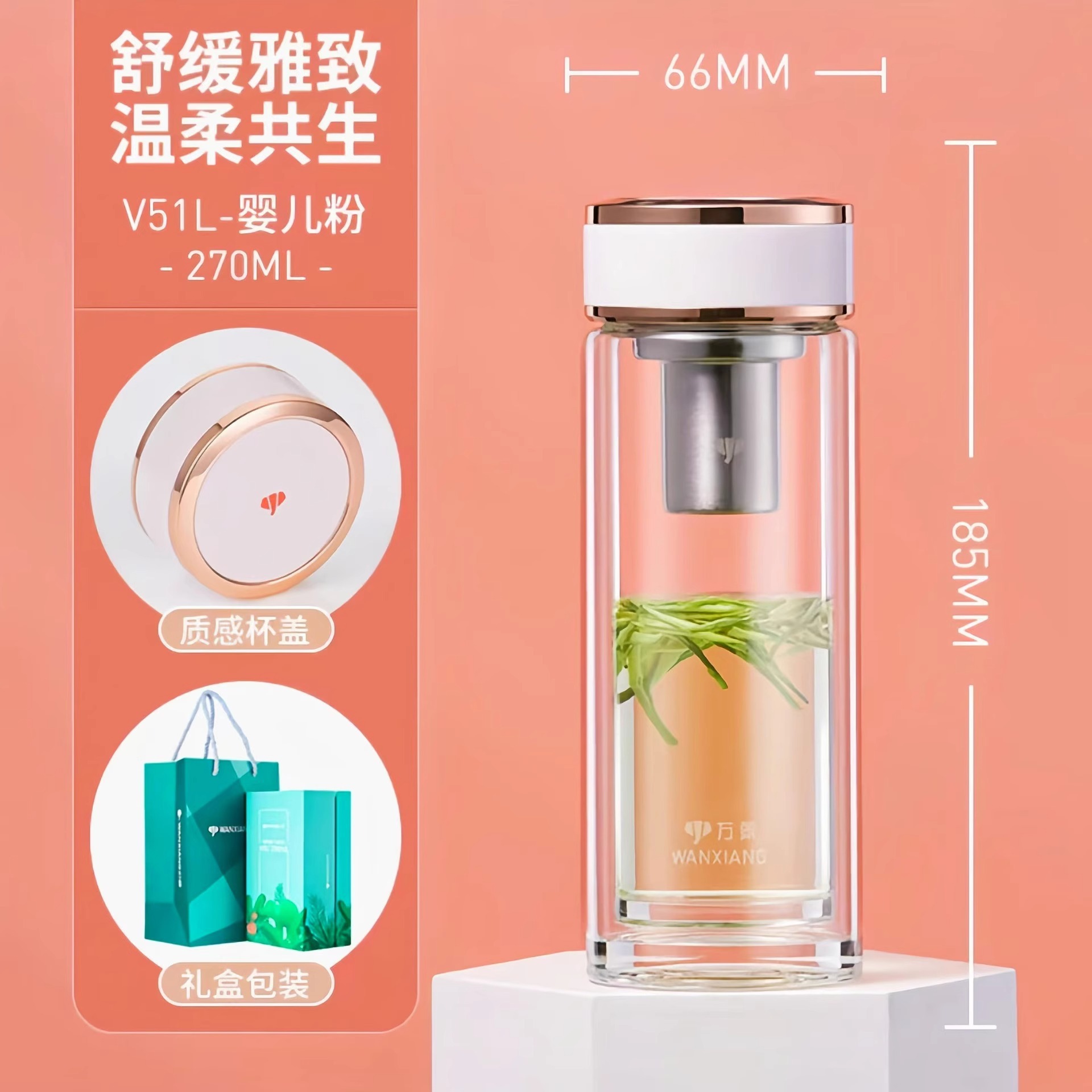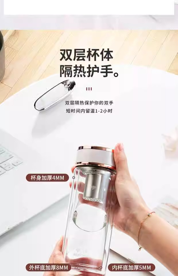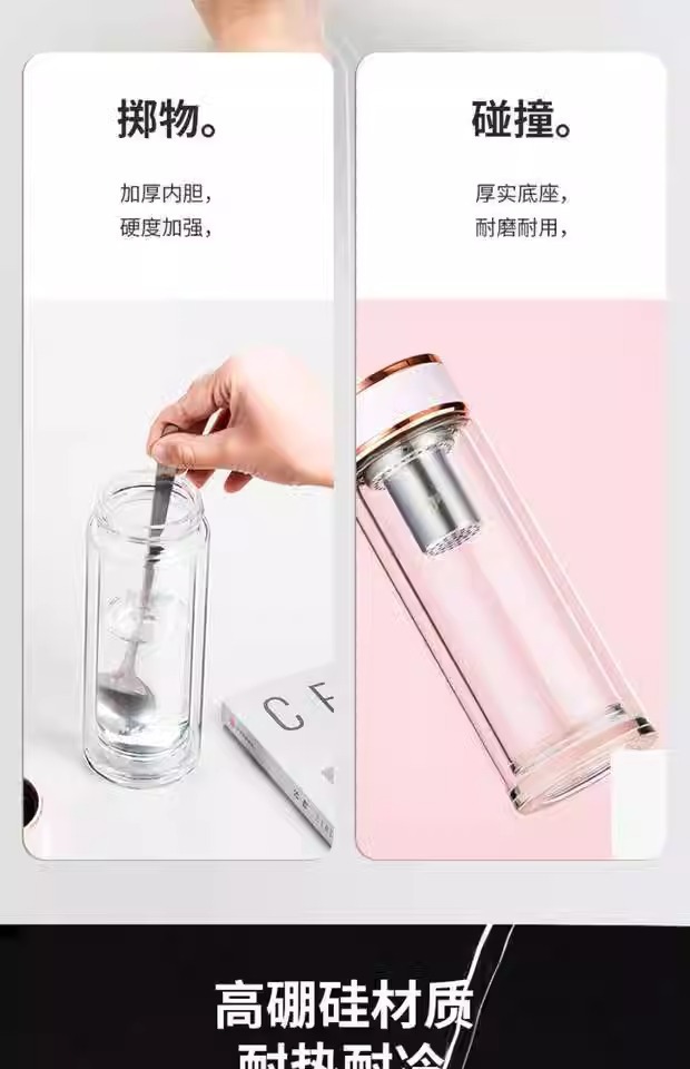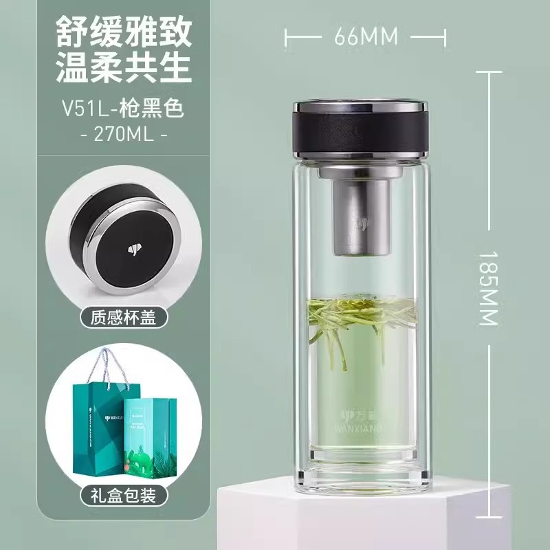 남성과 여성을위한 비엔티안 더블 레이어 작은 내열성 유리 투명 티 컵 단열 휴대용 창조적 인 투명 선물 제공 워터 컵