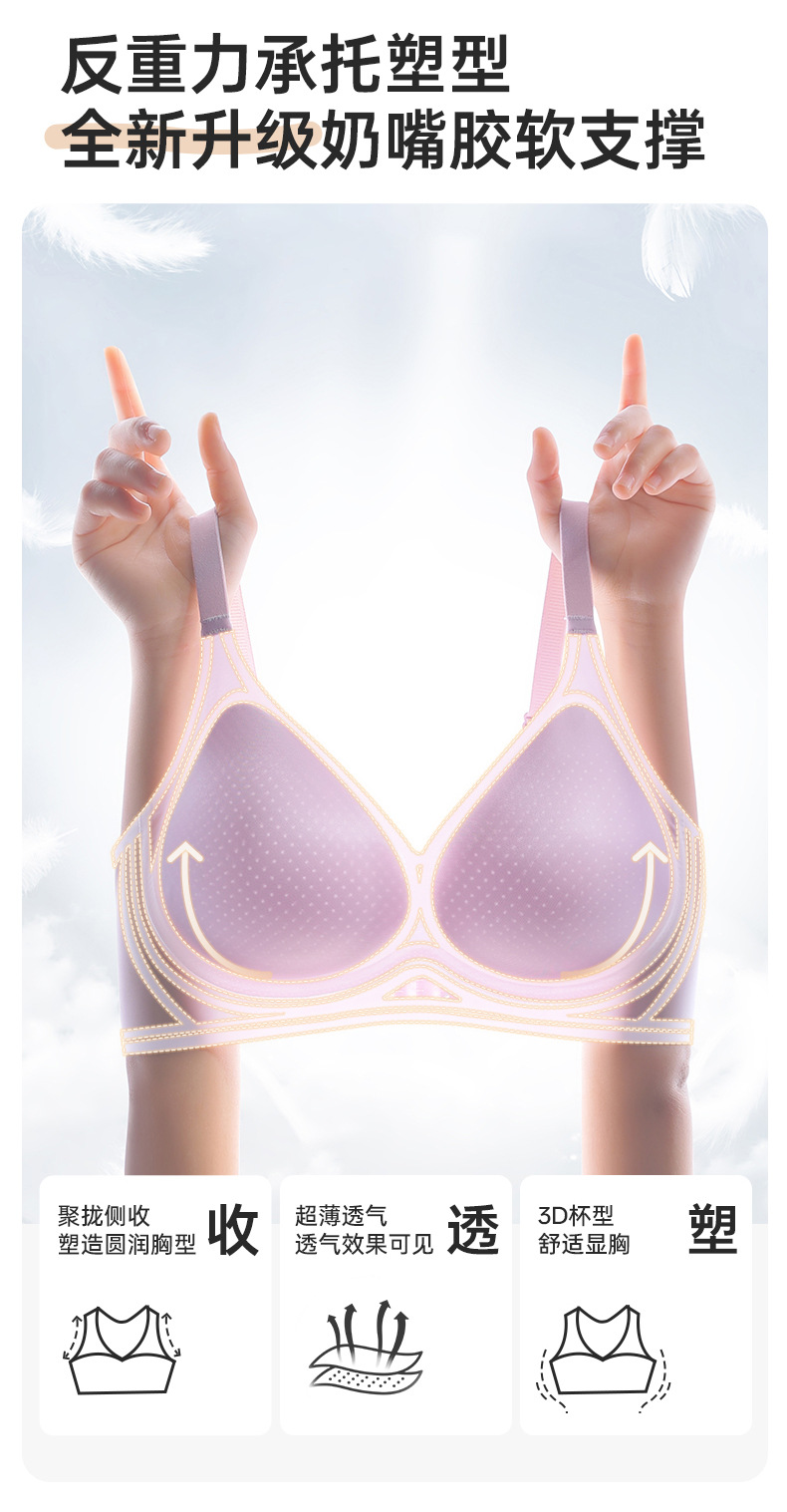 가슴이 작은 여성을 위한 얇은 밀크스킨 심리스 브라, 푸쉬업, 아름다운 등, 처짐 방지, 가슴 리프팅, 보조 가슴 수축, 와이어 프리 브라스토어 가기