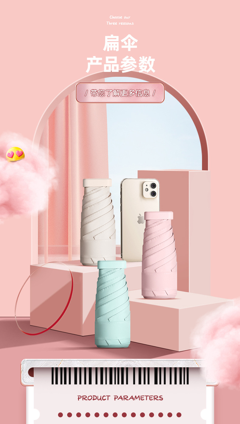 도매 플랫 50% off 작은 우산 태양 우산 여성 비닐 태양 보호 UV 접는 파라솔 휴대용 미니 초경량