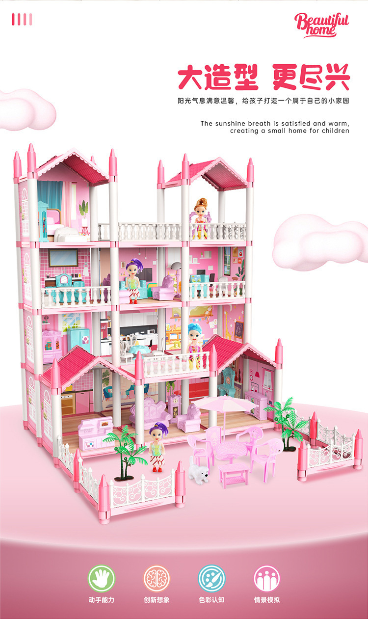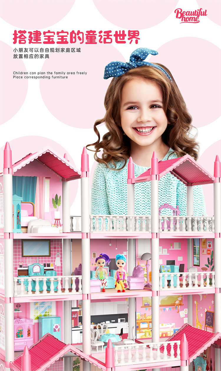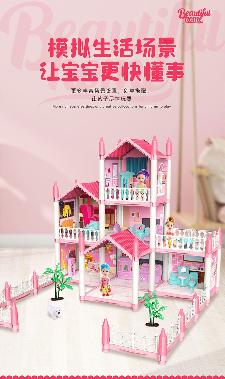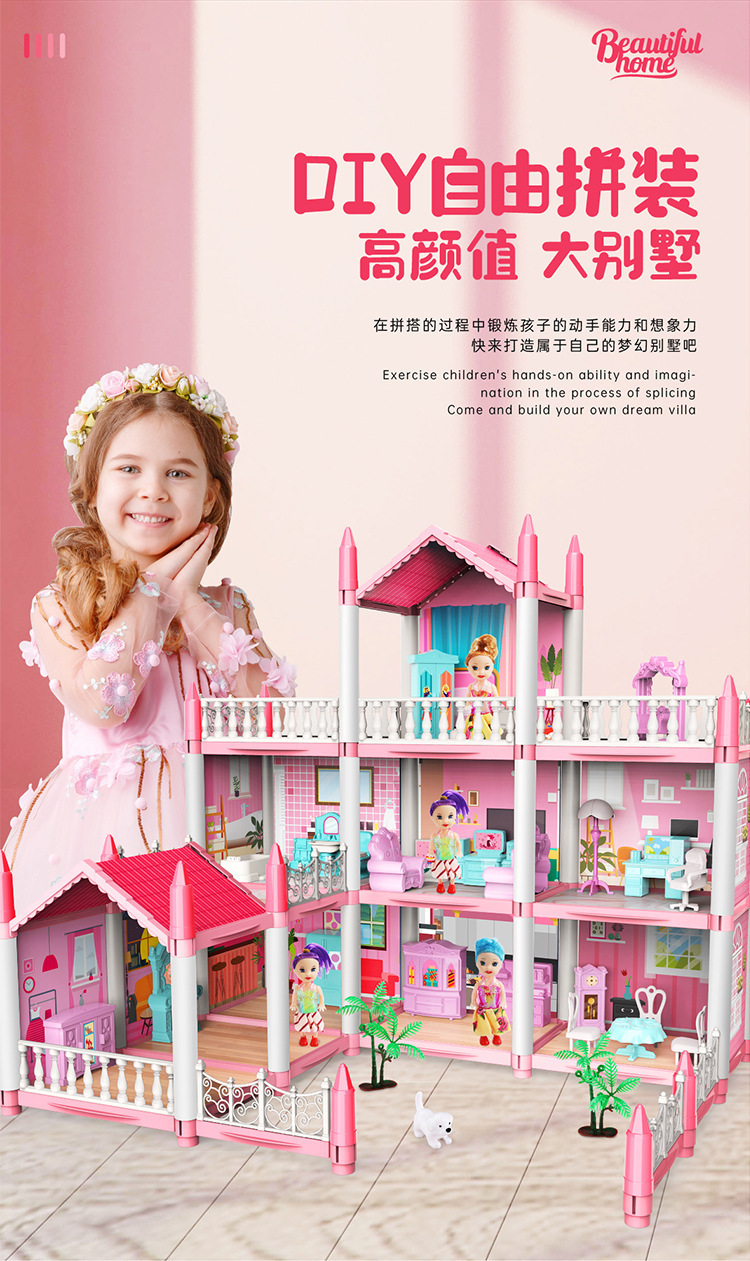 국경 간 놀이 집 장난감 미니 빌라 성 인형 집 소녀 유치원 생일 선물을위한 재고 있음