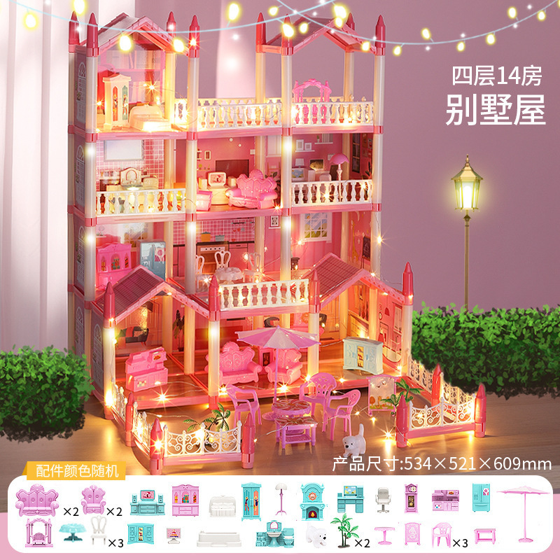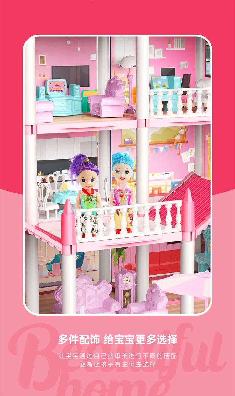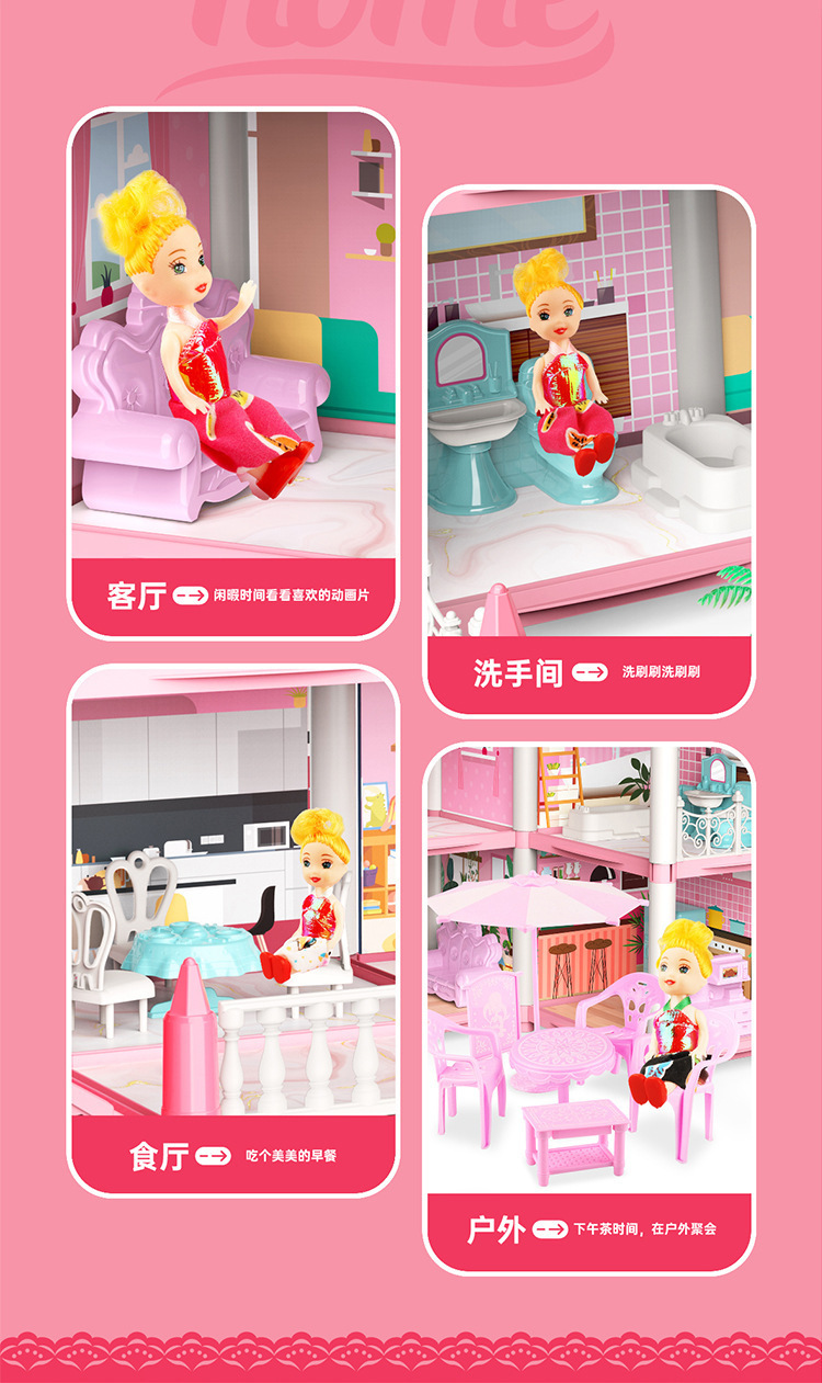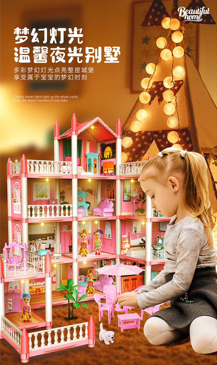 국경 간 놀이 집 장난감 미니 빌라 성 인형 집 소녀 유치원 생일 선물을위한 재고 있음