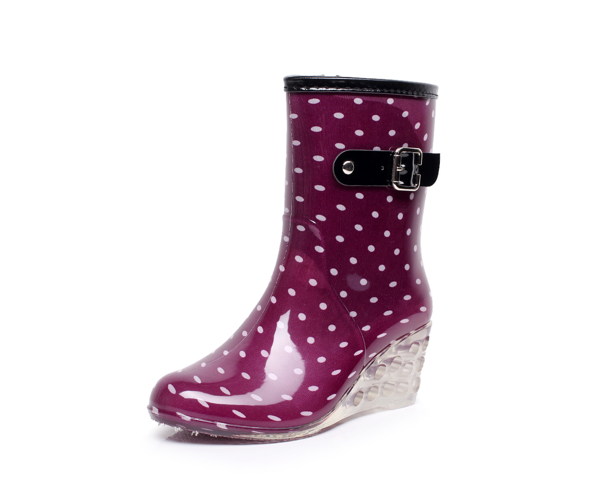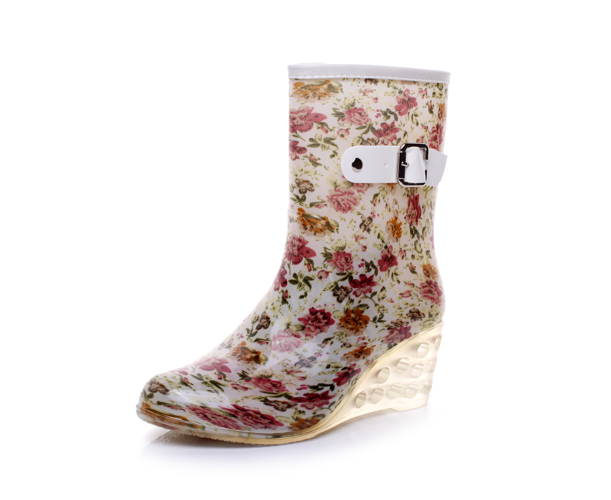 2025 새로운 여성 짧은 튜브 미끄럼 비 장화 패션 슬로프 힐 레인 부츠 물 부츠 방수 고무 신발스토어 가기