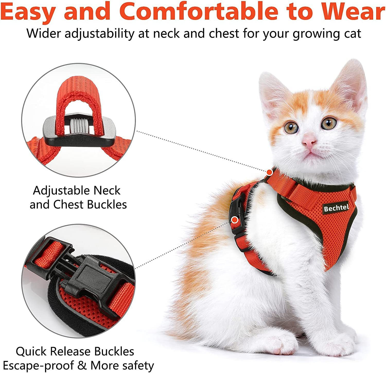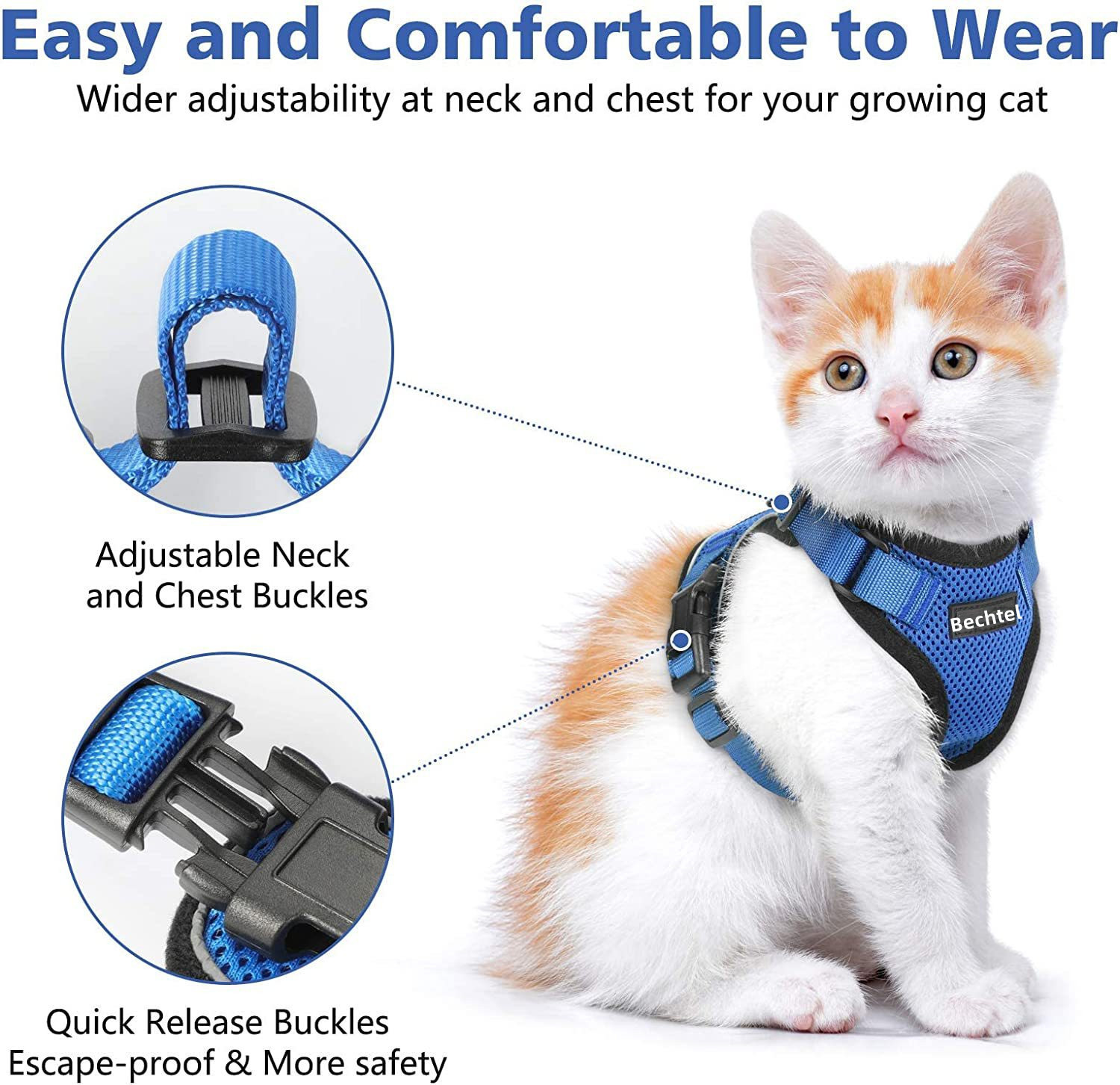 고양이 견인 로프, 이탈 방지, 조절 가능한 고양이 견인 로프, 고양이 견인 로프, 조끼 스타일 애완 동물 하네스, 여름용 초박형스토어 가기