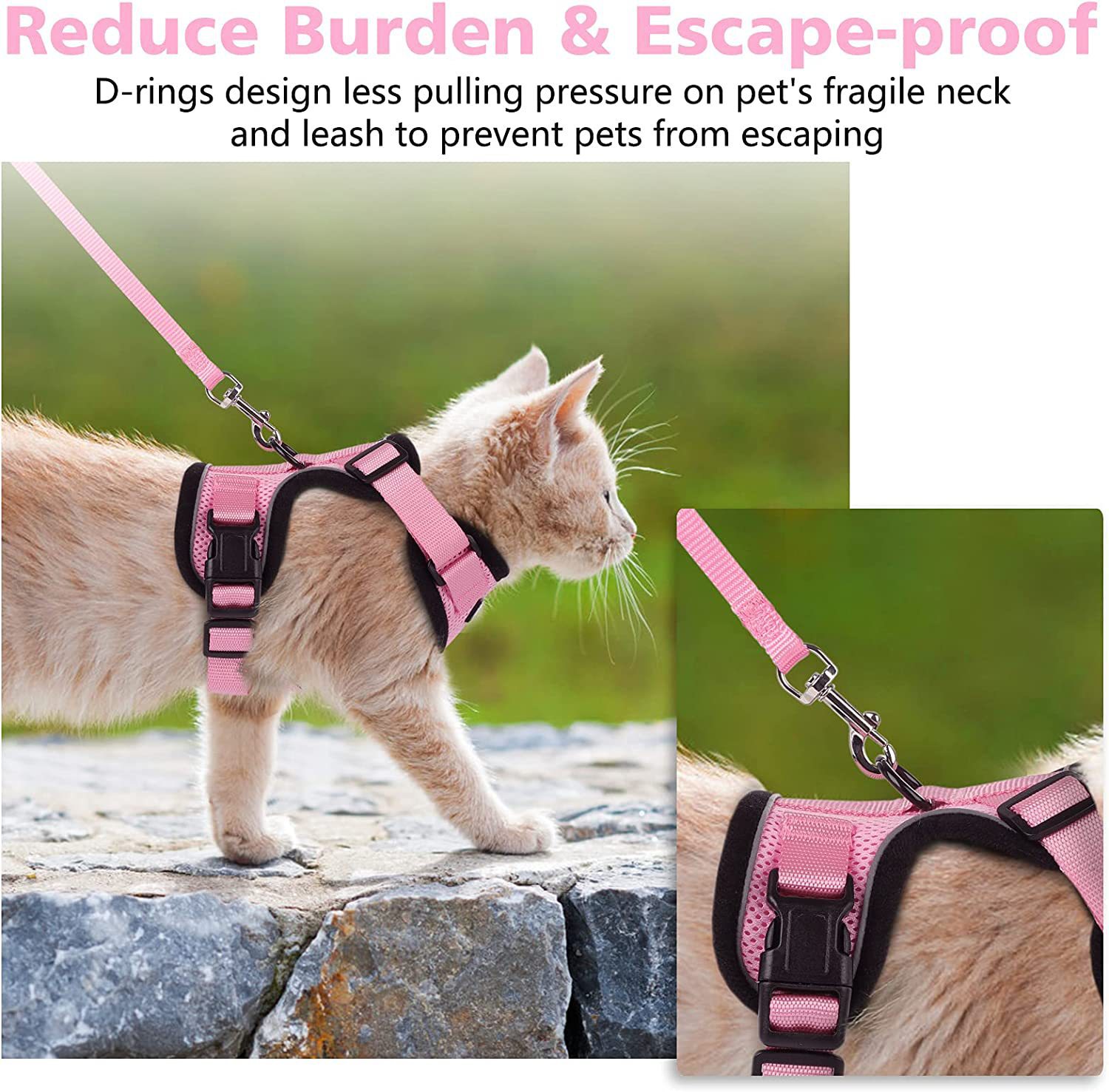 고양이 견인 로프, 이탈 방지, 조절 가능한 고양이 견인 로프, 고양이 견인 로프, 조끼 스타일 애완 동물 하네스, 여름용 초박형