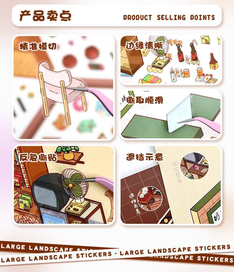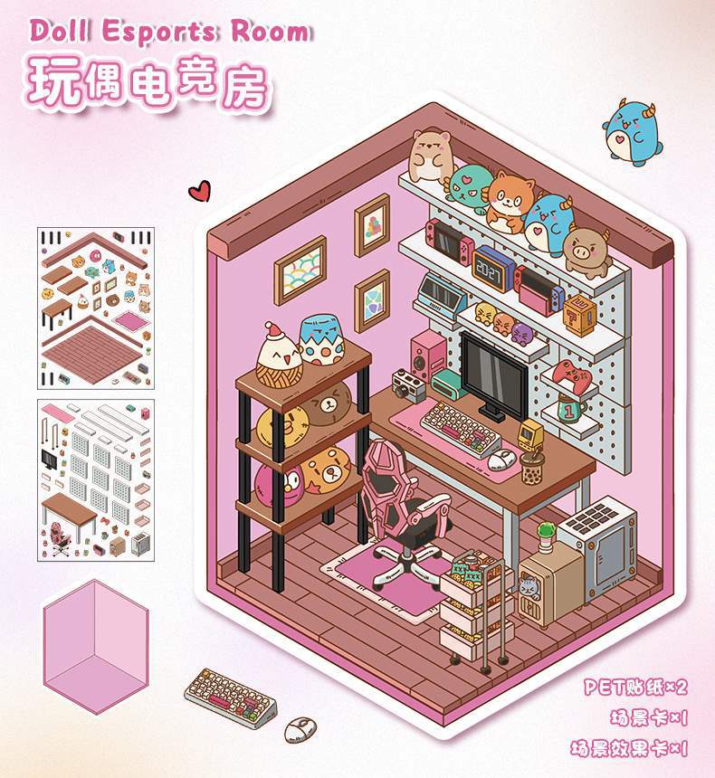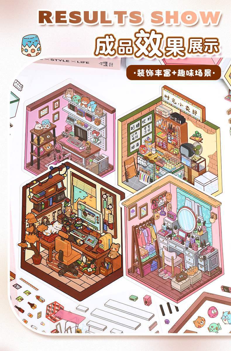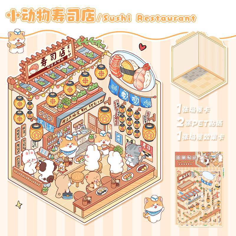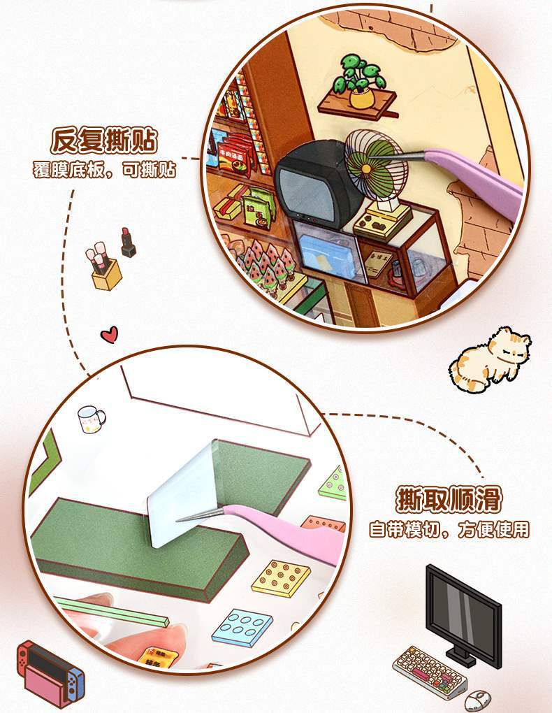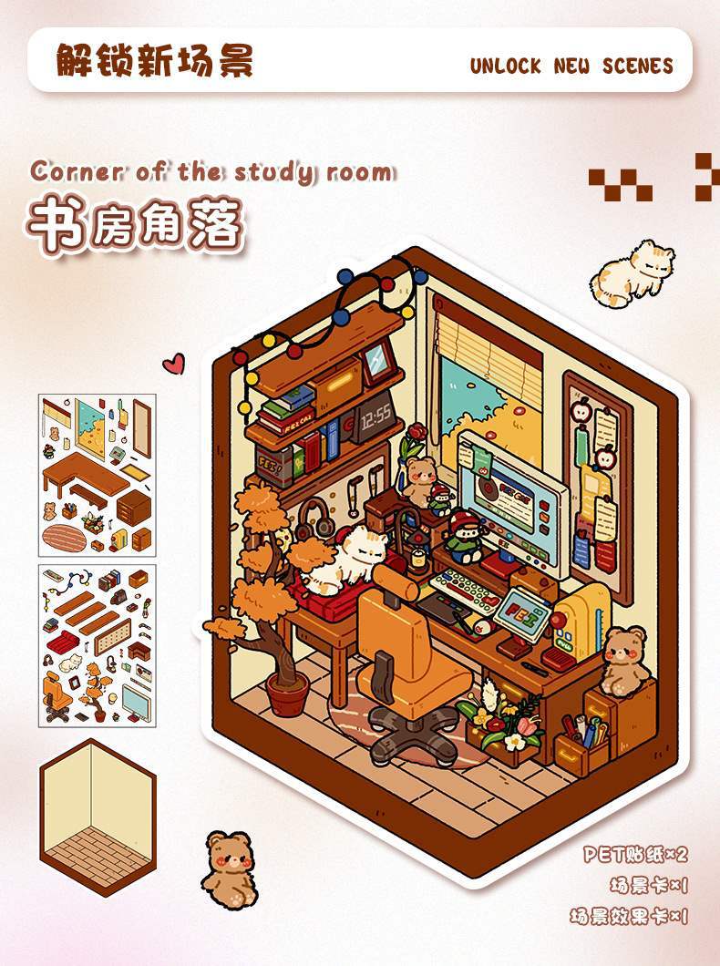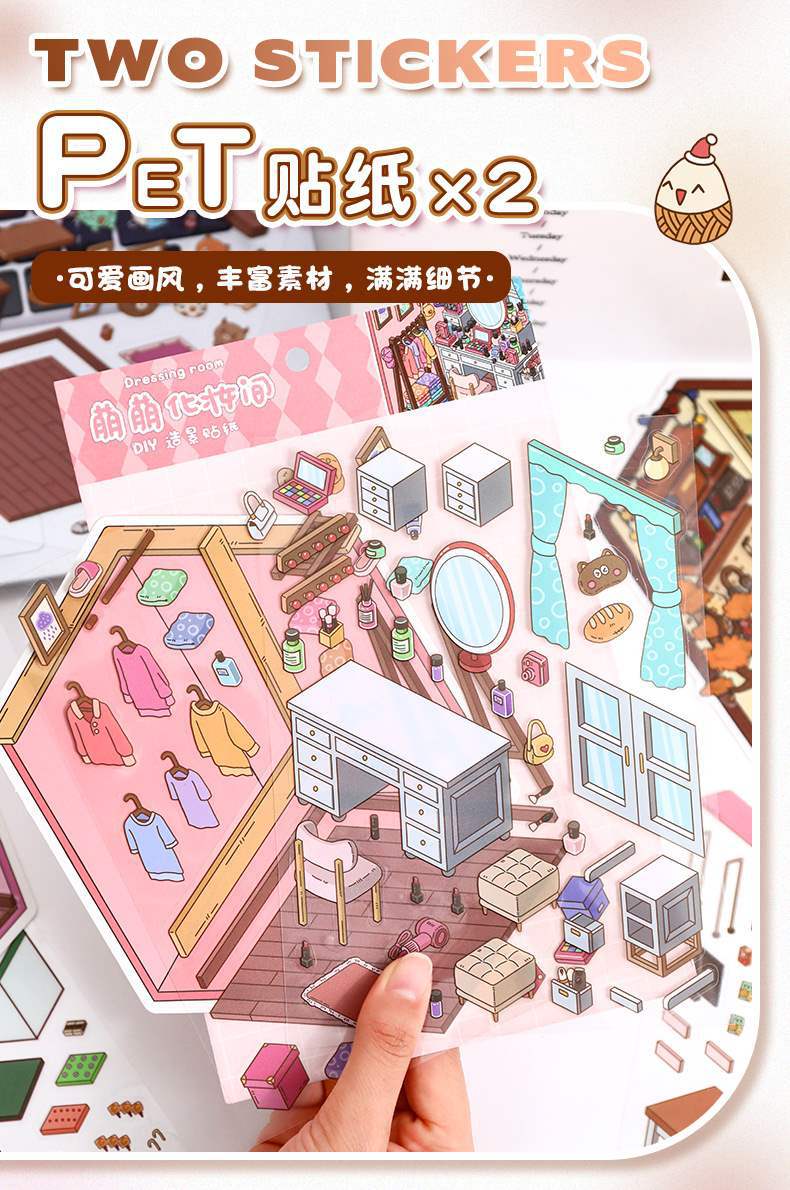 방 코너 조경 스티커 귀여운 3D 입체 캐빈 크리 에이 티브 미니어처 장면 DIY 어린이 스티커 스티커스토어 가기