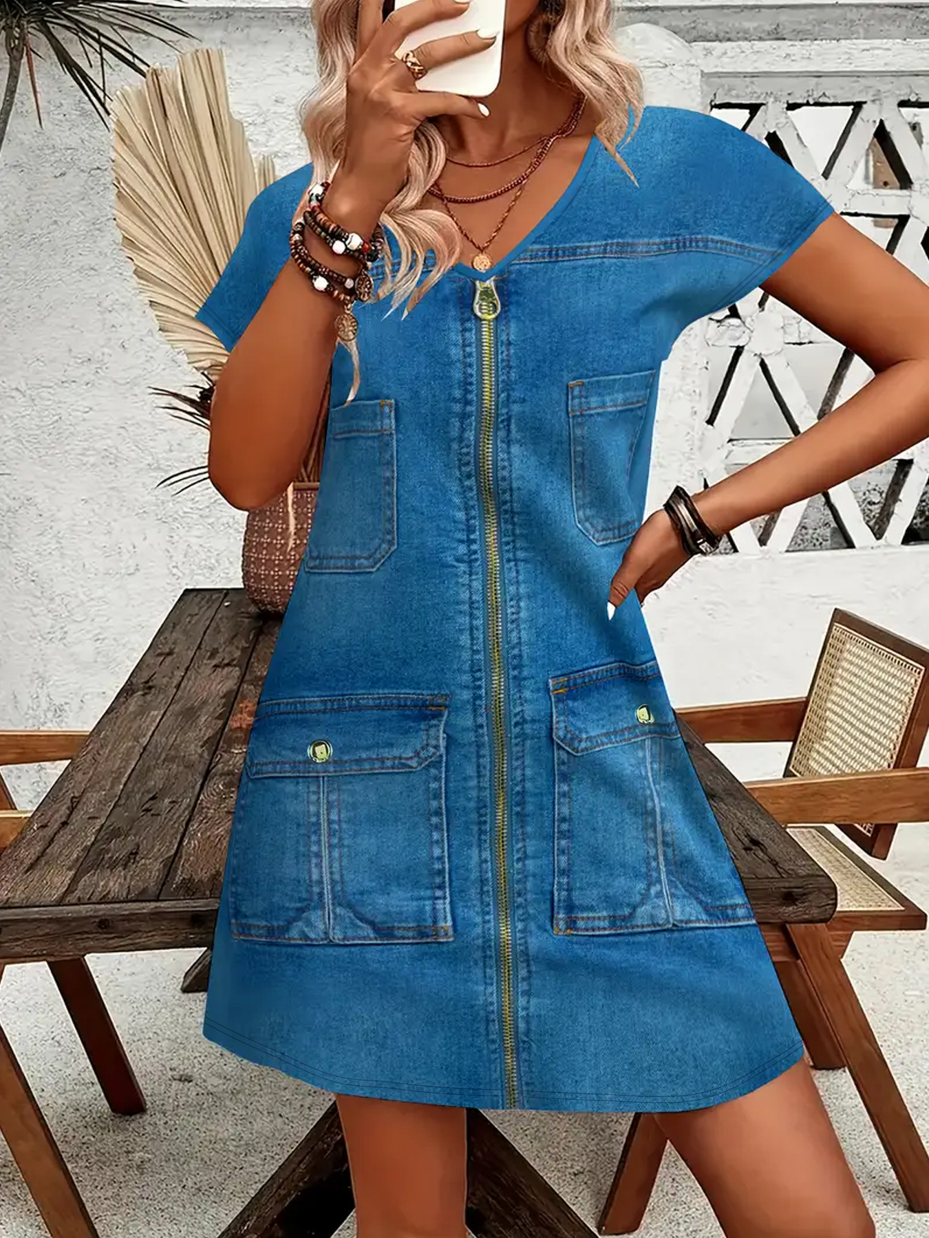 2025년 유럽 및 미국의 인기 여성 신상 전신 프린트 브이넥 우아한 가짜 지퍼 드레스스토어 가기