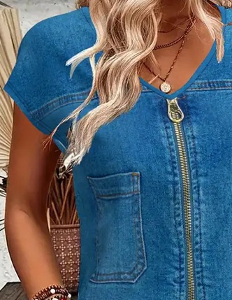 2025년 유럽 및 미국의 인기 여성 신상 전신 프린트 브이넥 우아한 가짜 지퍼 드레스