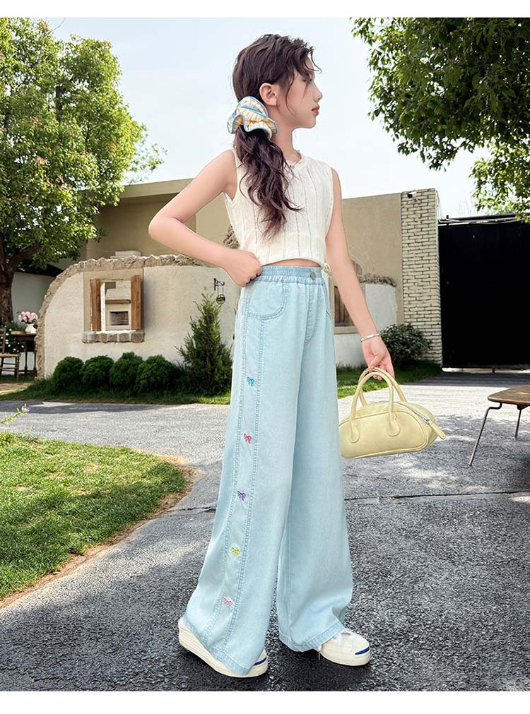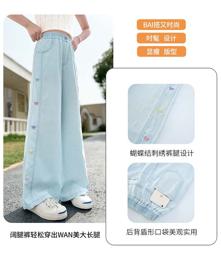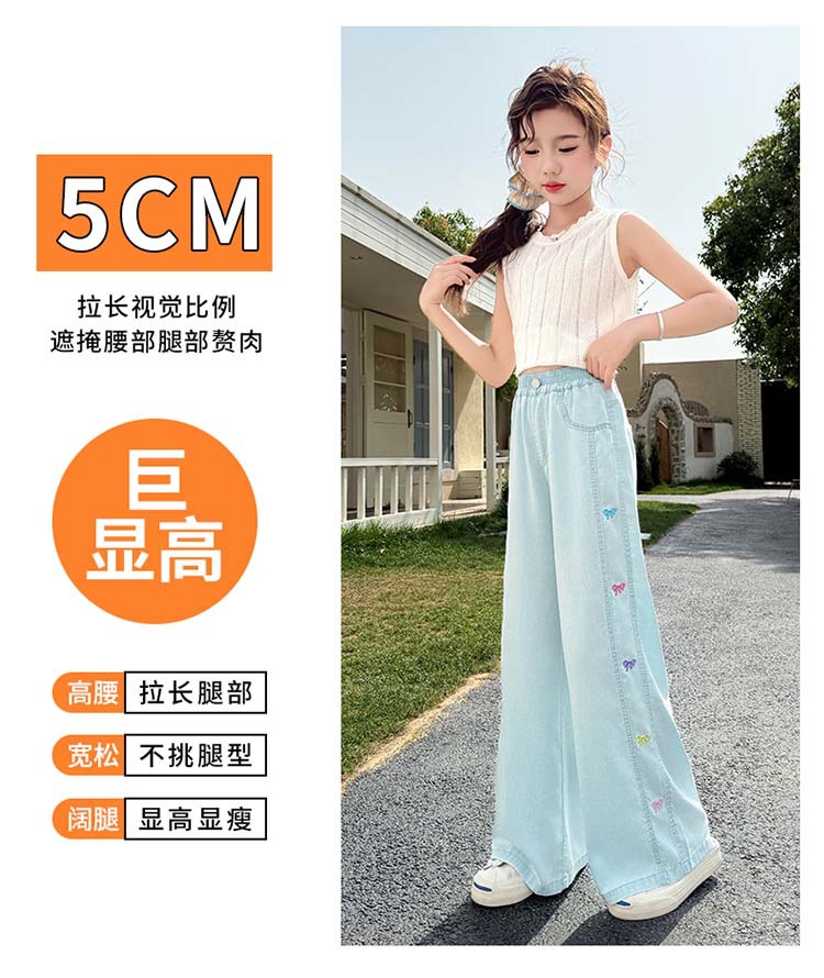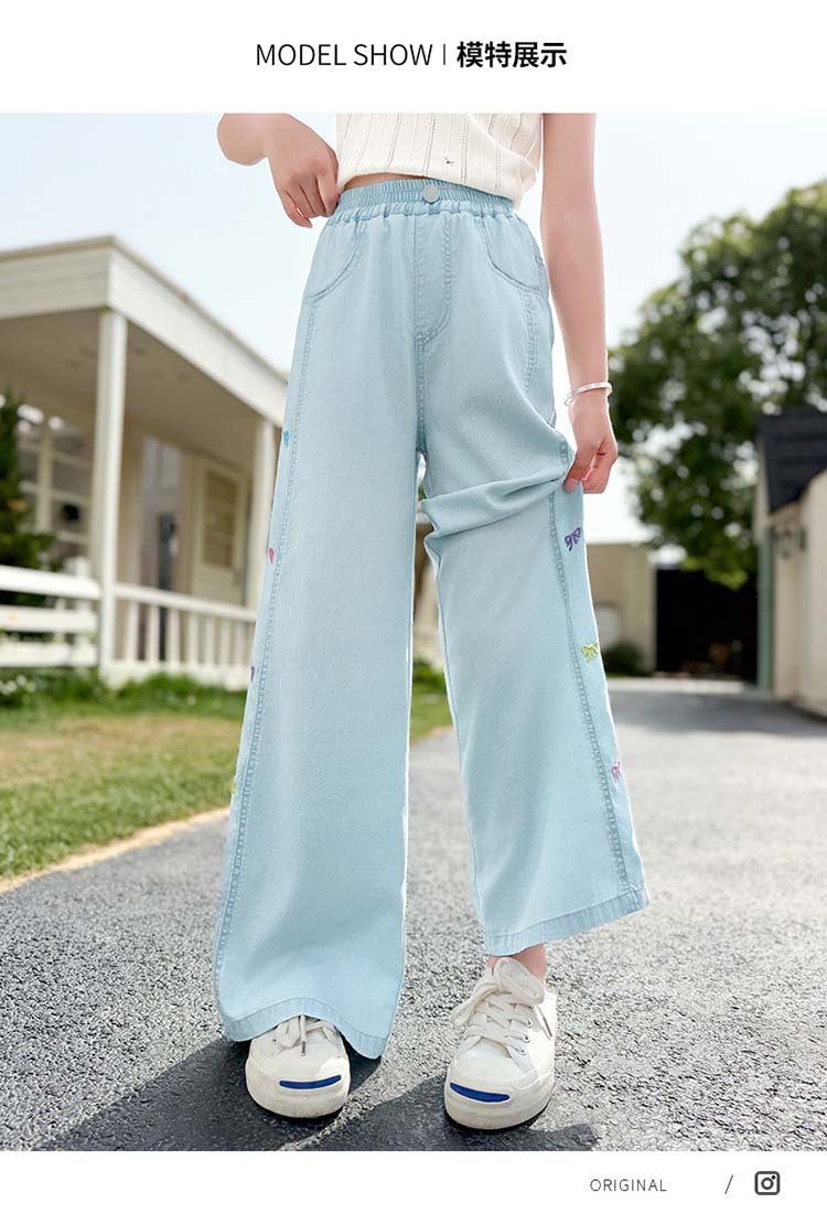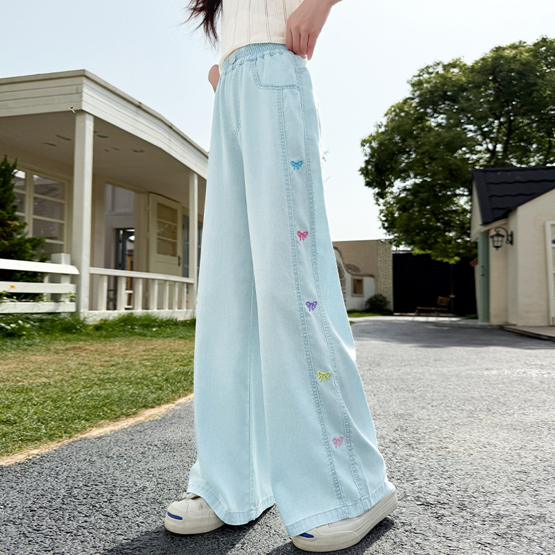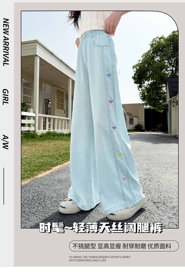 여아 바지 여름 얇은 2025 새로운 스타일 여아 와이드 팬츠 아동 여름 시원한 텐셀 청바지 유행스토어 가기