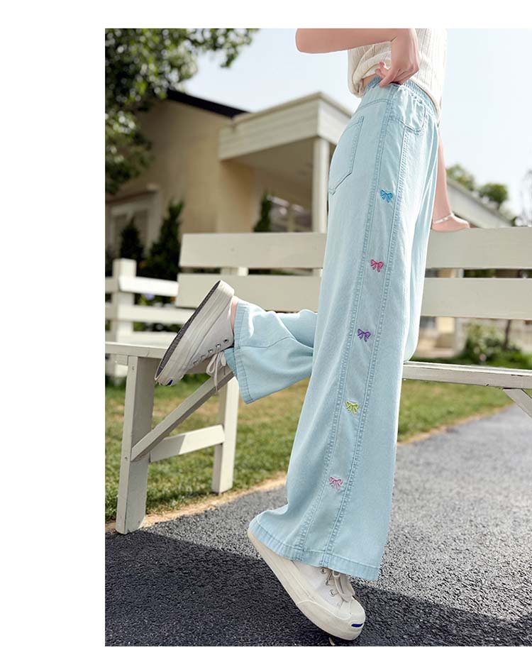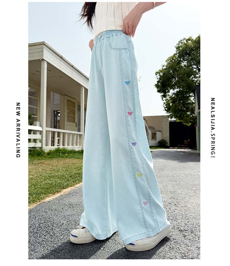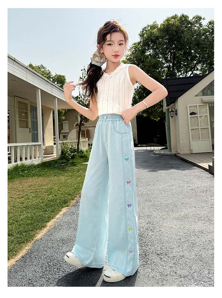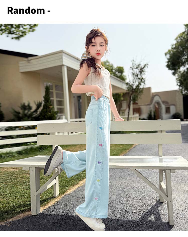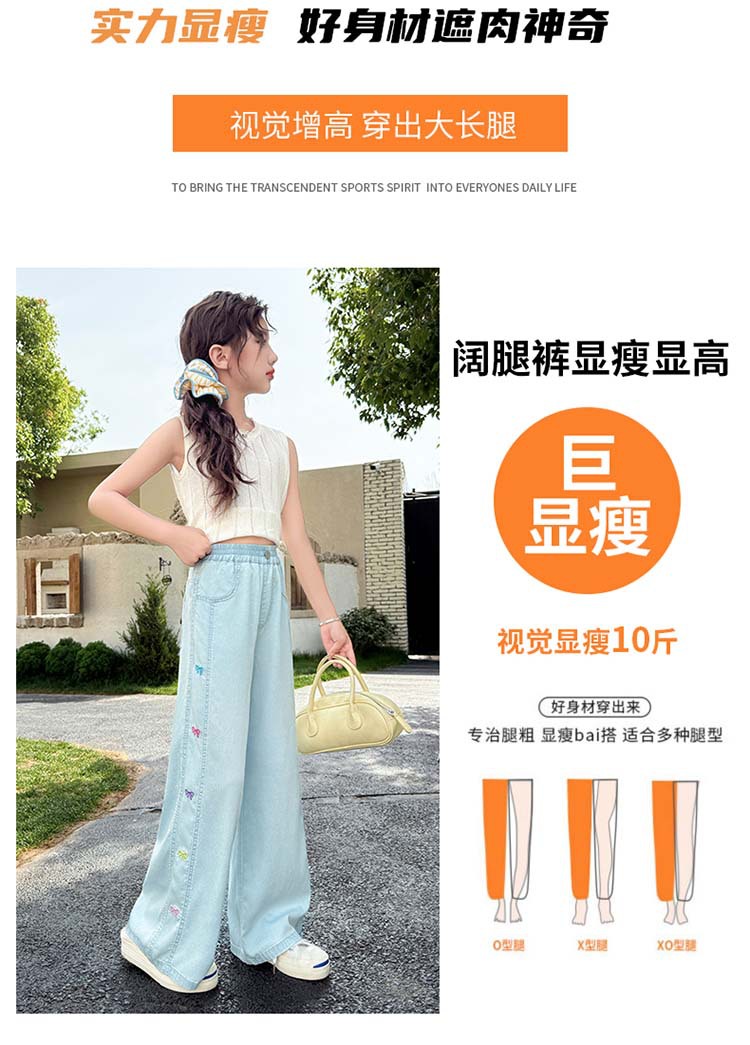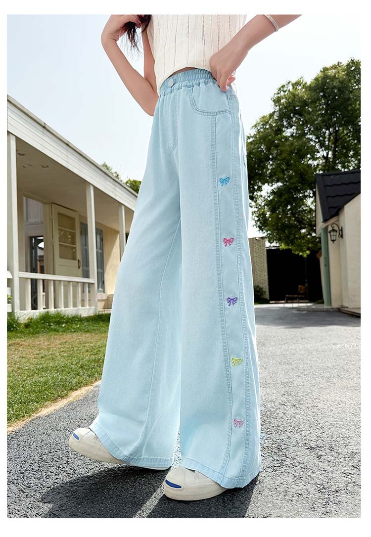 여아 바지 여름 얇은 2025 새로운 스타일 여아 와이드 팬츠 아동 여름 시원한 텐셀 청바지 유행스토어 가기