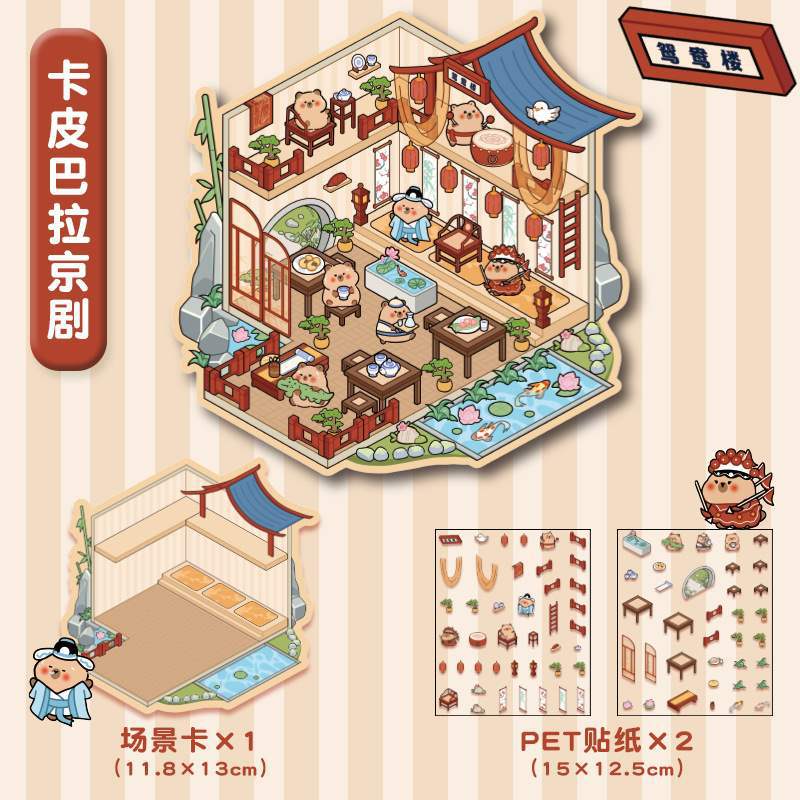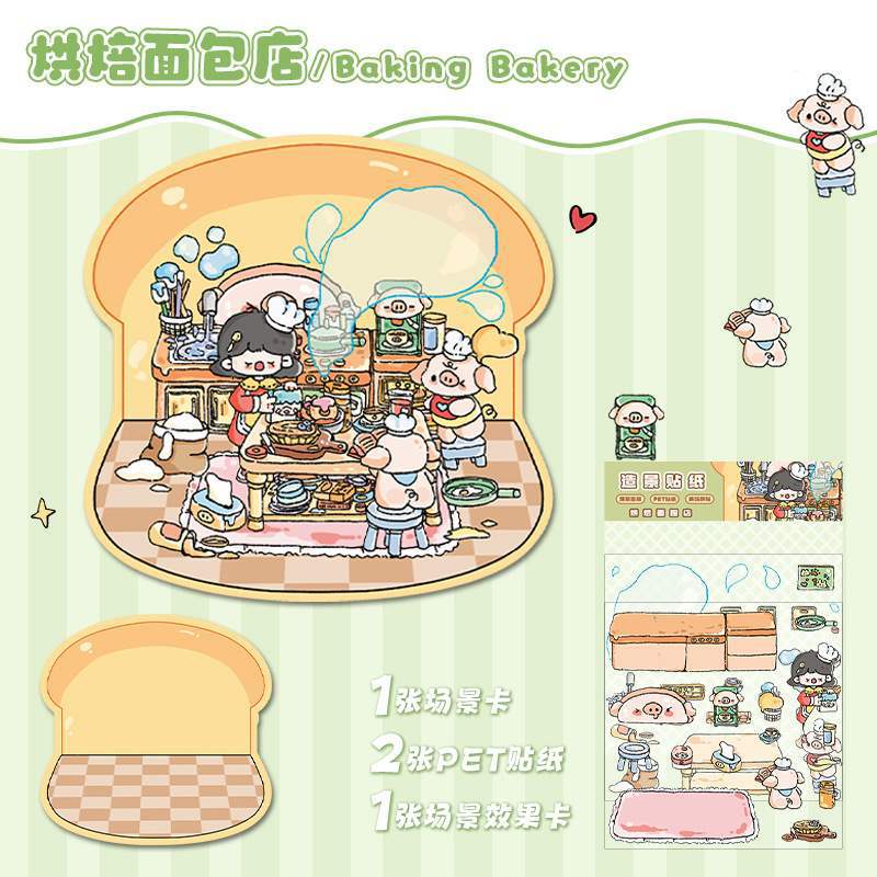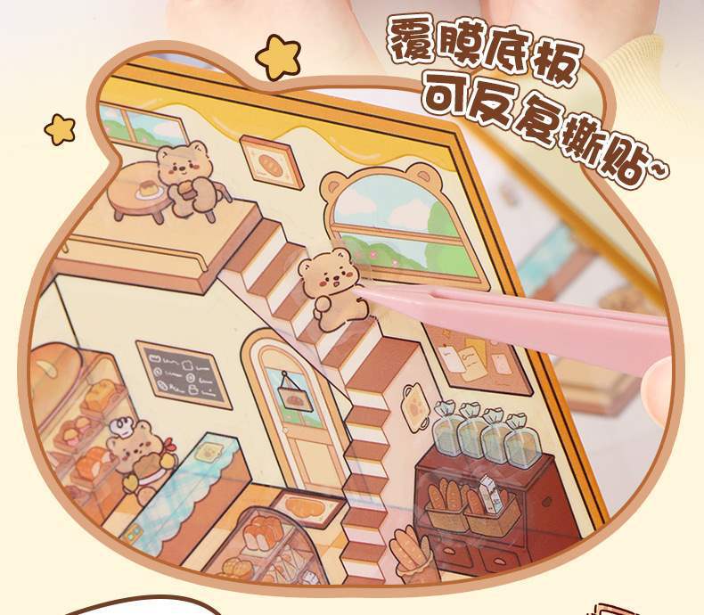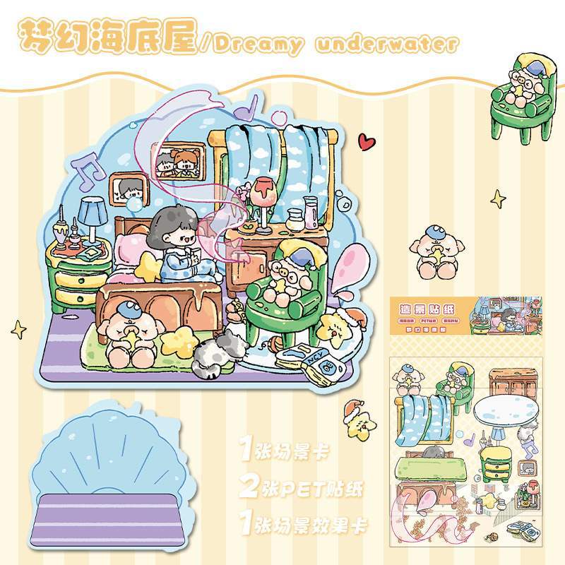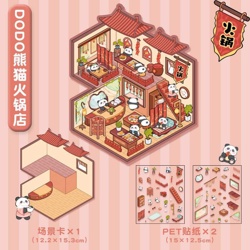 한국 만화 조경 스티커 귀여운 시각적 3D 입체 오두막 작은 빨간 책 감압 조경 장면 핸드북 스티커
