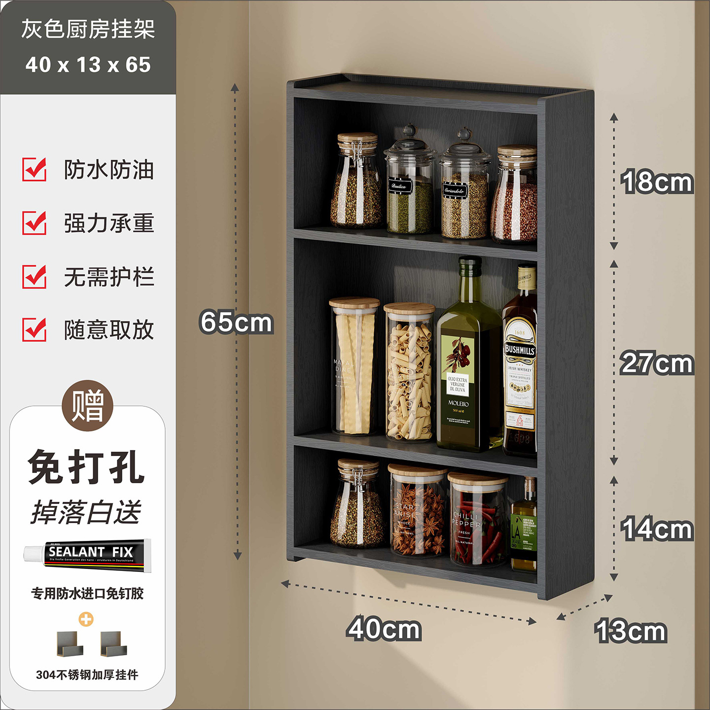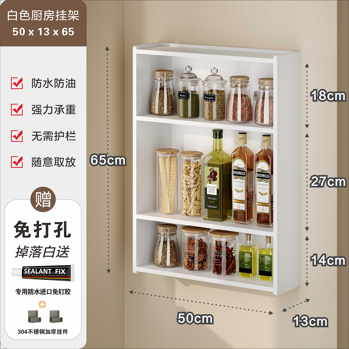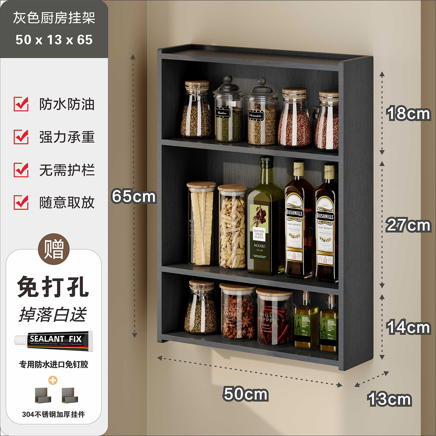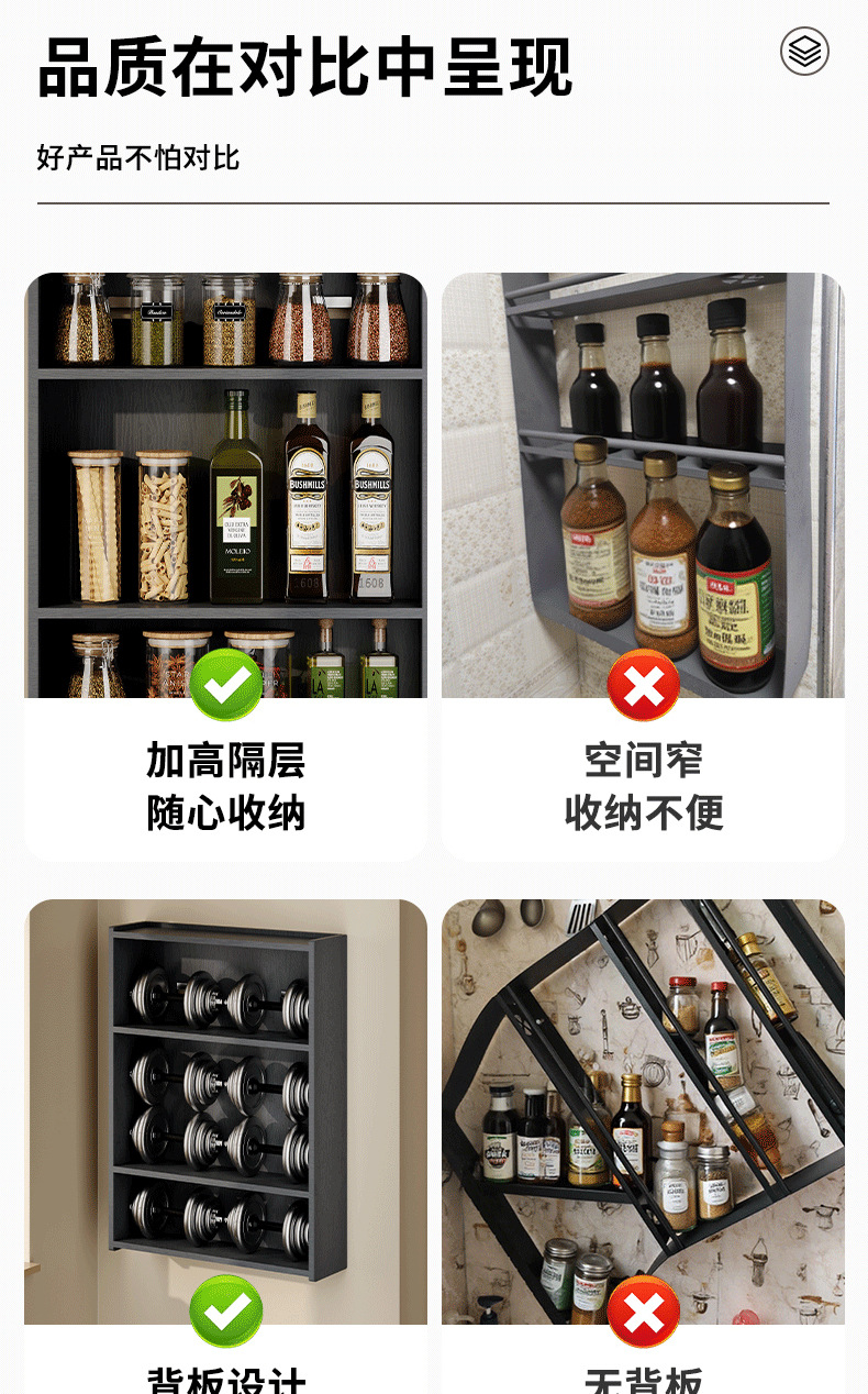 주방 수납 선반, 조미료 병, 기름, 소금, 소스, 식초, 벽걸이형, 다기능 계층형 수납 선반, 무타공