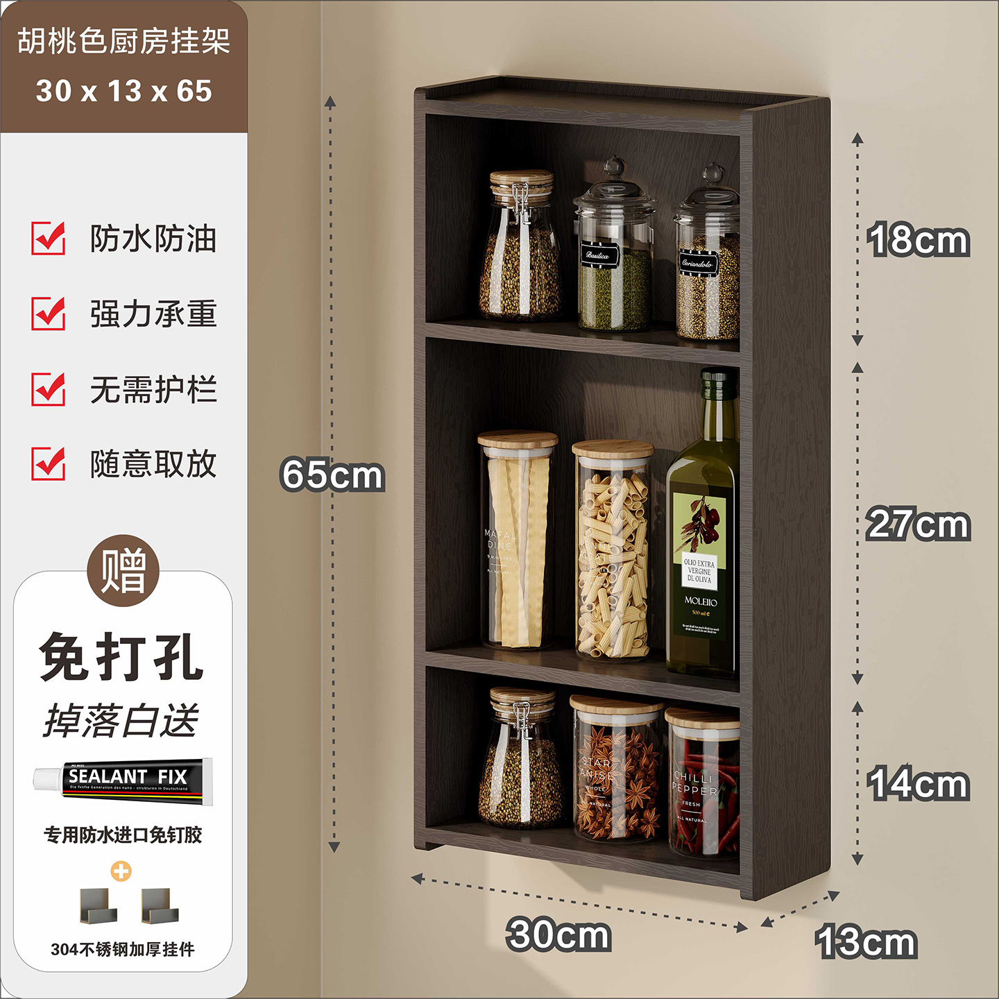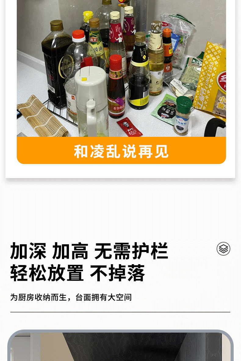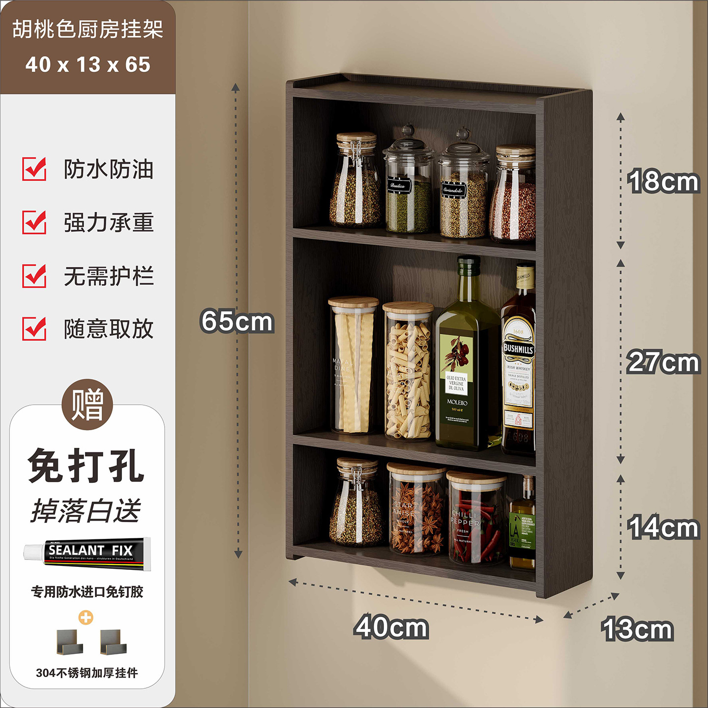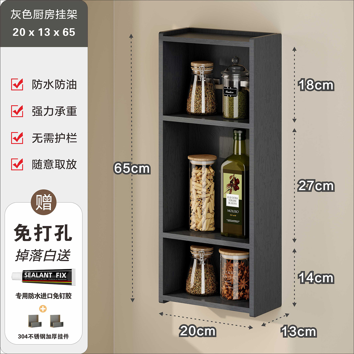 주방 수납 선반, 조미료 병, 기름, 소금, 소스, 식초, 벽걸이형, 다기능 계층형 수납 선반, 무타공