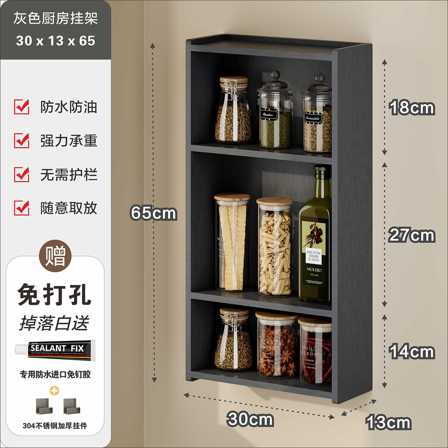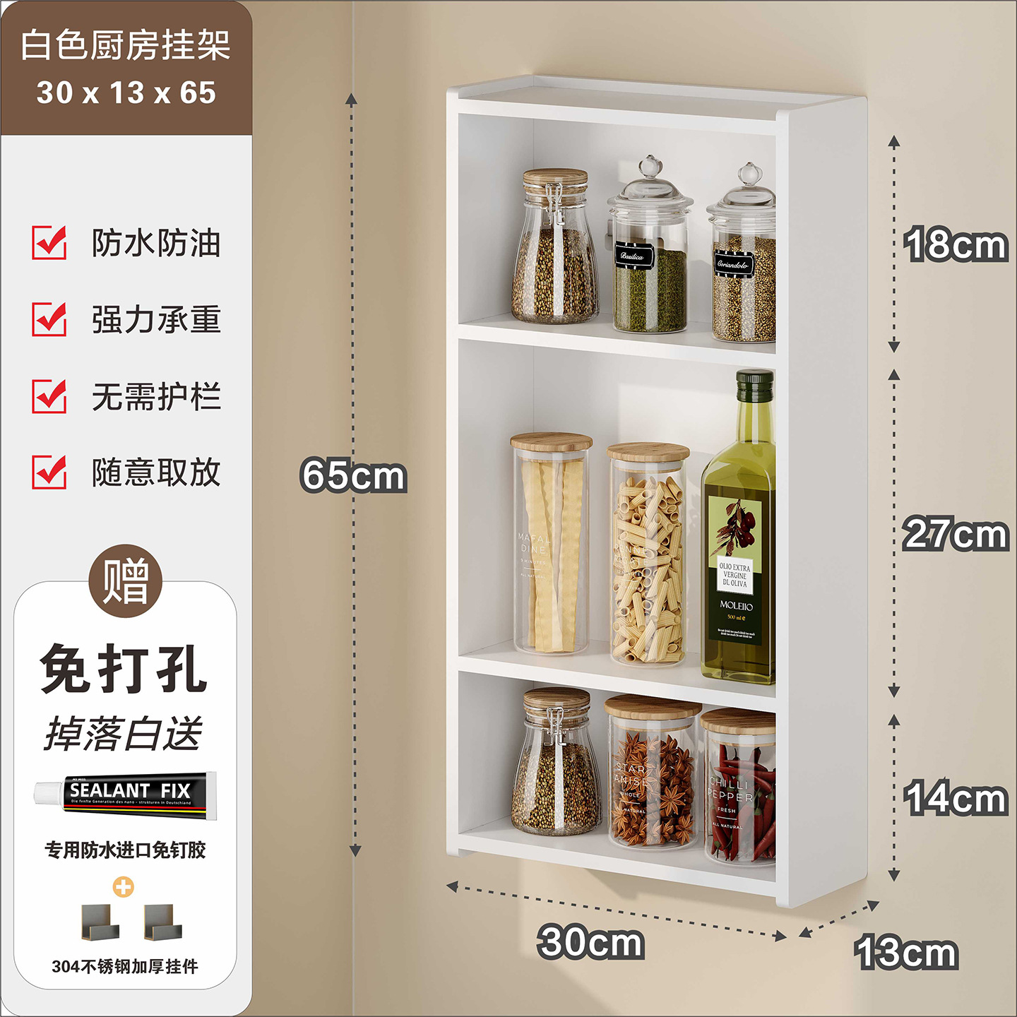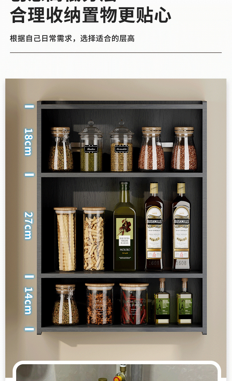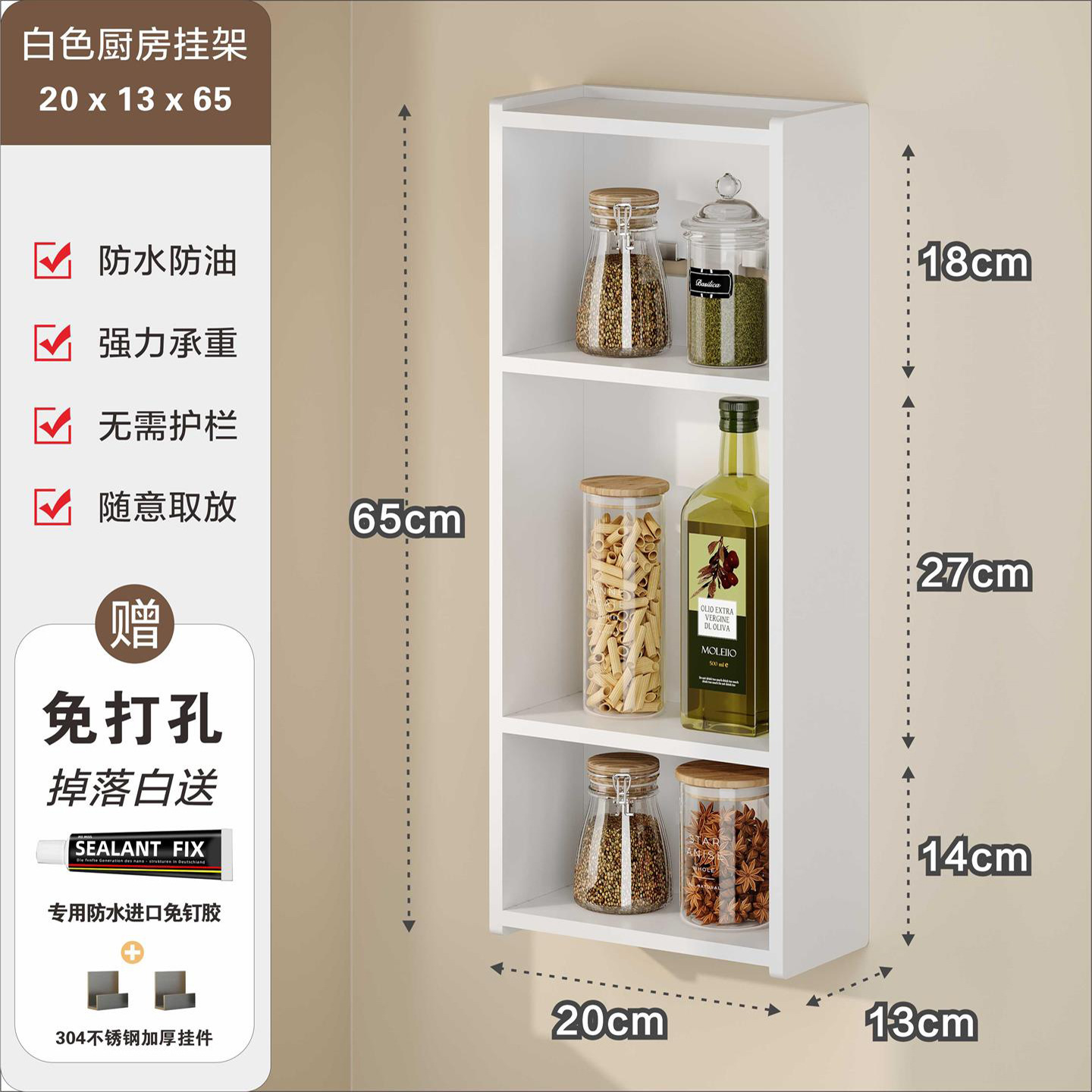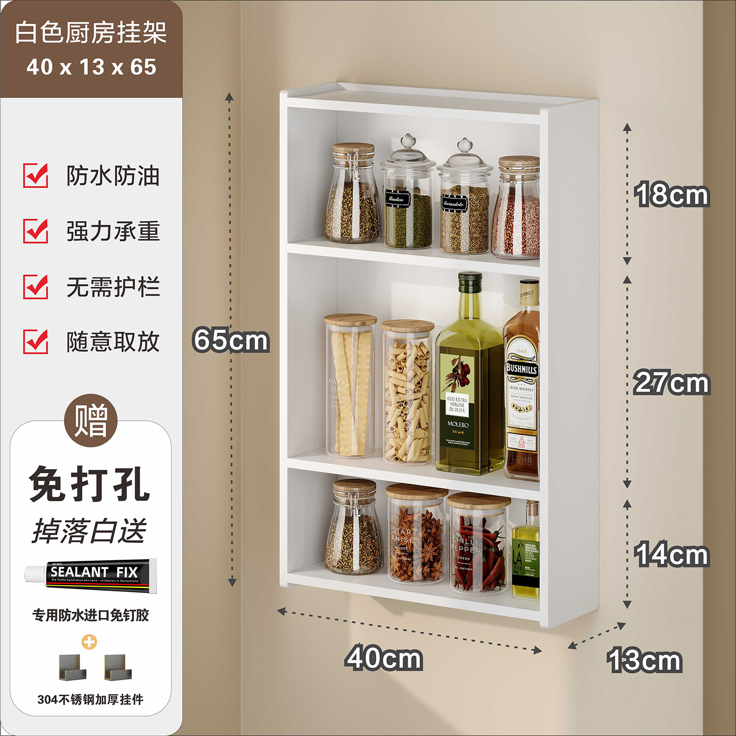 주방 수납 선반, 조미료 병, 기름, 소금, 소스, 식초, 벽걸이형, 다기능 계층형 수납 선반, 무타공스토어 가기