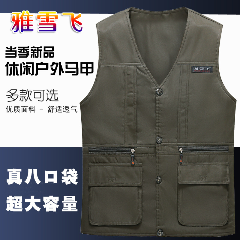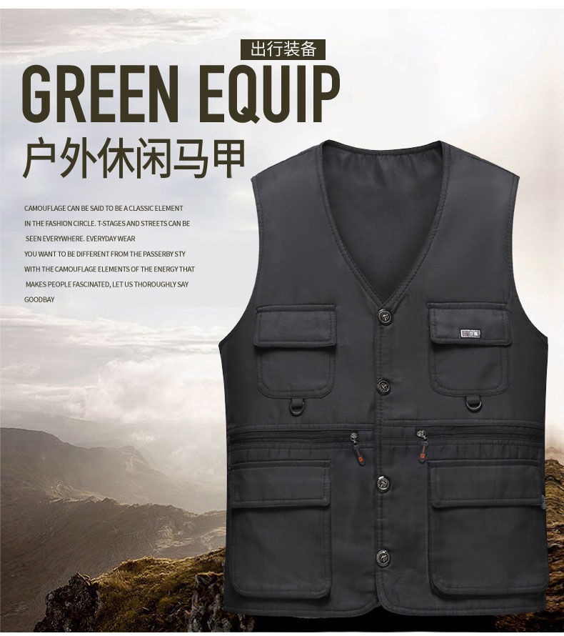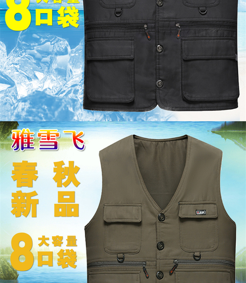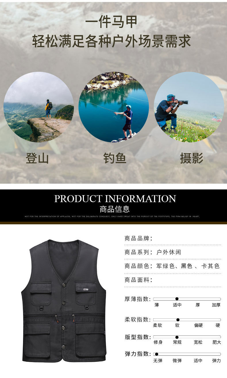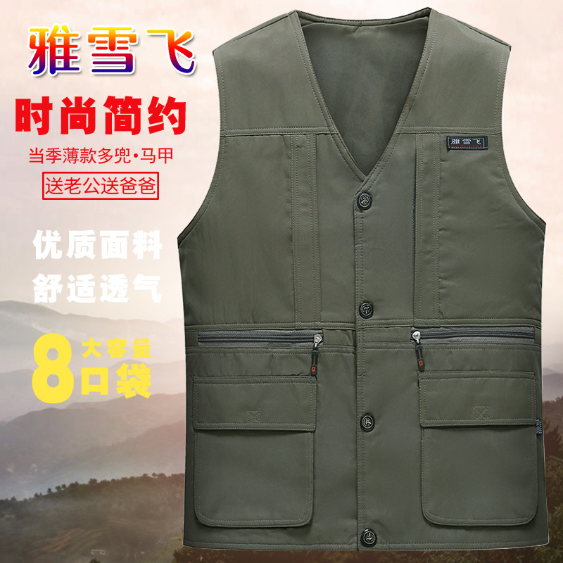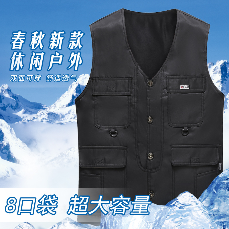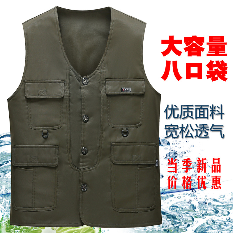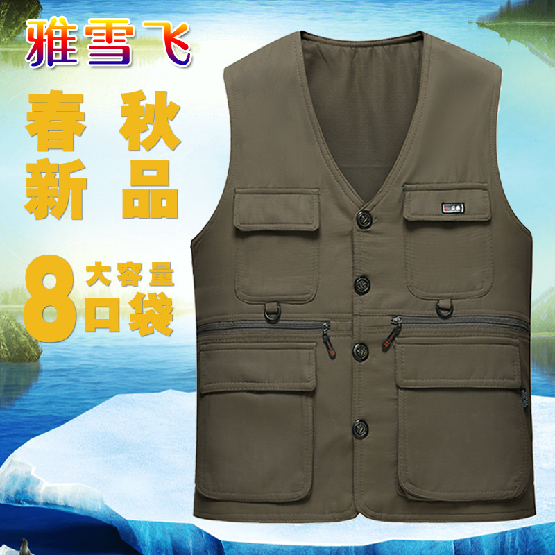 봄과 가을 야외 레저 멀티 포켓 조끼 중년 및 노인 여행 사진 낚시 조끼 남자 Kanshi Hua스토어 가기