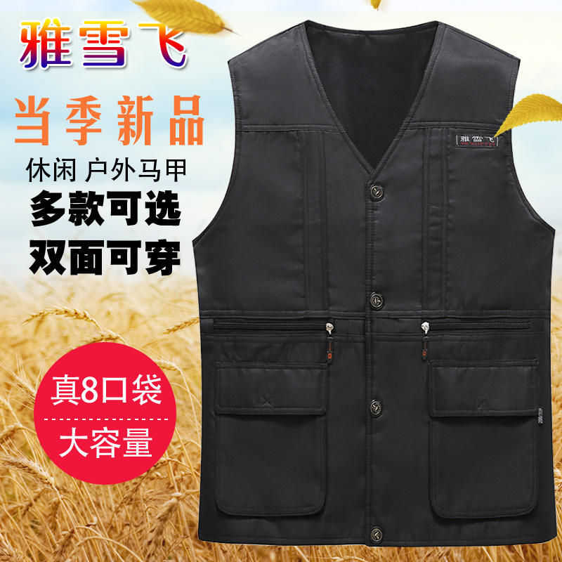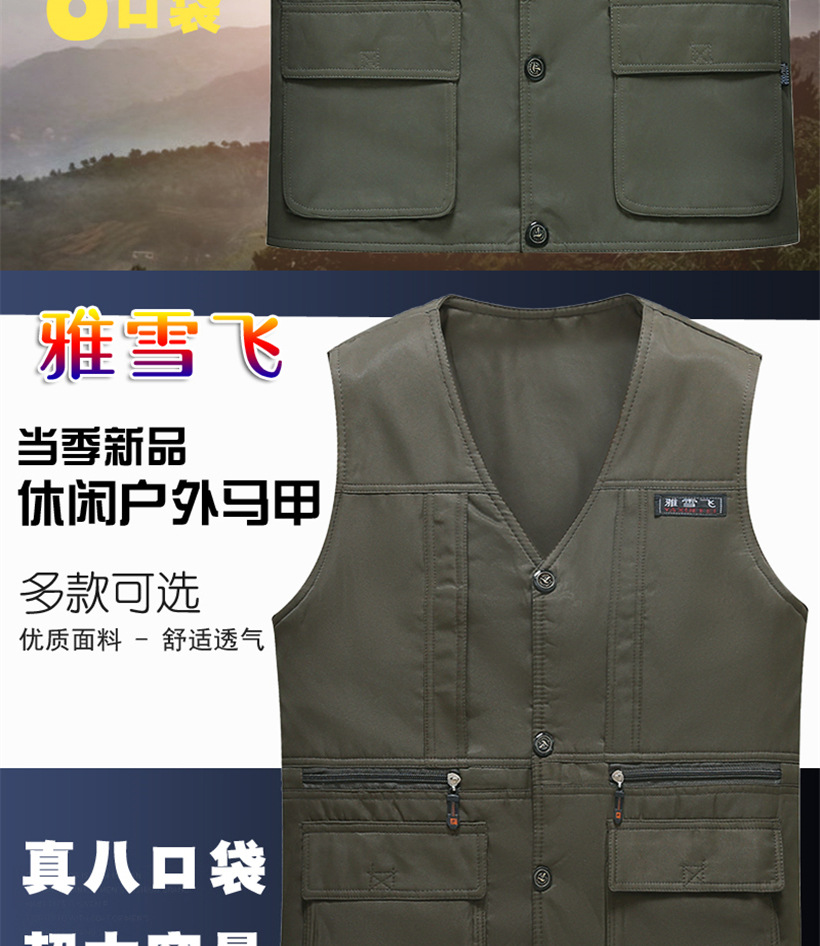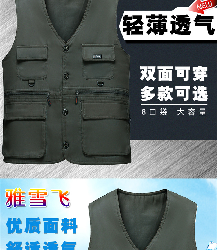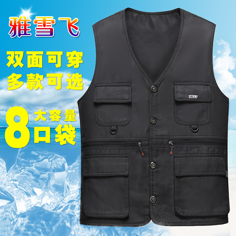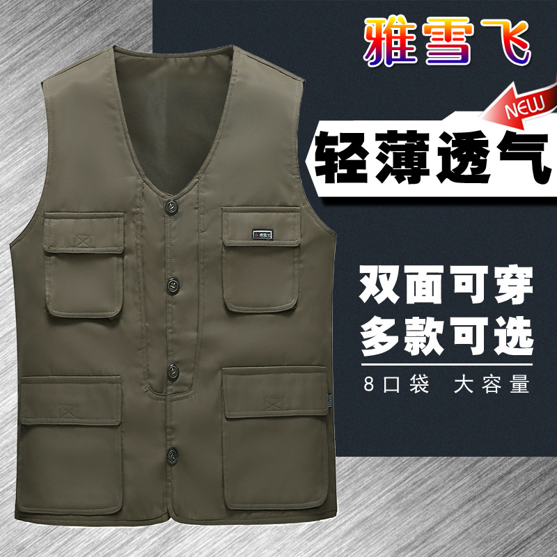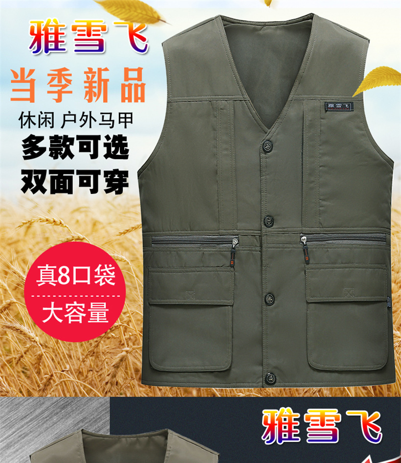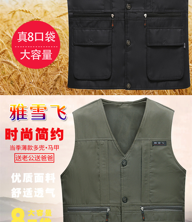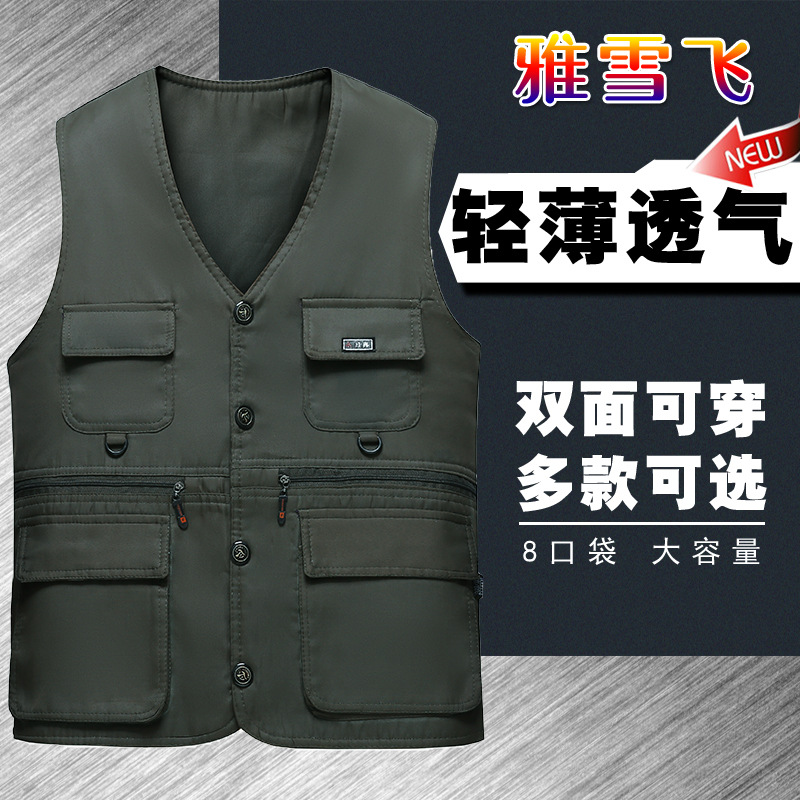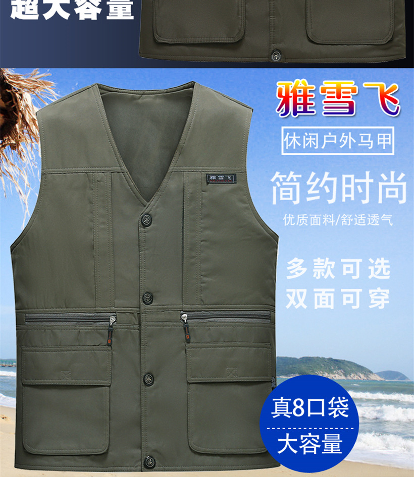 봄과 가을 야외 레저 멀티 포켓 조끼 중년 및 노인 여행 사진 낚시 조끼 남자 Kanshi Hua스토어 가기