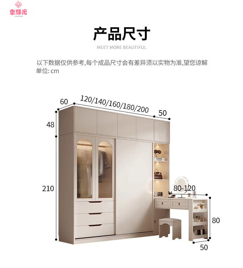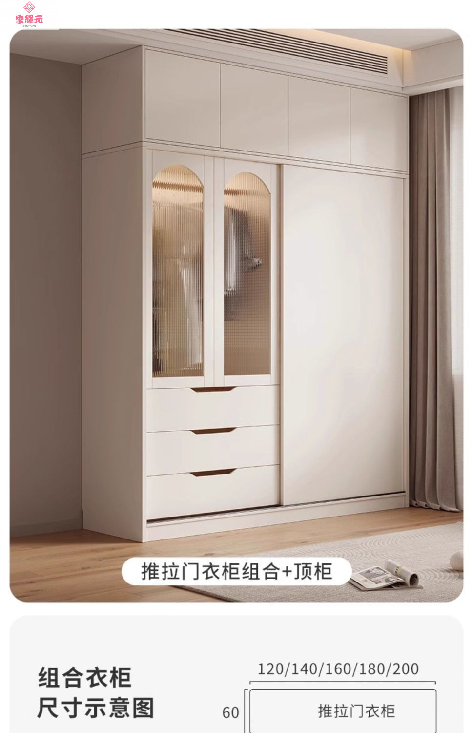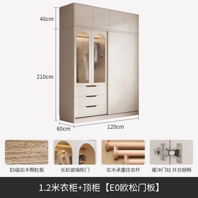 • 1.2m 옷장 + 사이드 캐비닛 + 상단 캐비닛 [E0 유럽 소나무 도어 패널]