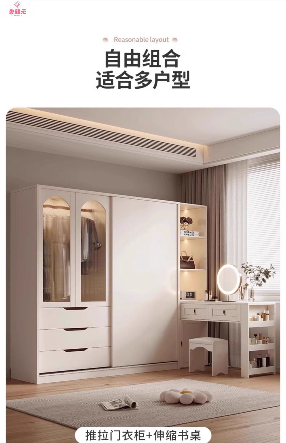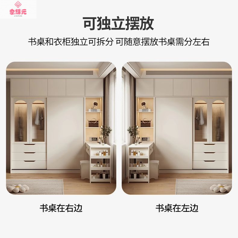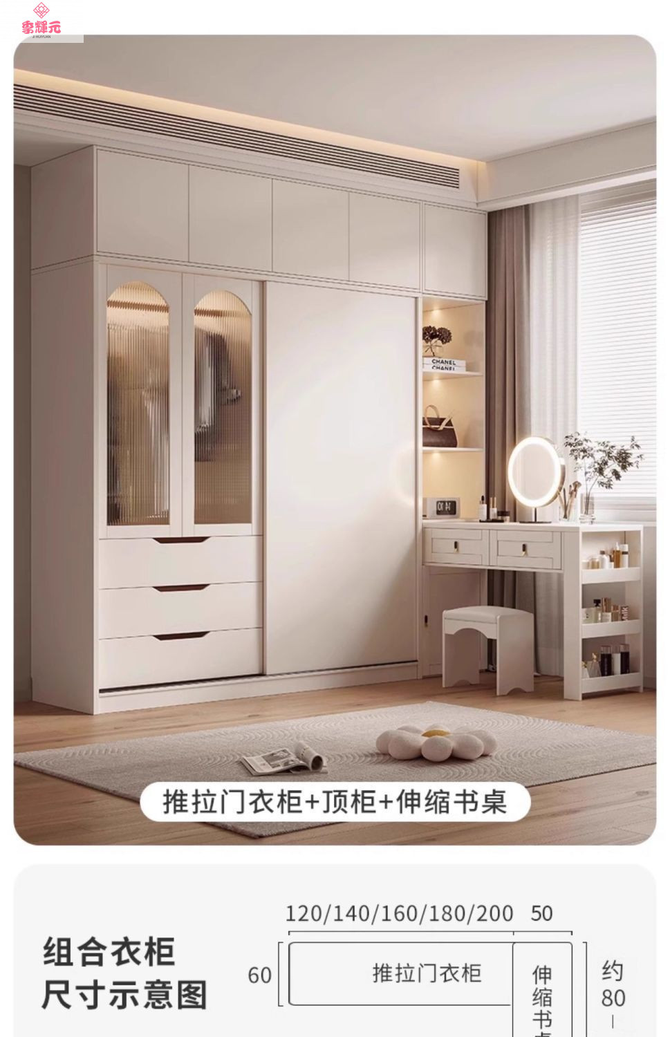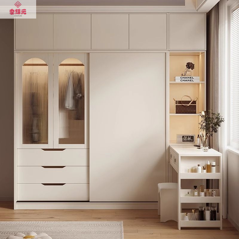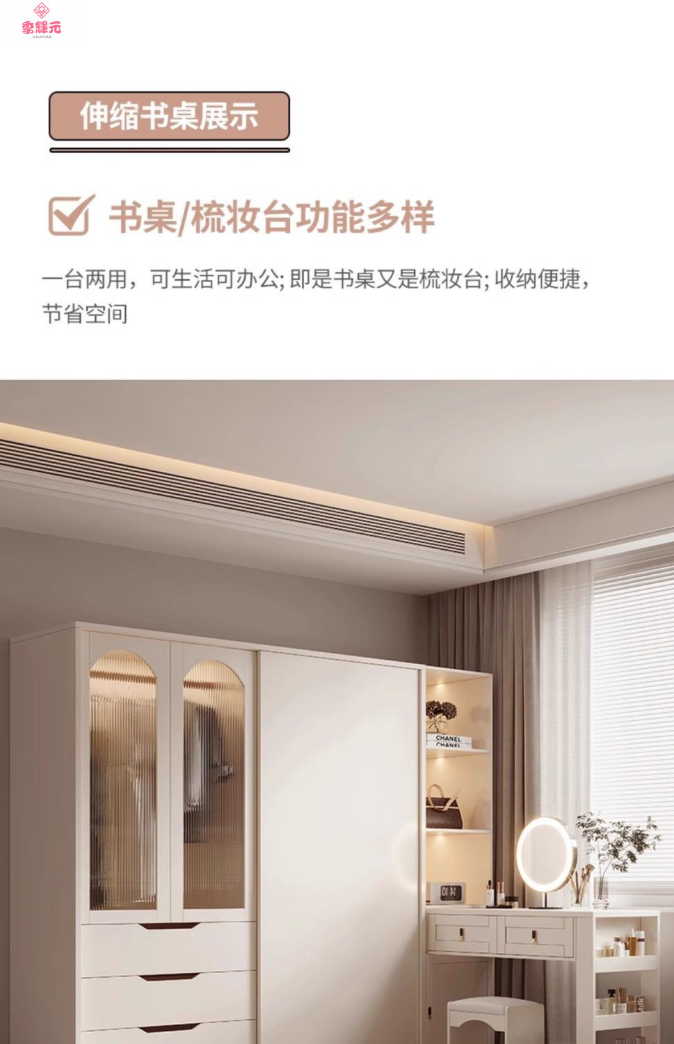 프렌치 크림 스타일 옷장 홈 침실 라이트 럭셔리 대형 옷장 수납 화장대 일체형 책상 일체형 슬라이딩 도어