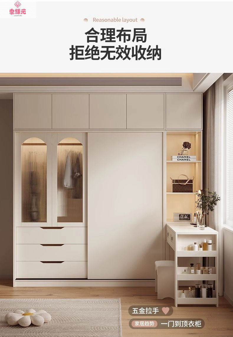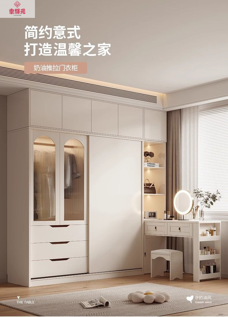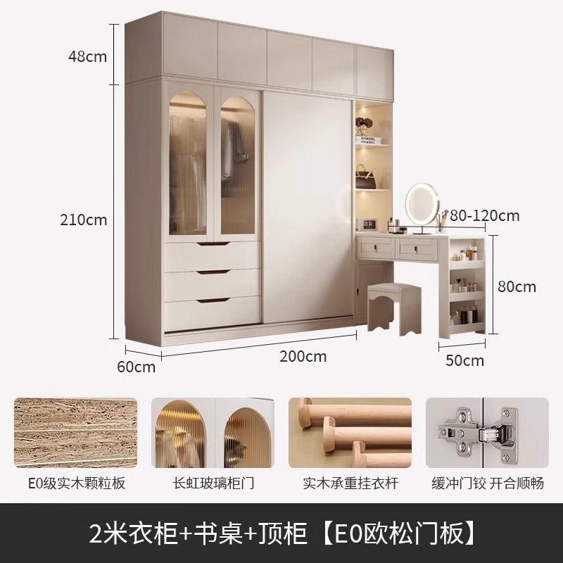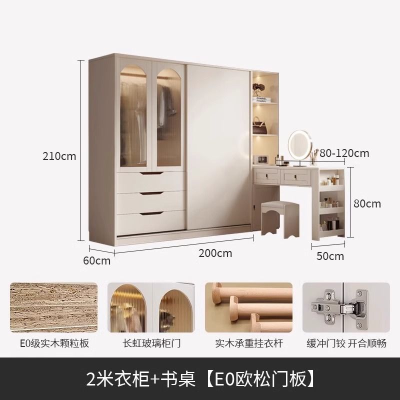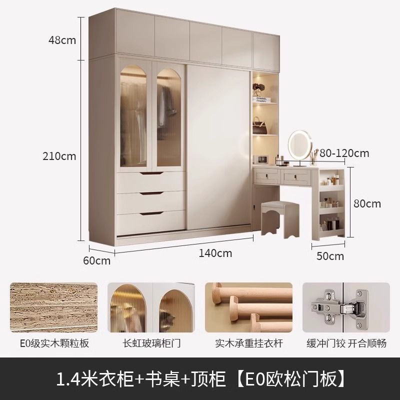 프렌치 크림 스타일 옷장 홈 침실 라이트 럭셔리 대형 옷장 수납 화장대 일체형 책상 일체형 슬라이딩 도어