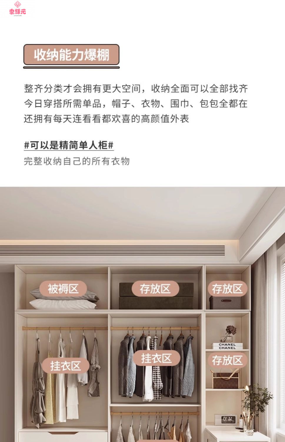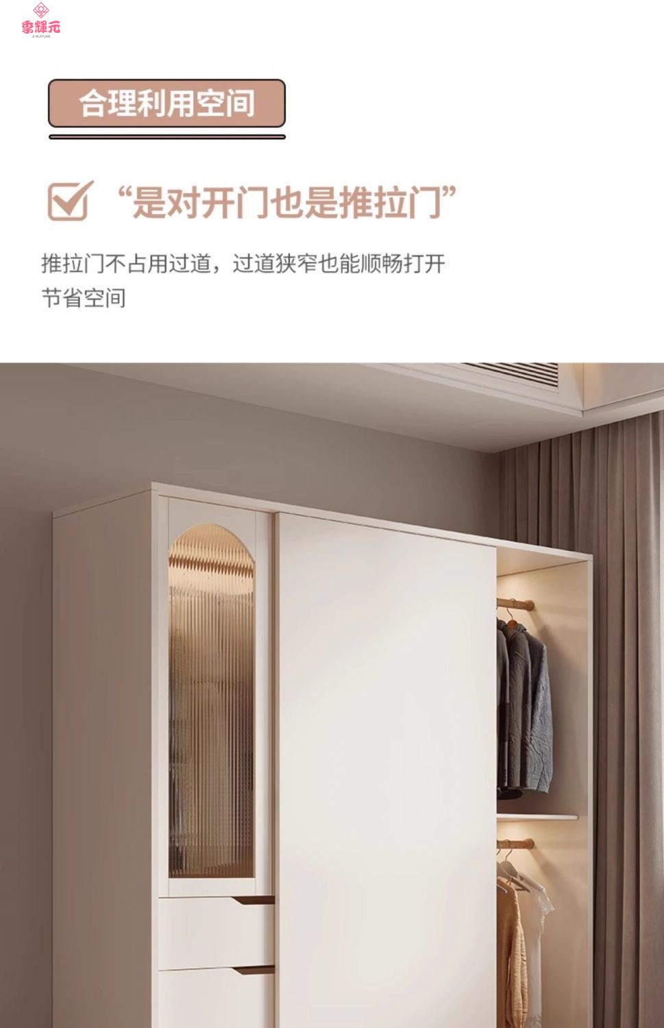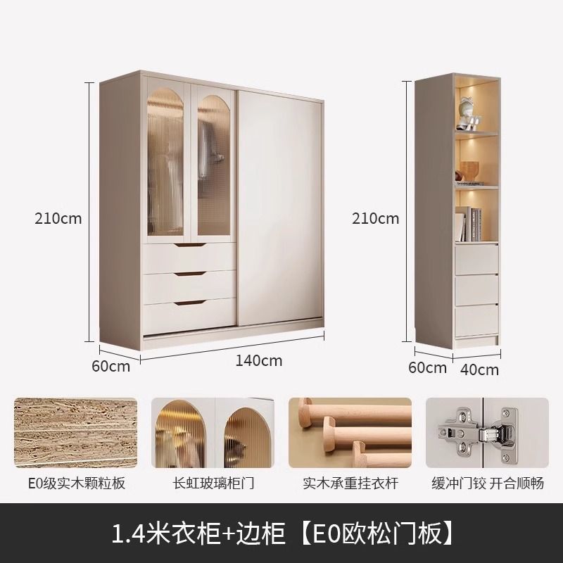 • 1.4m 옷장 + 사이드 캐비닛 [E0 유럽 소나무 도어 패널]