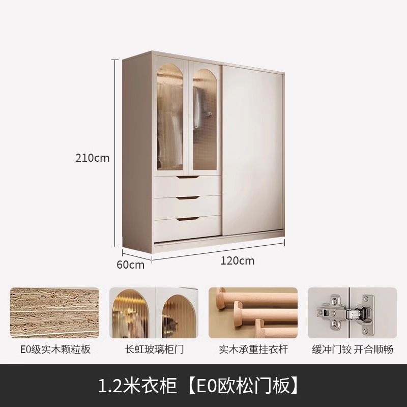 • 1.2m 옷장 + 사이드 캐비닛 [E0 유럽 소나무 도어 패널]