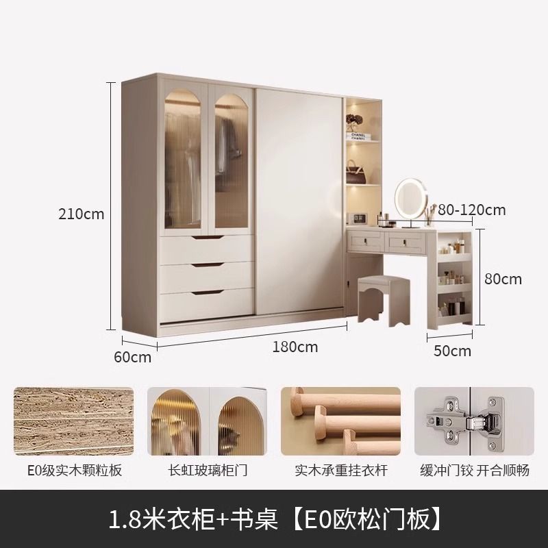 • 1.8m 옷장 + 책상 [E0 유럽 소나무 도어 패널]