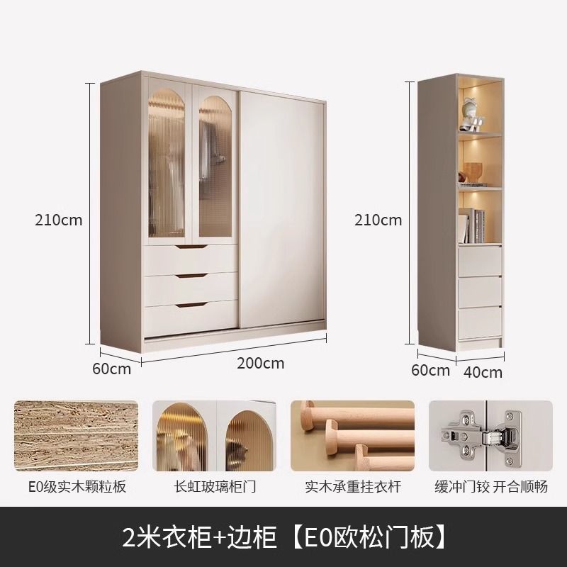 • 1.8m 옷장 + 사이드 캐비닛 [E0 유럽 소나무 도어 패널]