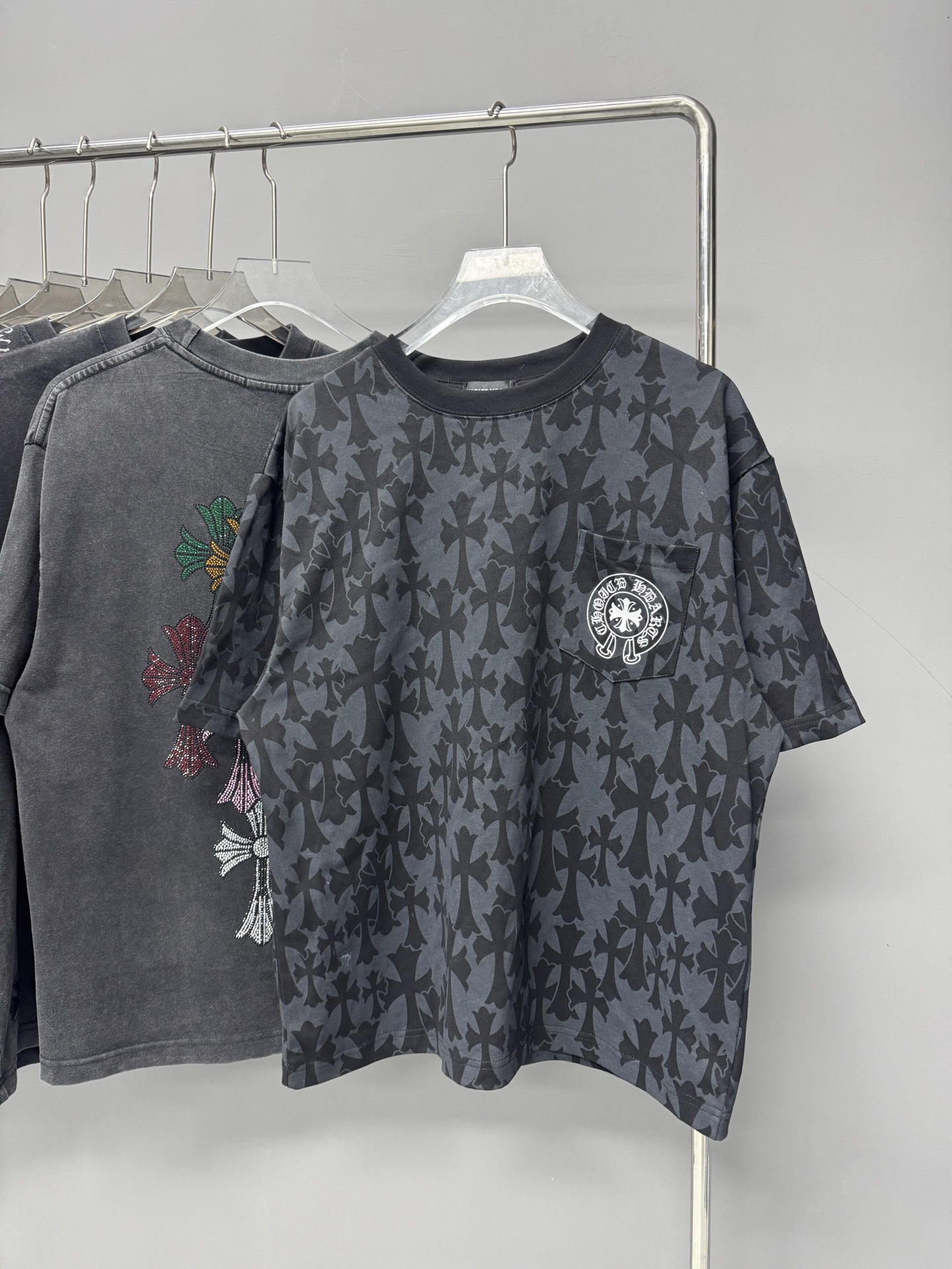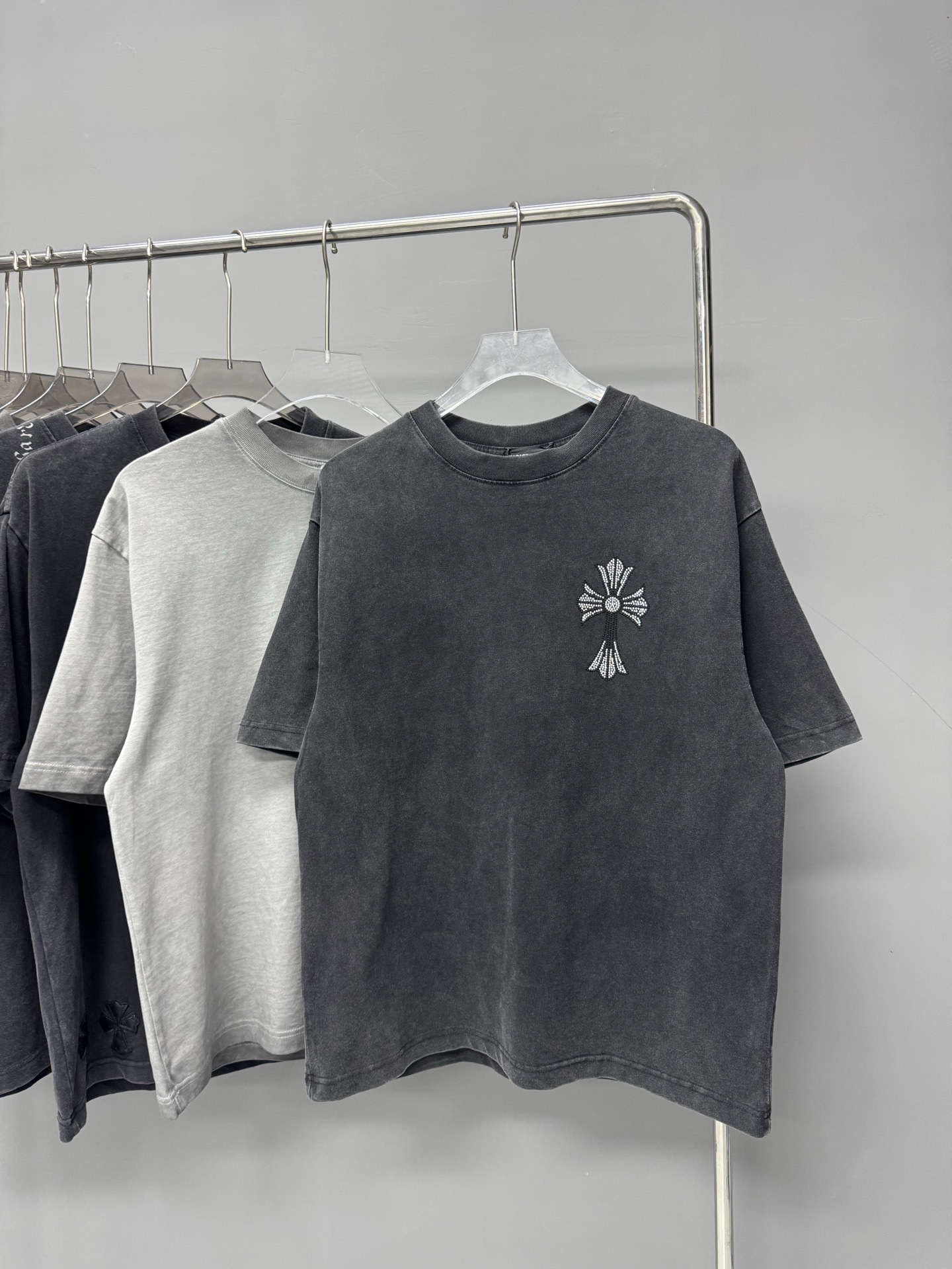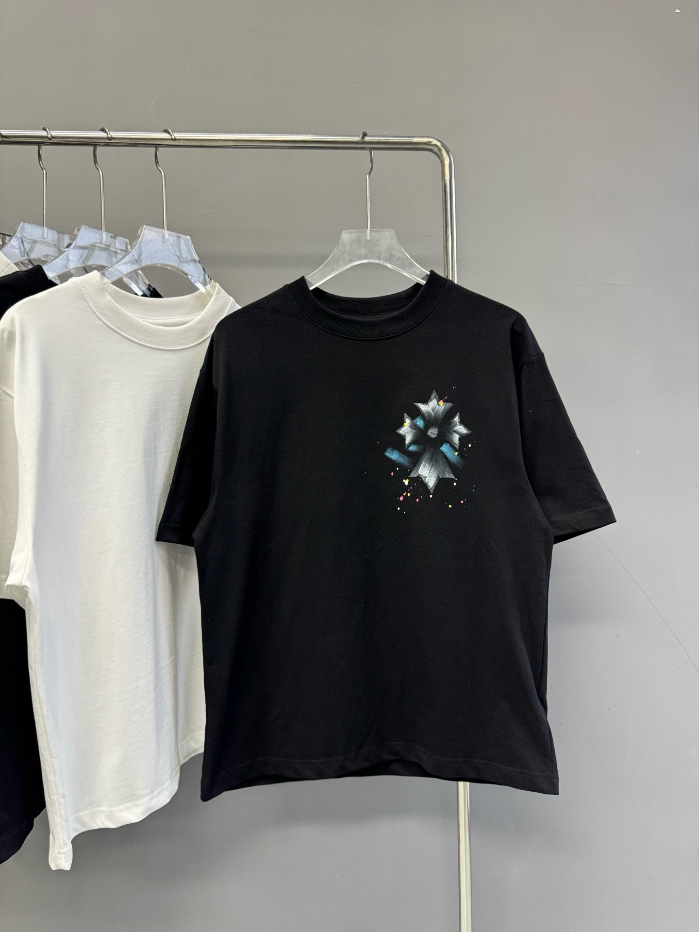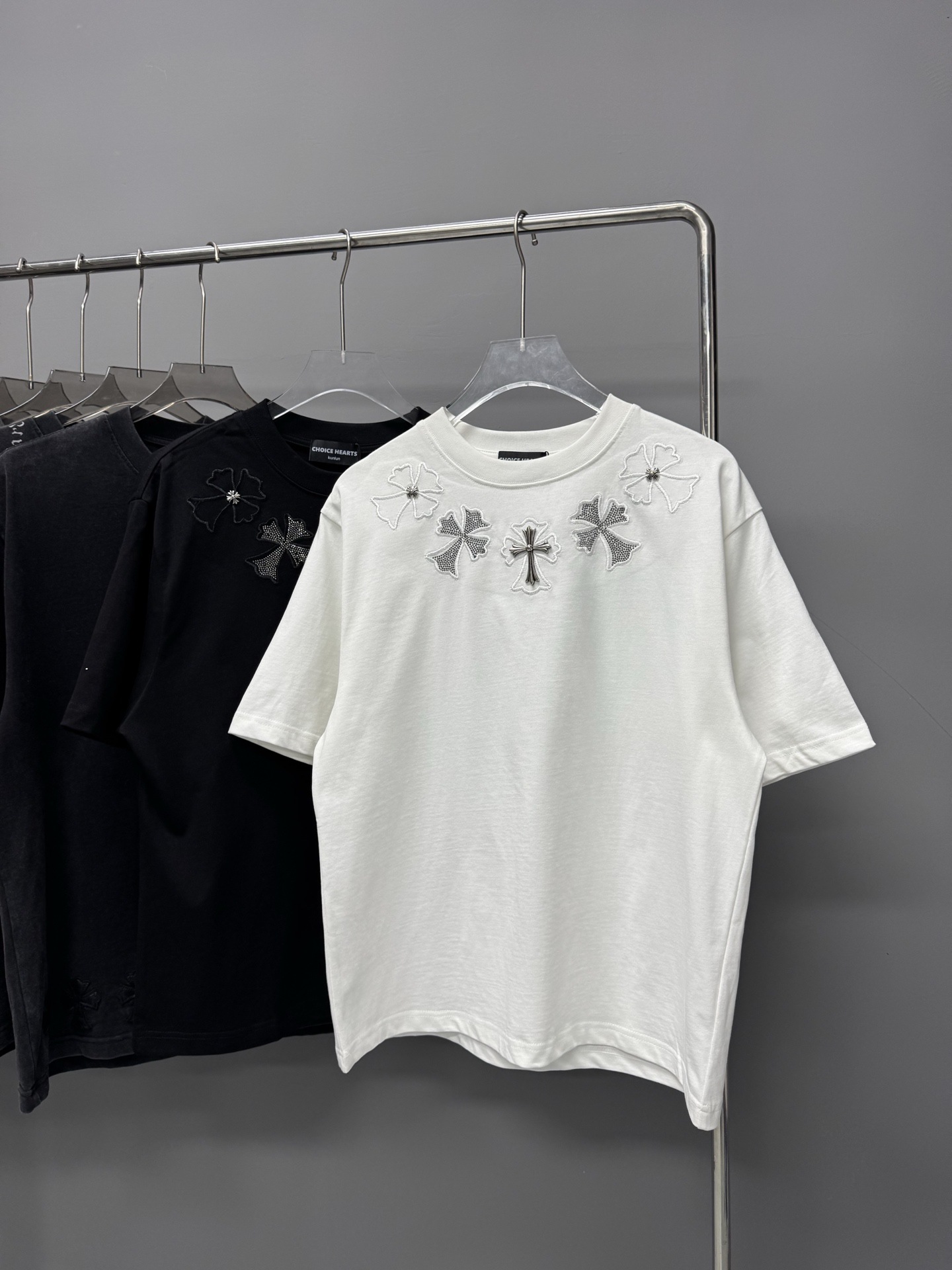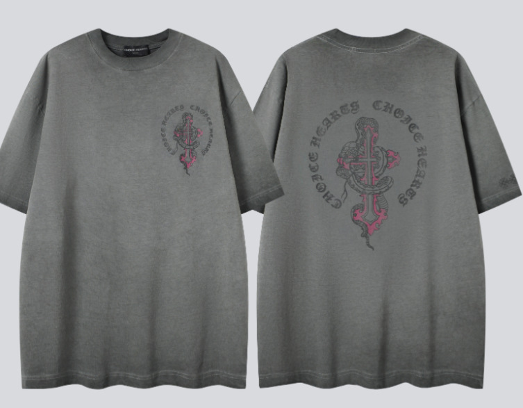 크롬 하트 25s 여름 신작 크롬 하비 워싱 및 디스트레스드 캐주얼 남성용 및 여성용 반팔 티셔츠스토어 가기