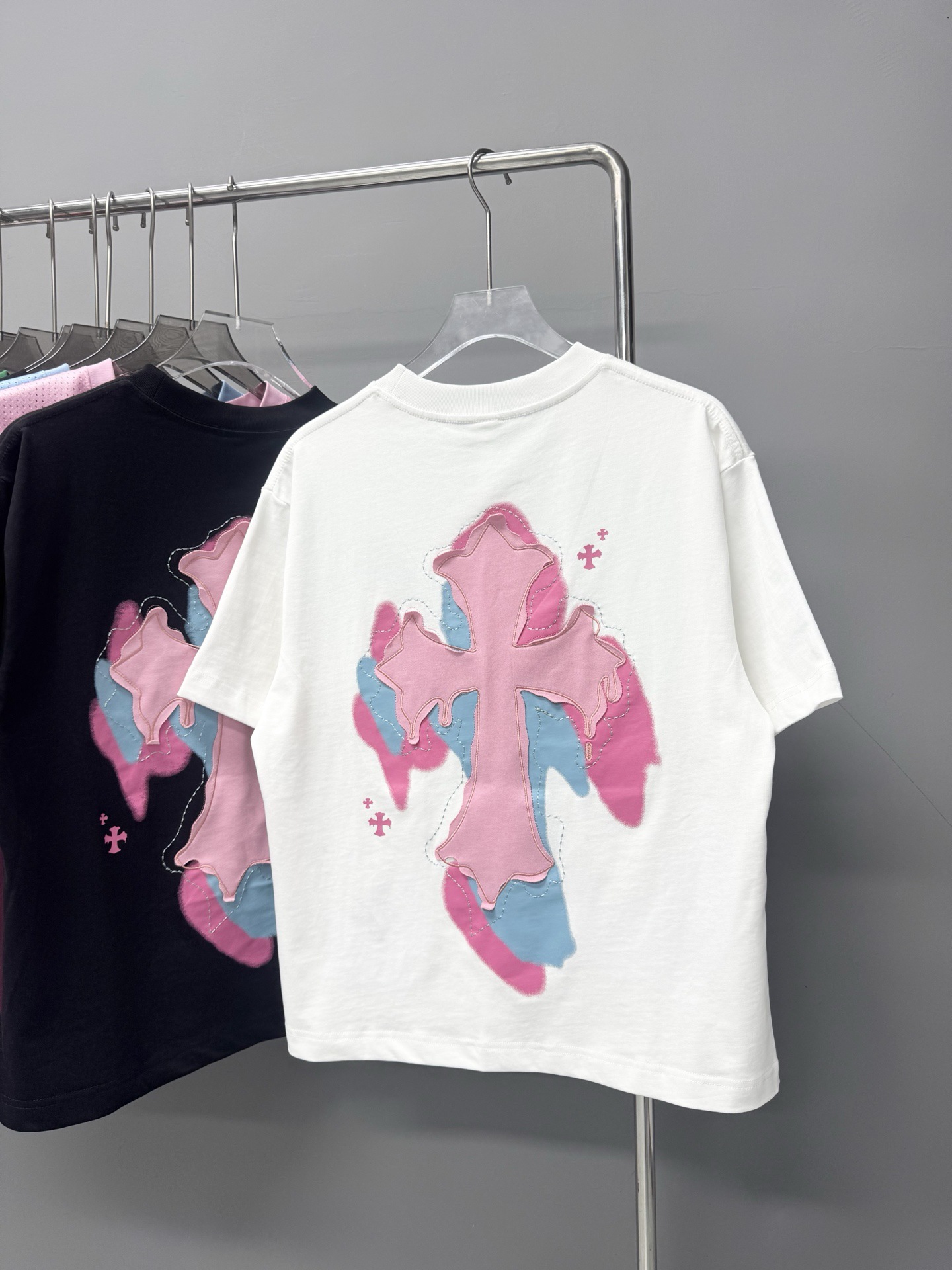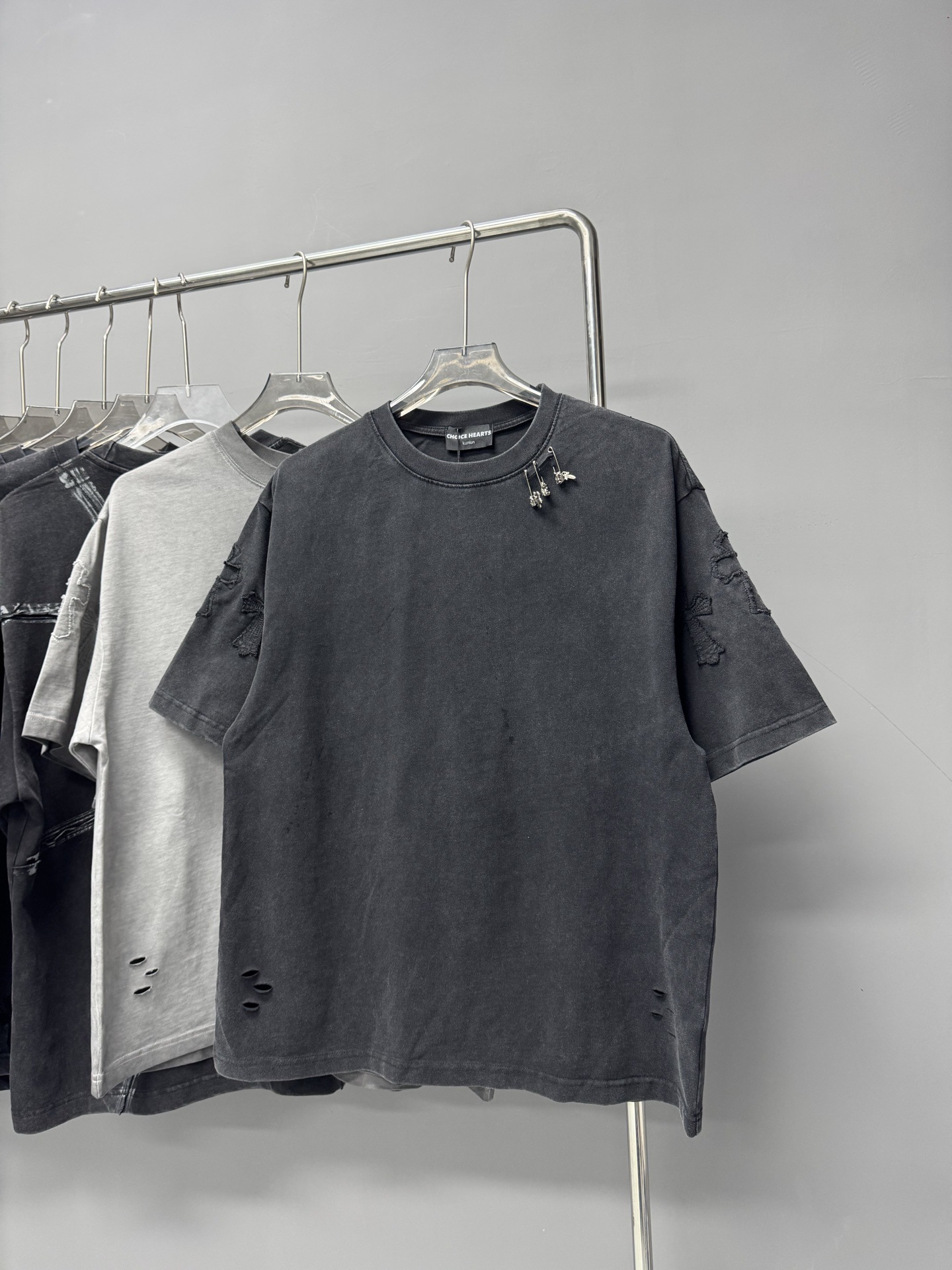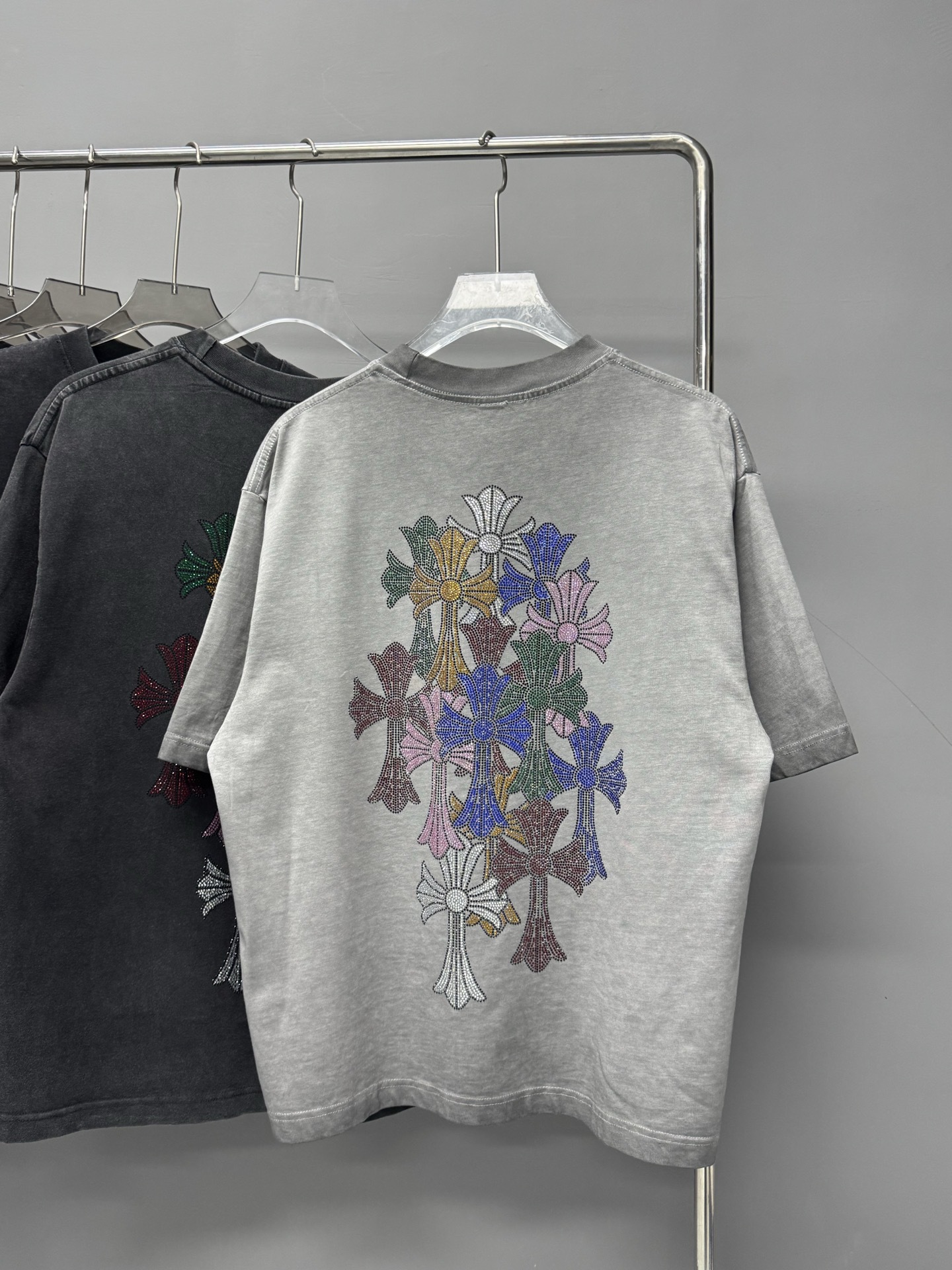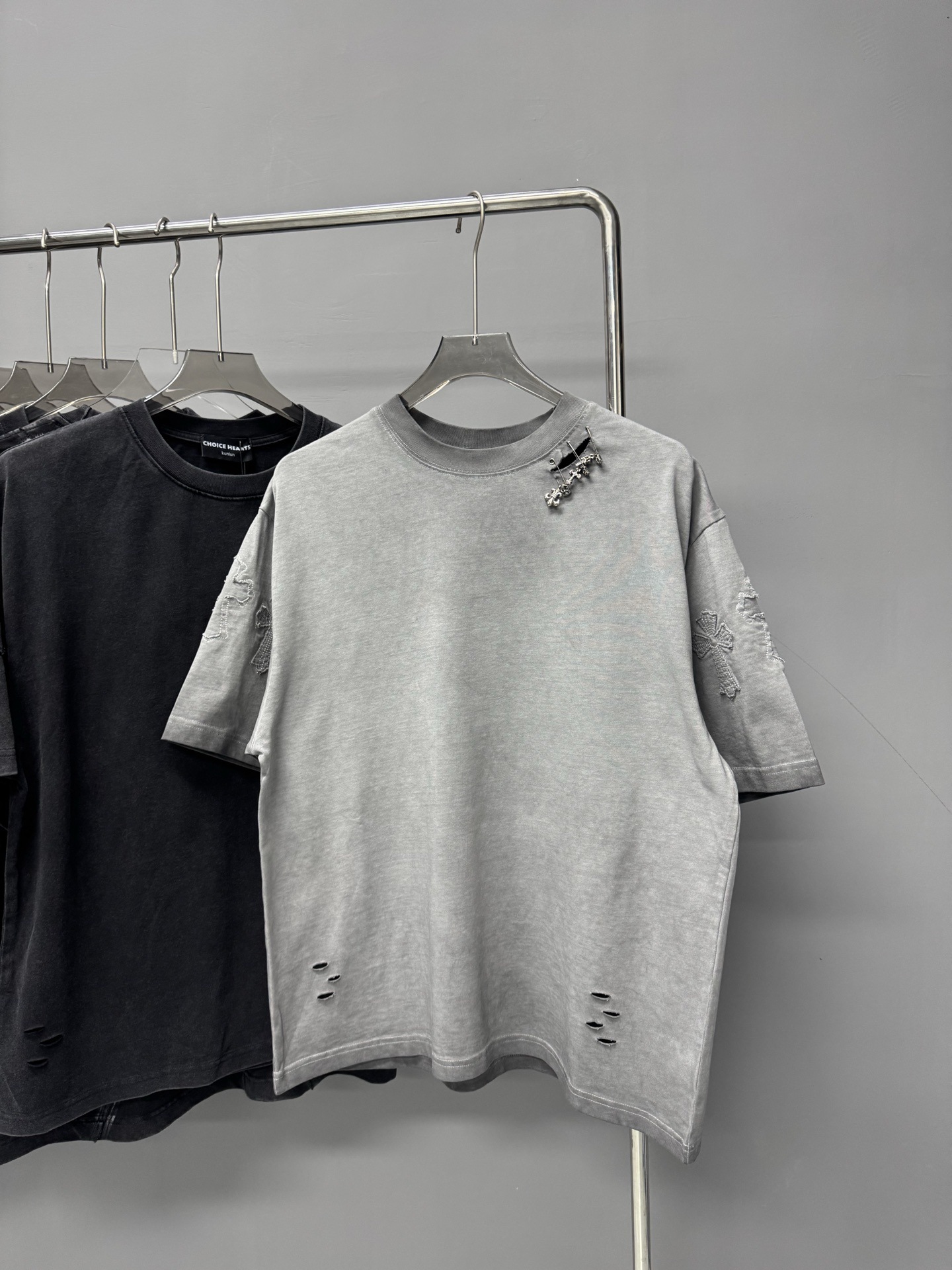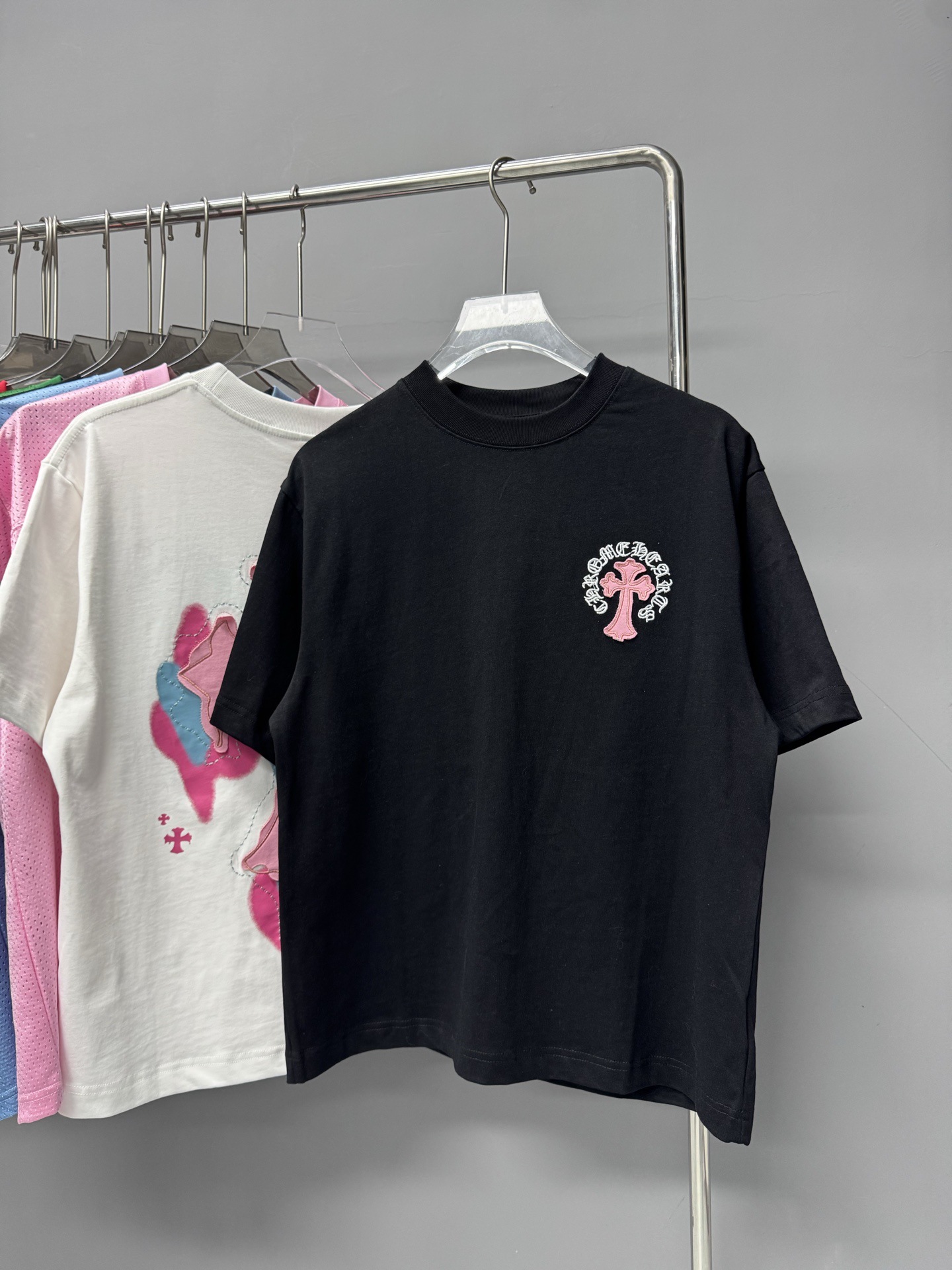 크롬 하트 25s 여름 신작 크롬 하비 워싱 및 디스트레스드 캐주얼 남성용 및 여성용 반팔 티셔츠스토어 가기