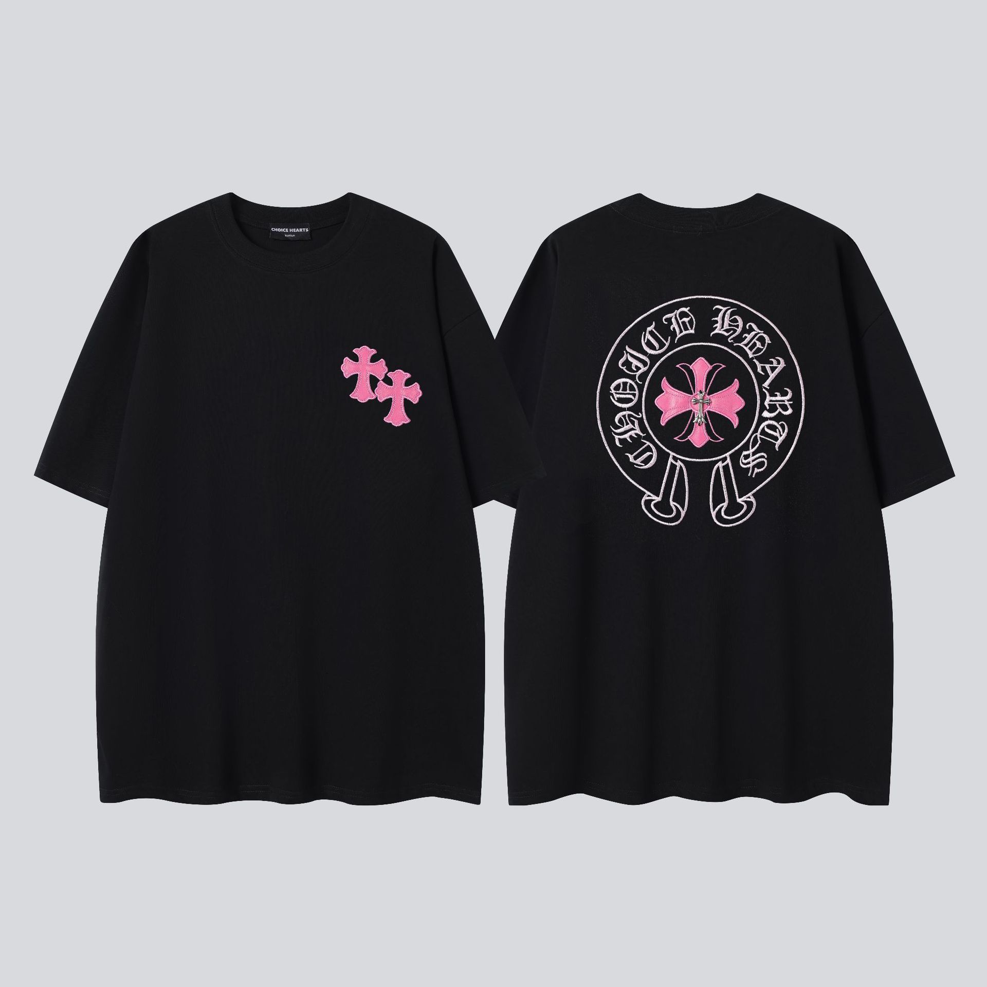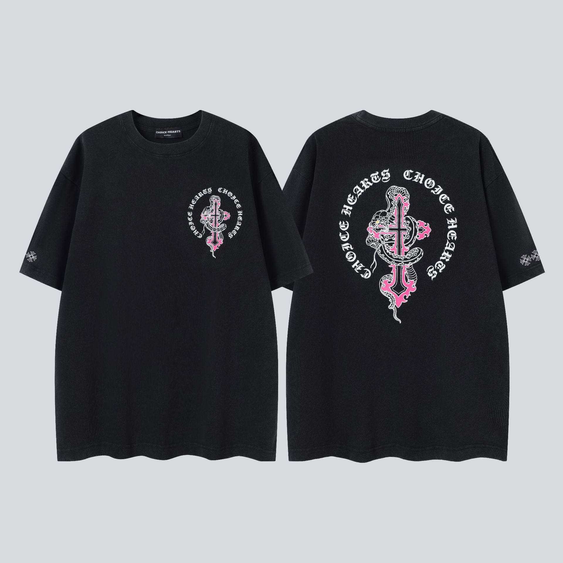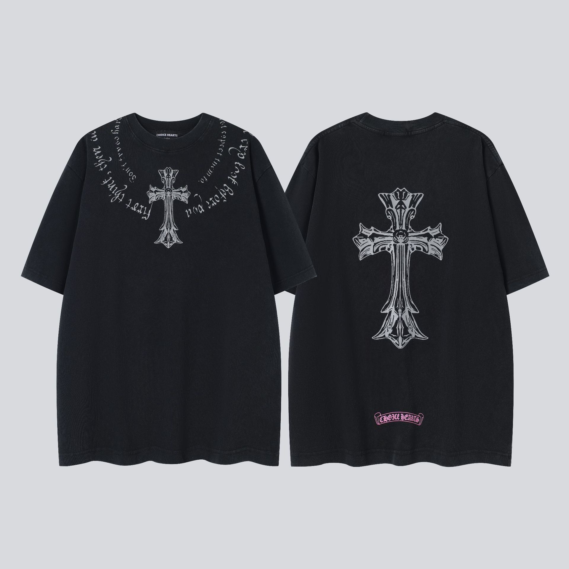 크롬 하트 25s 여름 신작 크롬 하비 워싱 및 디스트레스드 캐주얼 남성용 및 여성용 반팔 티셔츠