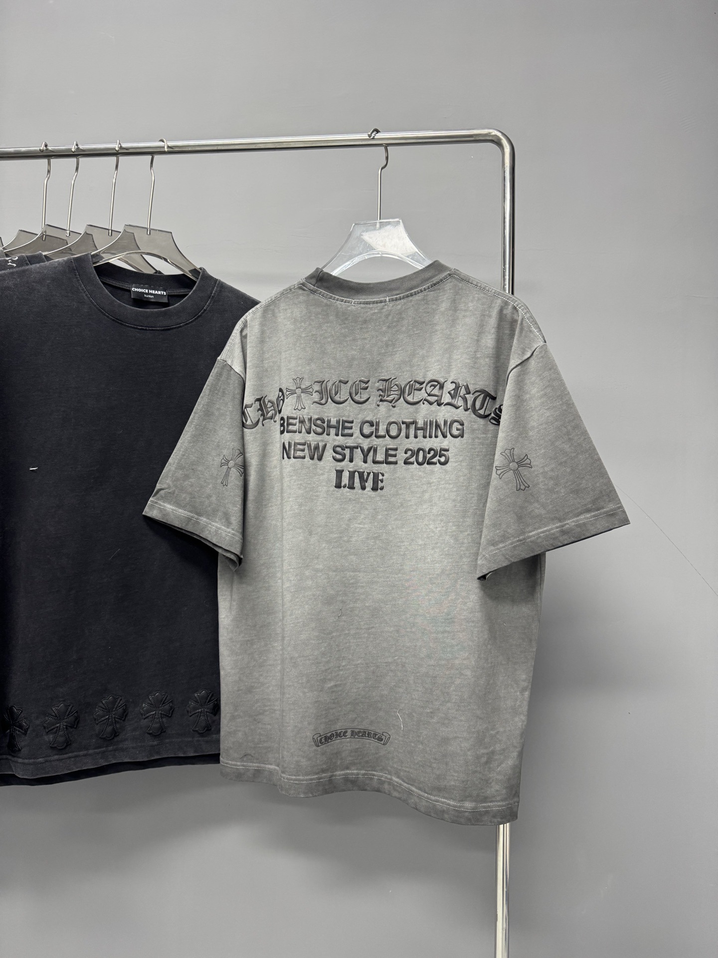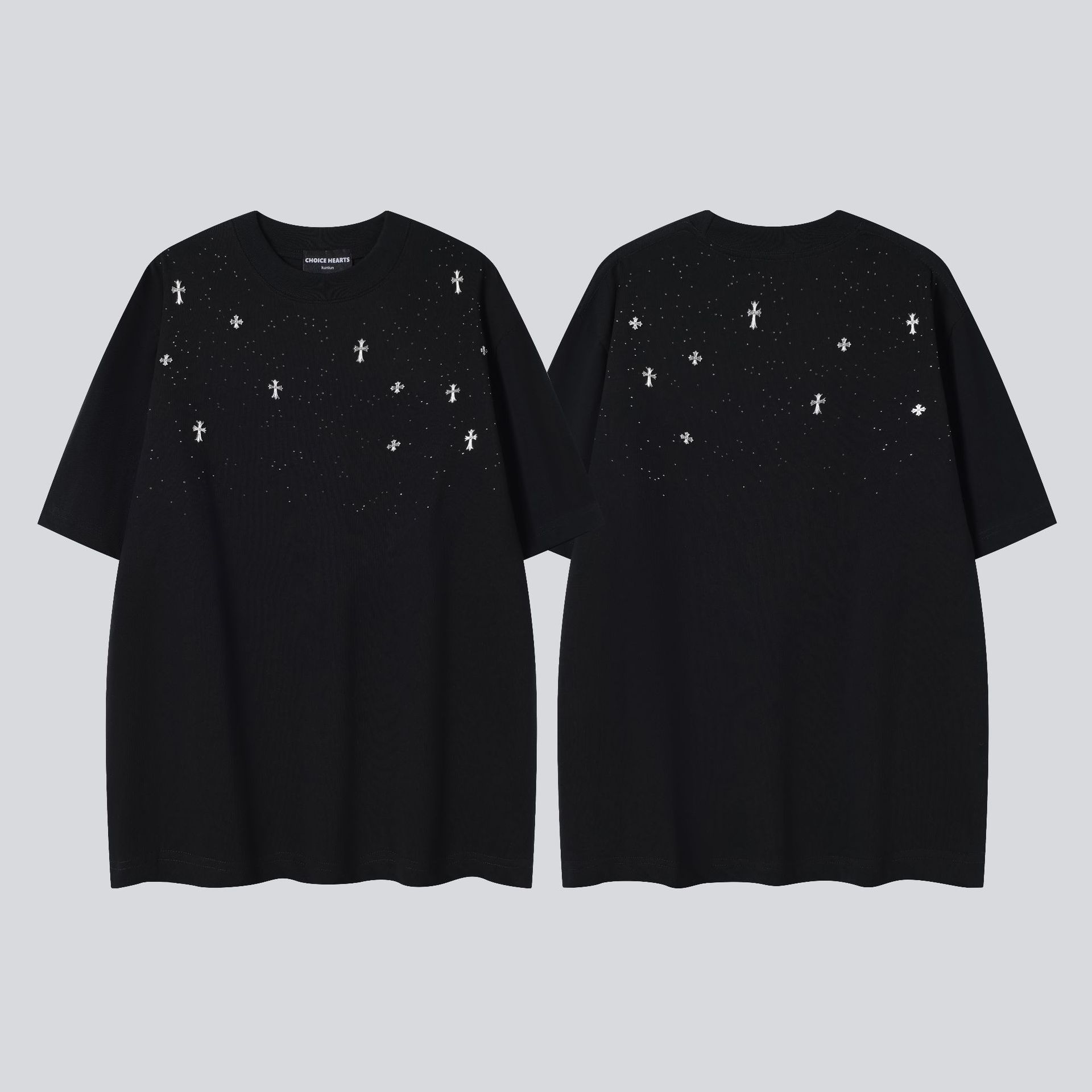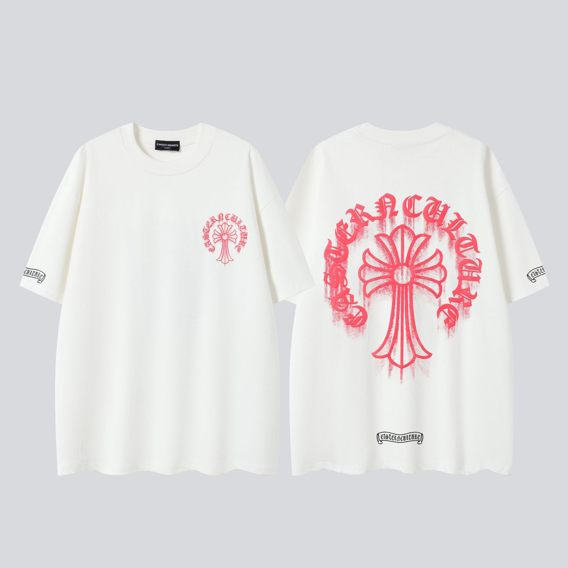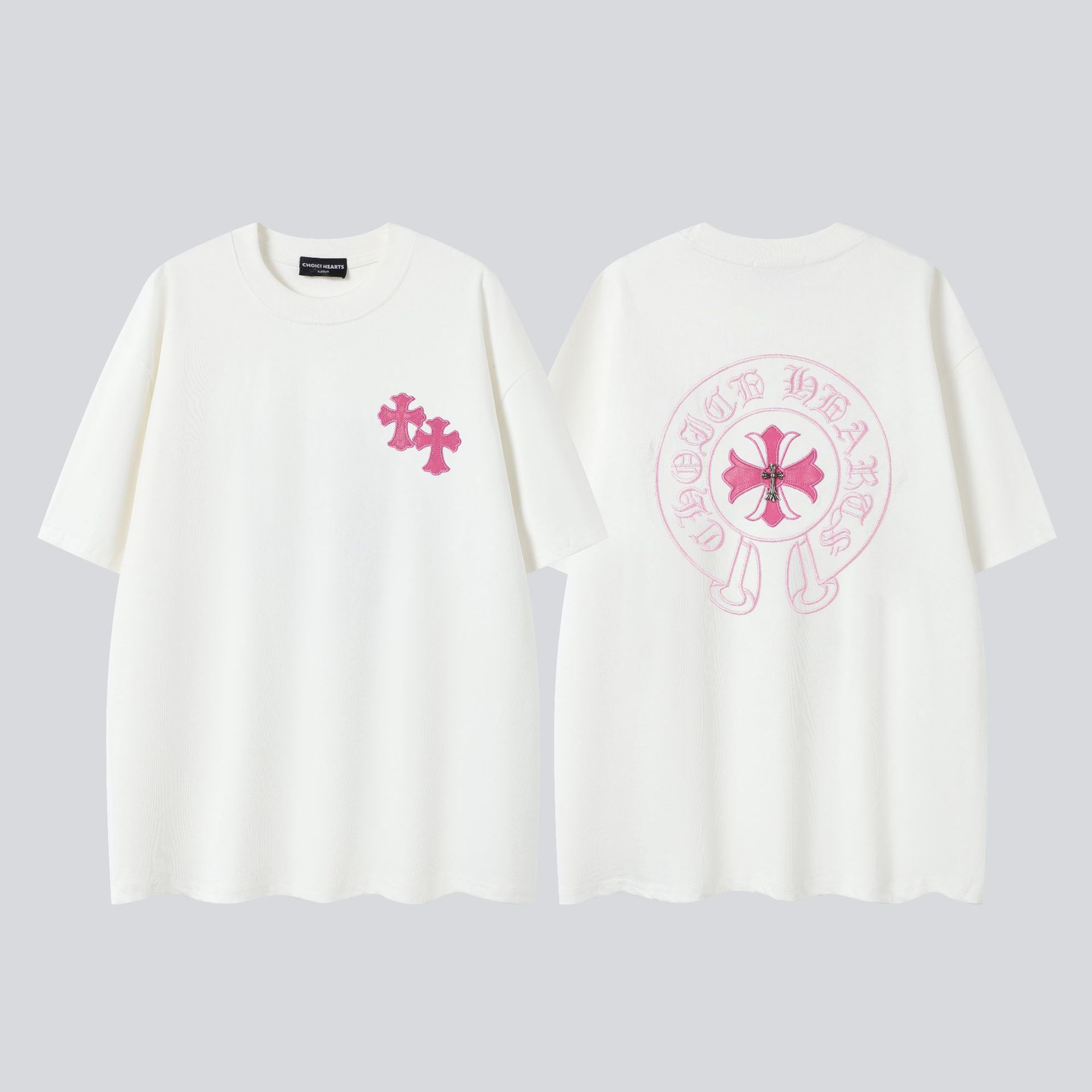 크롬 하트 25s 여름 신작 크롬 하비 워싱 및 디스트레스드 캐주얼 남성용 및 여성용 반팔 티셔츠